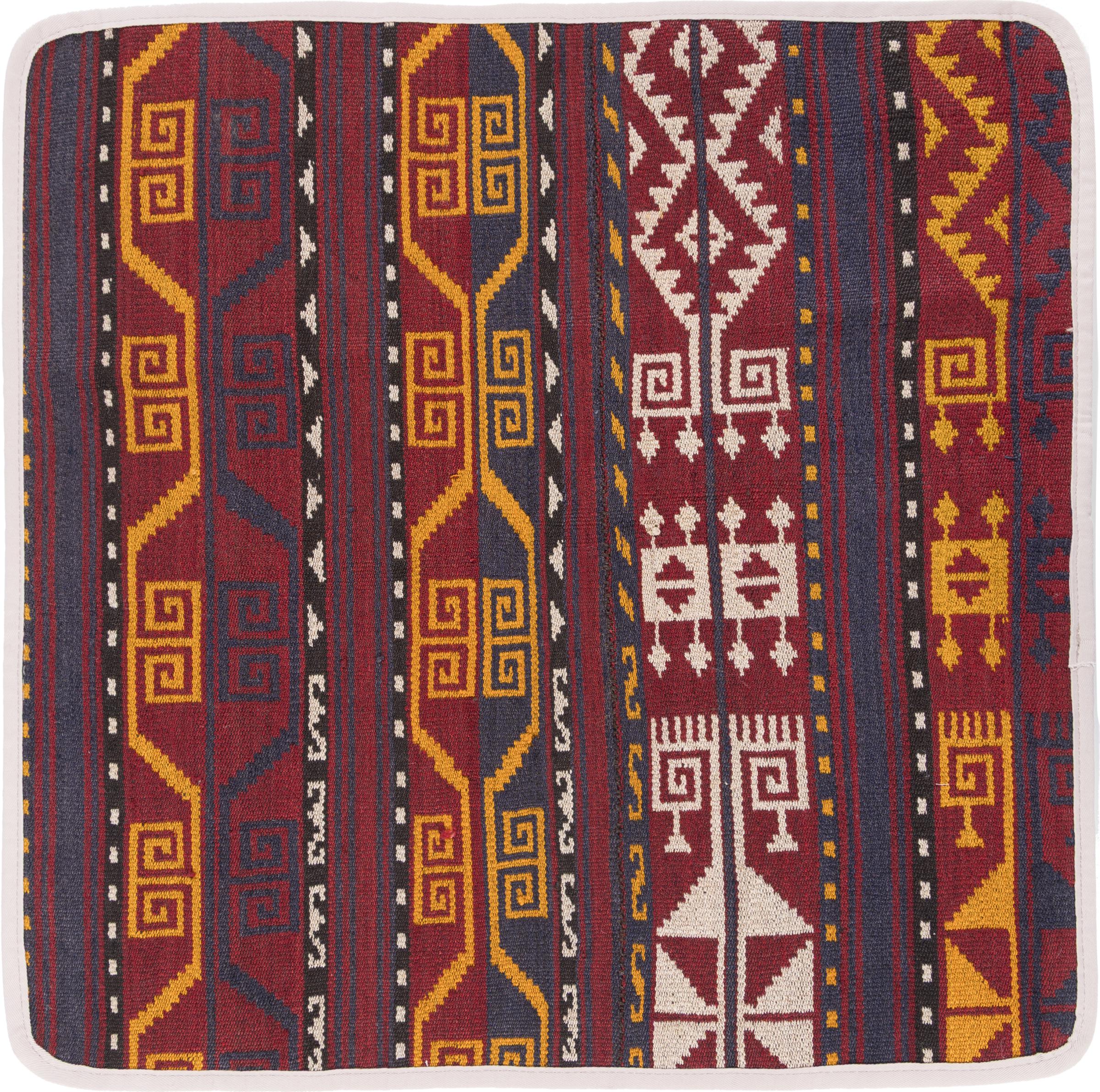 Denna handvävda kelim afghan är vacker tack vare de mångfacetterade färgerna och det typiska mönstret. Den var handvävd i Afghanistan av 100 % fårull. Den är utan tvekan mer robust och hållbar än maskintillverkade mattor. Dessutom har denna kelim en alldeles egen karaktär. En unik pjäs för dig och ditt hem som du aldrig kommer att hitta igen.