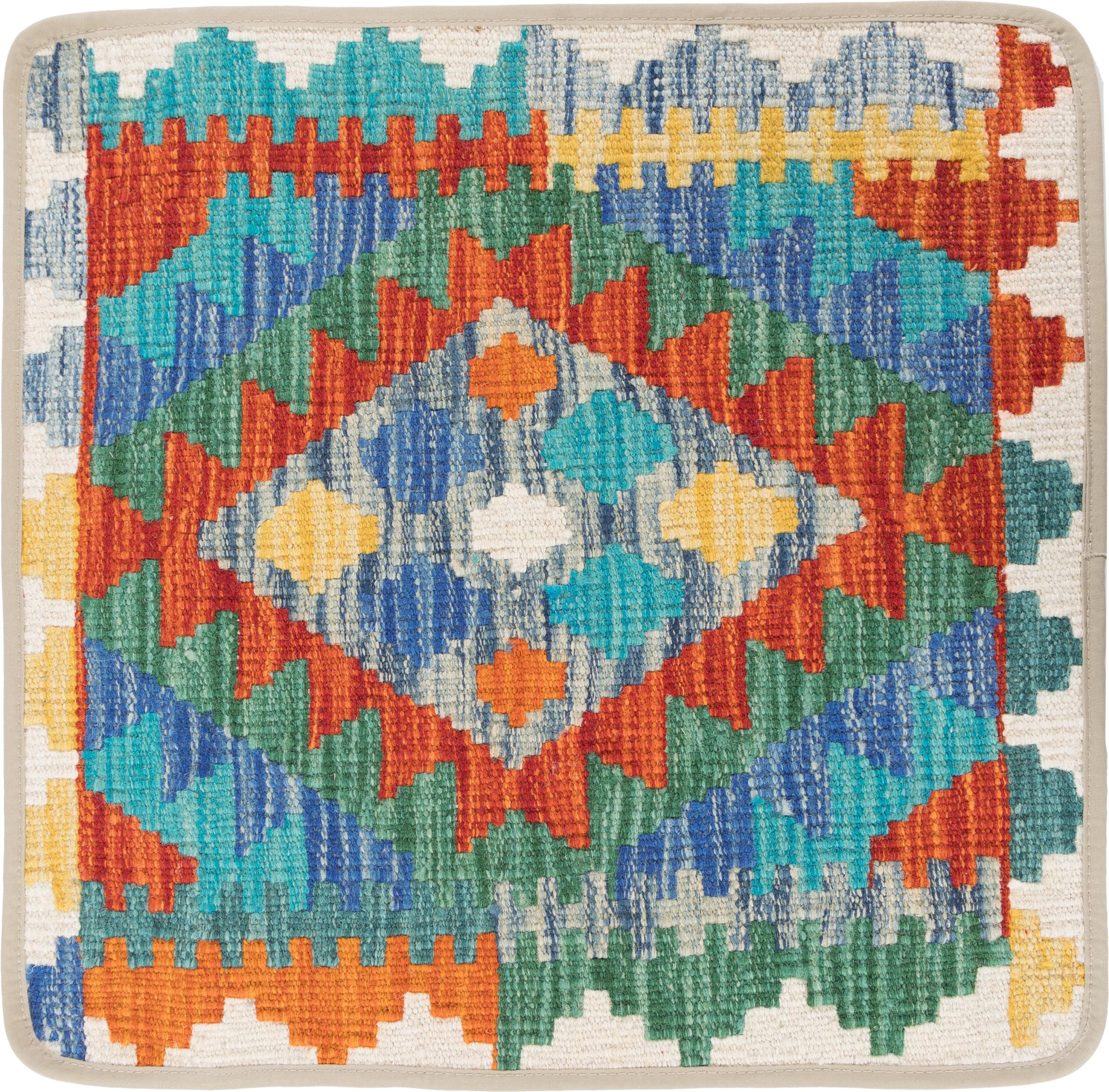 Denna handvävda kelim afghan är vacker tack vare de mångfacetterade färgerna och det typiska mönstret. Den var handvävd i Afghanistan av 100 % fårull. Den är utan tvekan mer robust och hållbar än maskintillverkade mattor. Dessutom har denna kelim en alldeles egen karaktär. En unik pjäs för dig och ditt hem som du aldrig kommer att hitta igen.