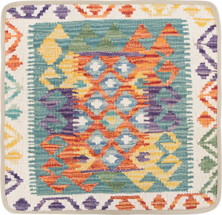 Mattans ID: 28887600371 Storlek: 50x50 cm Tjocklek: ap. 3 mm Tillverkning: Knuten för hand Lugg: Handspunnen ull Varp: Ull Ursprung: Afghanistan Ålder: Ny Vikt: ap. 0 kg I lager: Unik - Endast 1 i lager