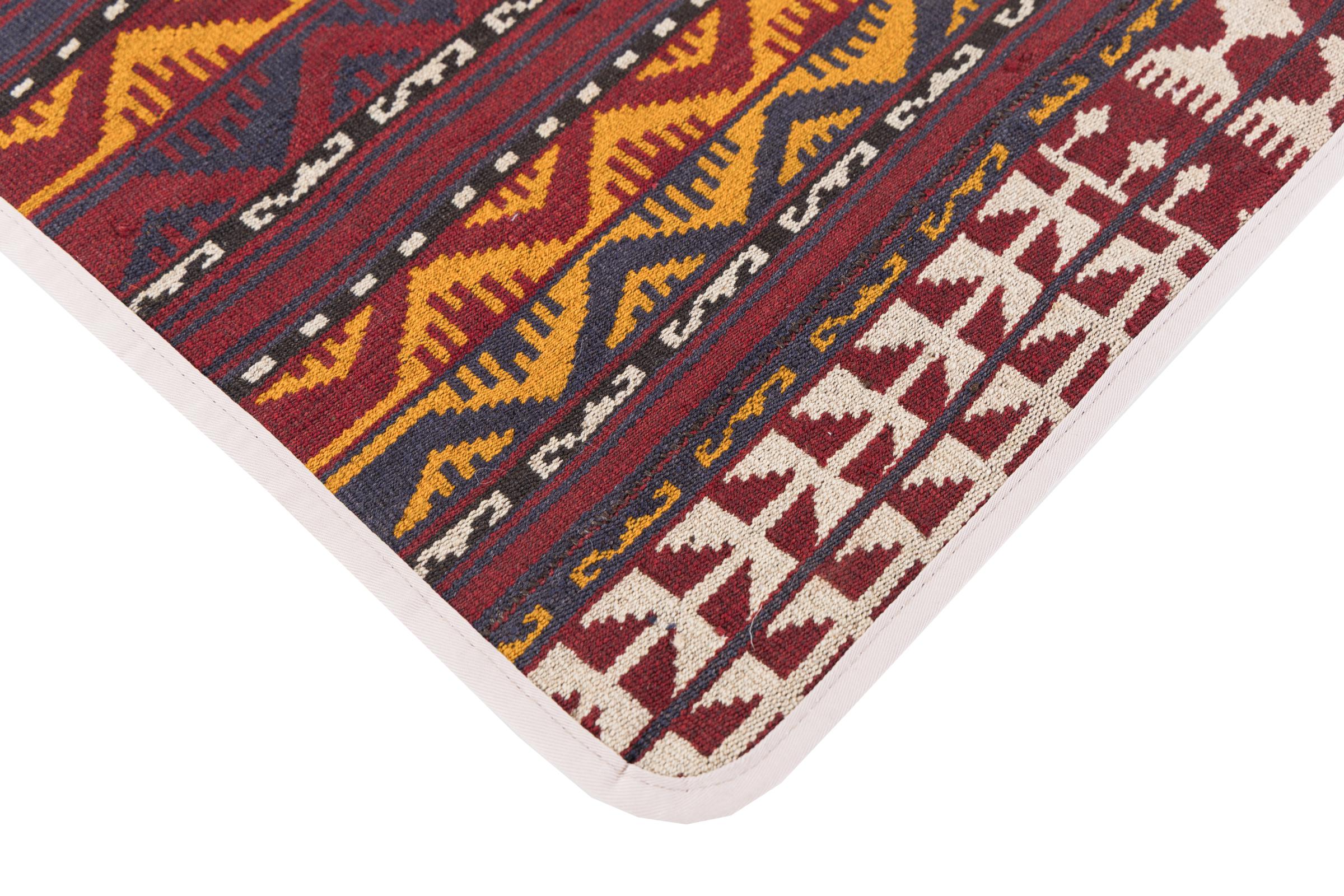 Denna handvävda kelim afghan är vacker tack vare de mångfacetterade färgerna och det typiska mönstret. Den var handvävd i Afghanistan av 100 % fårull. Den är utan tvekan mer robust och hållbar än maskintillverkade mattor. Dessutom har denna kelim en alldeles egen karaktär. En unik pjäs för dig och ditt hem som du aldrig kommer att hitta igen.