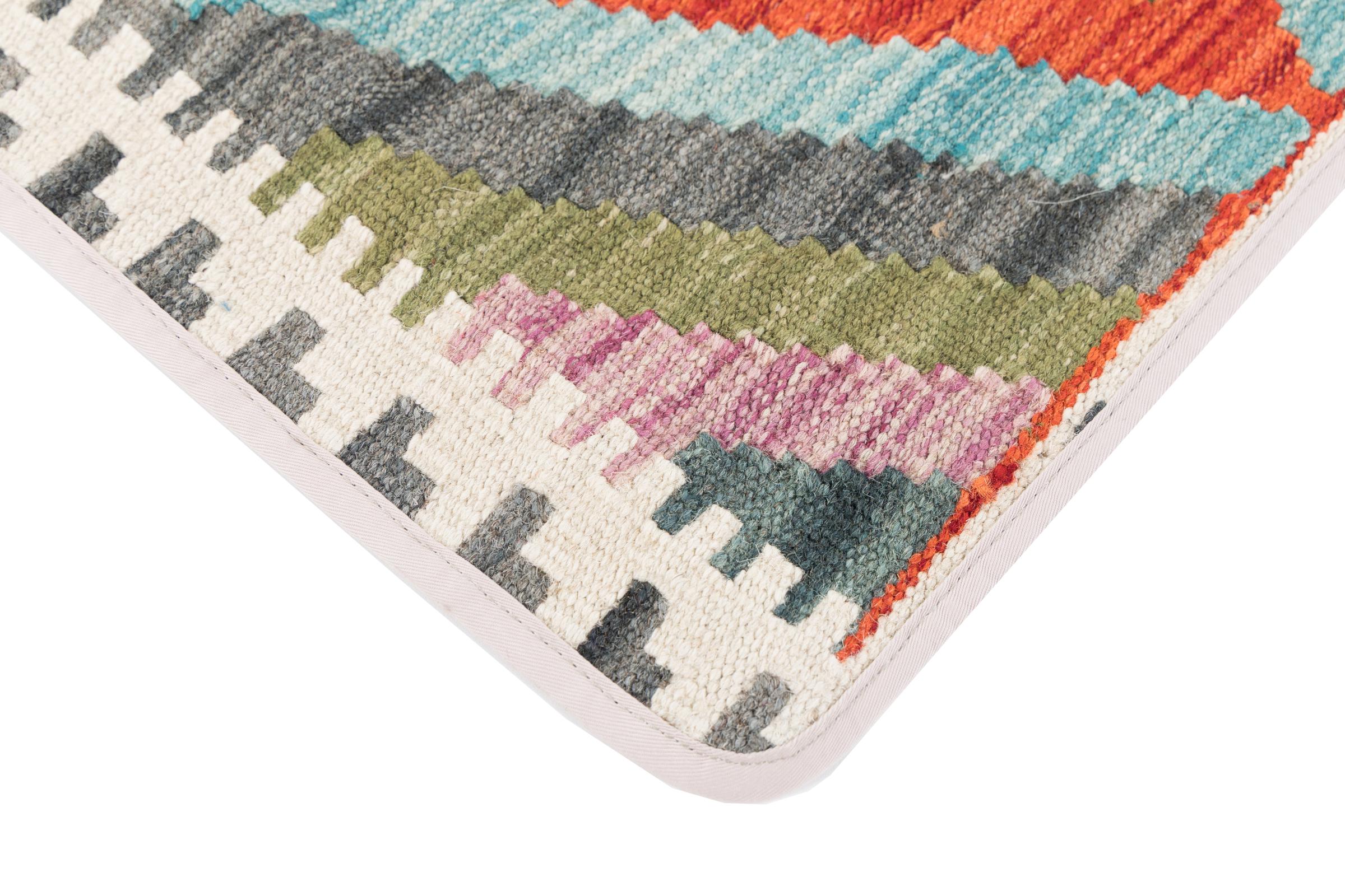 Denna handvävda kelim afghan är vacker tack vare de mångfacetterade färgerna och det typiska mönstret. Den var handvävd i Afghanistan av 100 % fårull. Den är utan tvekan mer robust och hållbar än maskintillverkade mattor. Dessutom har denna kelim en alldeles egen karaktär. En unik pjäs för dig och ditt hem som du aldrig kommer att hitta igen.