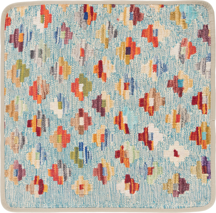 Mattans ID: 28904800543 Storlek: 50x50 cm Tjocklek: ap. 3 mm Tillverkning: Knuten för hand Lugg: Handspunnen ull Varp: Ull Ursprung: Afghanistan Ålder: Ny Vikt: ap. 0 kg I lager: Unik - Endast 1 i lager