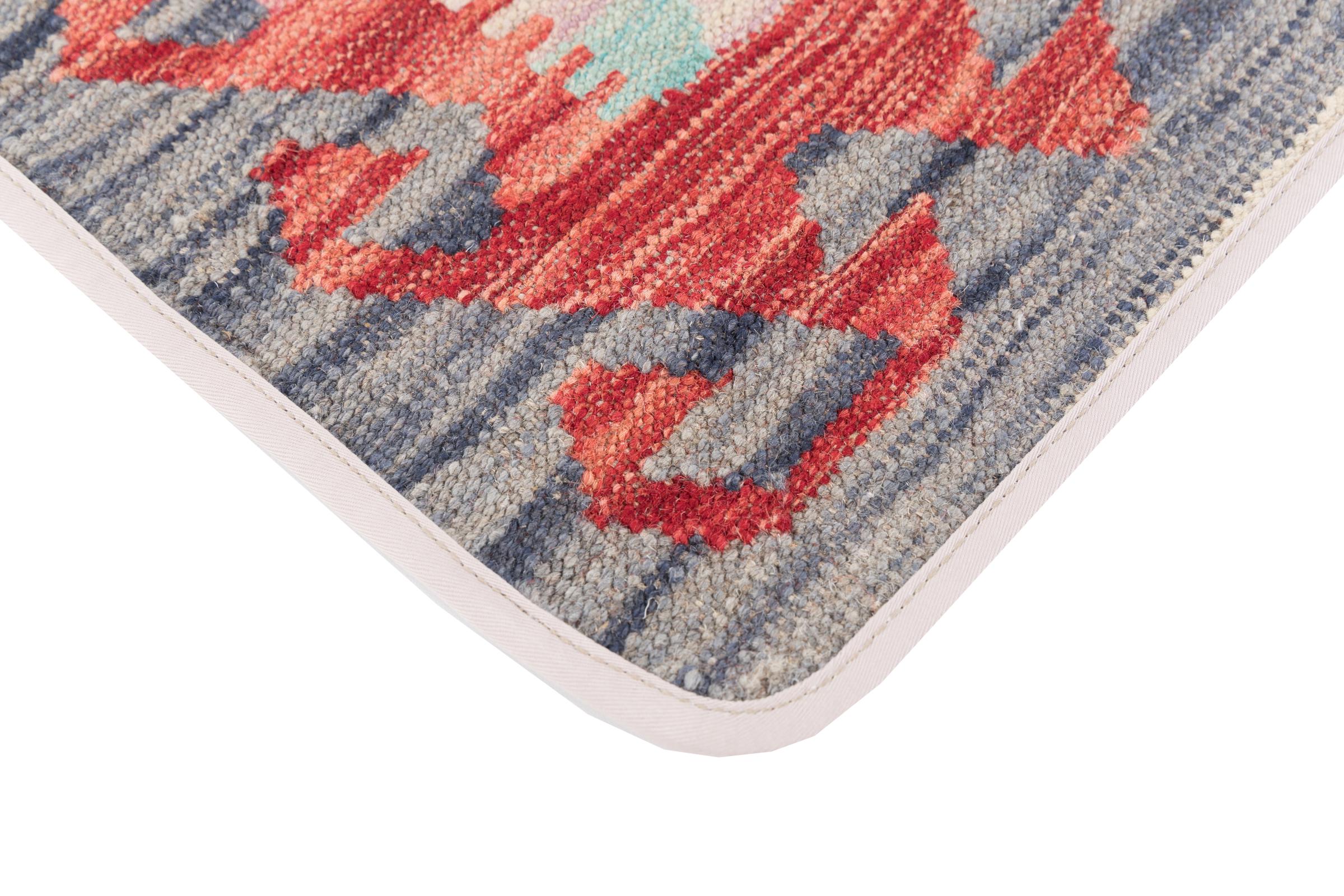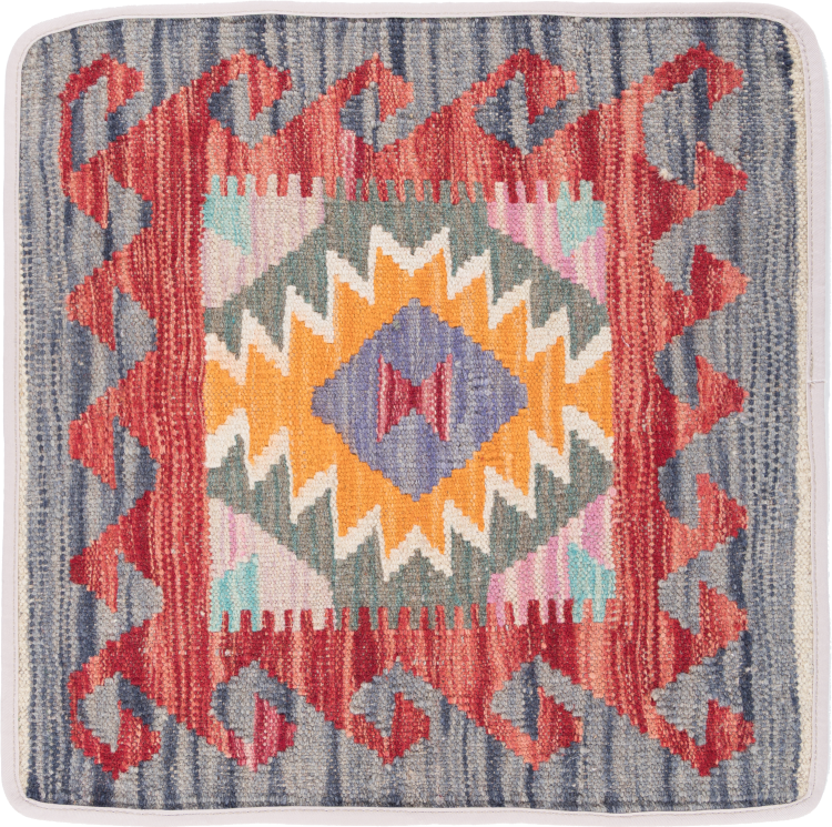 Denna handvävda kelim afghan är vacker tack vare de mångfacetterade färgerna och det typiska mönstret. Den var handvävd i Afghanistan av 100 % fårull. Den är utan tvekan mer robust och hållbar än maskintillverkade mattor. Dessutom har denna kelim en alldeles egen karaktär. En unik pjäs för dig och ditt hem som du aldrig kommer att hitta igen.
