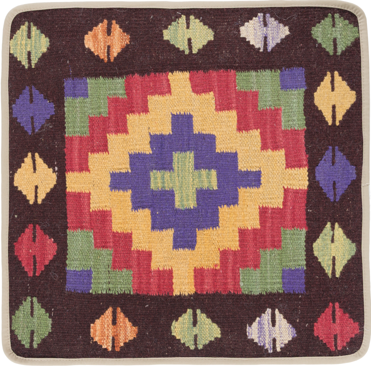 Mattans ID: 28921200707 Storlek: 50x50 cm Tjocklek: ap. 3 mm Tillverkning: Knuten för hand Lugg: Handspunnen ull Varp: Ull Ursprung: Afghanistan Ålder: Ny Vikt: ap. 0 kg I lager: Unik - Endast 1 i lager