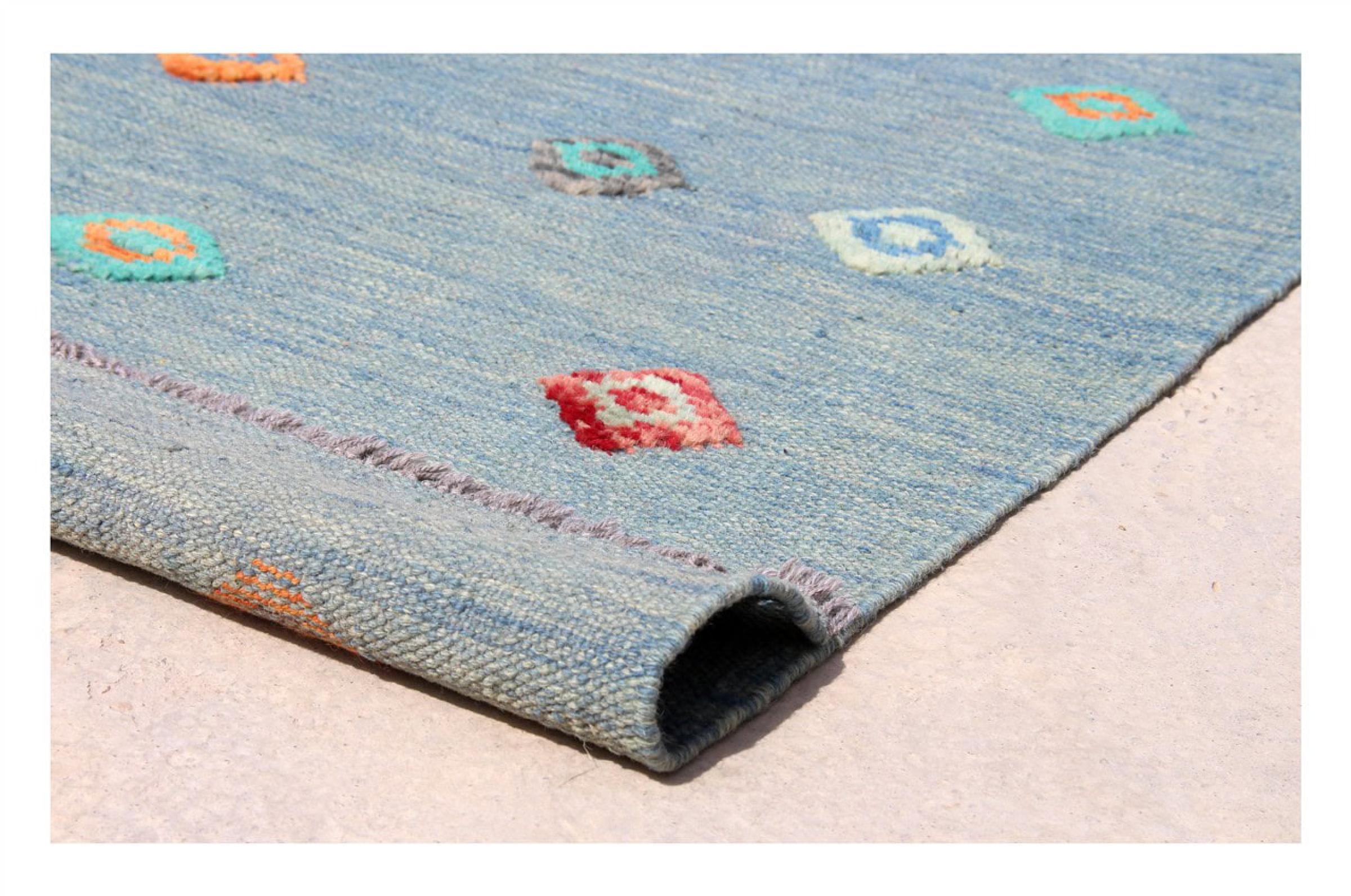 Denna matta tillverkas för hand på vävstolen som en platt väv. Flatweaves är mattor som inte har någon hög. Som namnet antyder är dessa mattor vävda och inte knutna. Detta resulterar i en platt matta med en strukturerad yta. Platta väver är inte så mjuka och mest tunnare än knutna mattor. Samtidigt är de betydligt mindre komplexa att tillverka och kan vanligtvis utformas från båda sidor (fram och bak). Deras mönster är vanligtvis geometriska, vilket beror på tyget.