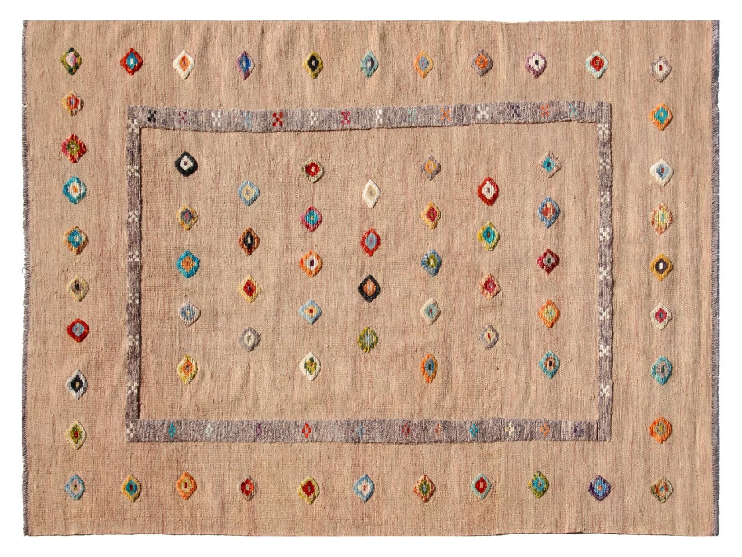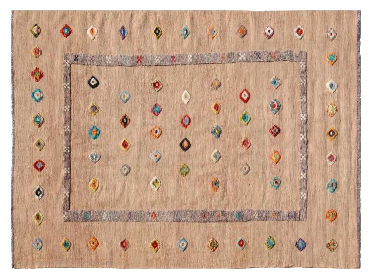 Mattans ID: 315507003862360 Storlek: 228x168 cm Tjocklek: ap. 5 mm Tillverkning: handvävd Lugg: Handspunnen ull Varp: Ull Ursprung: Afghanistan Ålder: Ny Vikt: ap. 8 kg Också känd som Kilim, Qilim, Chilim, Afgan, Afghán I lager: Unik - Endast 1 i lager