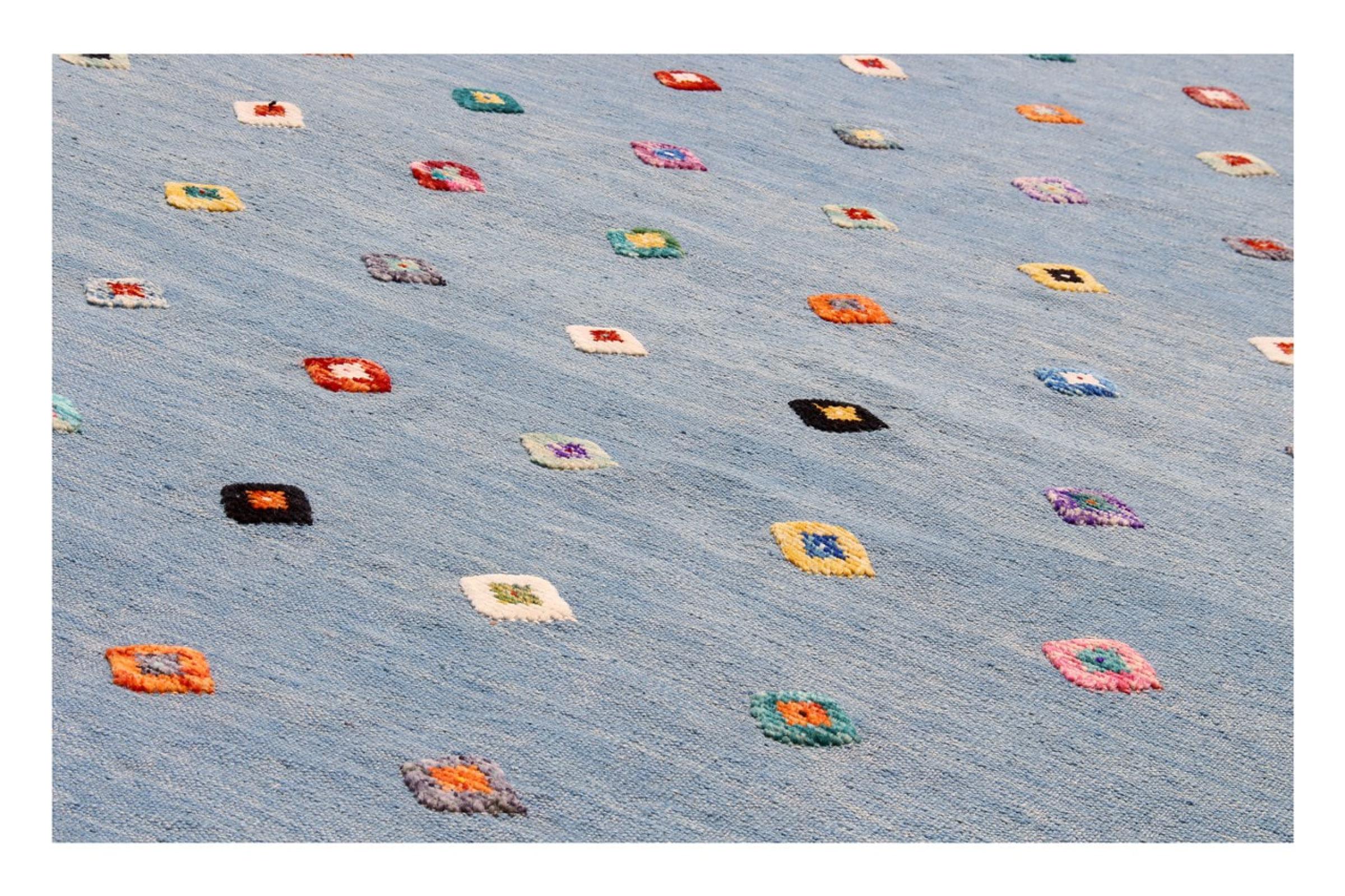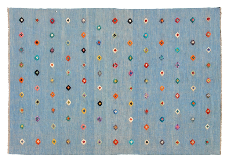 Denna matta tillverkas för hand på vävstolen som en platt väv. Flatweaves är mattor som inte har någon hög. Som namnet antyder är dessa mattor vävda och inte knutna. Detta resulterar i en platt matta med en strukturerad yta. Platta väver är inte så mjuka och mest tunnare än knutna mattor. Samtidigt är de betydligt mindre komplexa att tillverka och kan vanligtvis utformas från båda sidor (fram och bak). Deras mönster är vanligtvis geometriska, vilket beror på tyget.