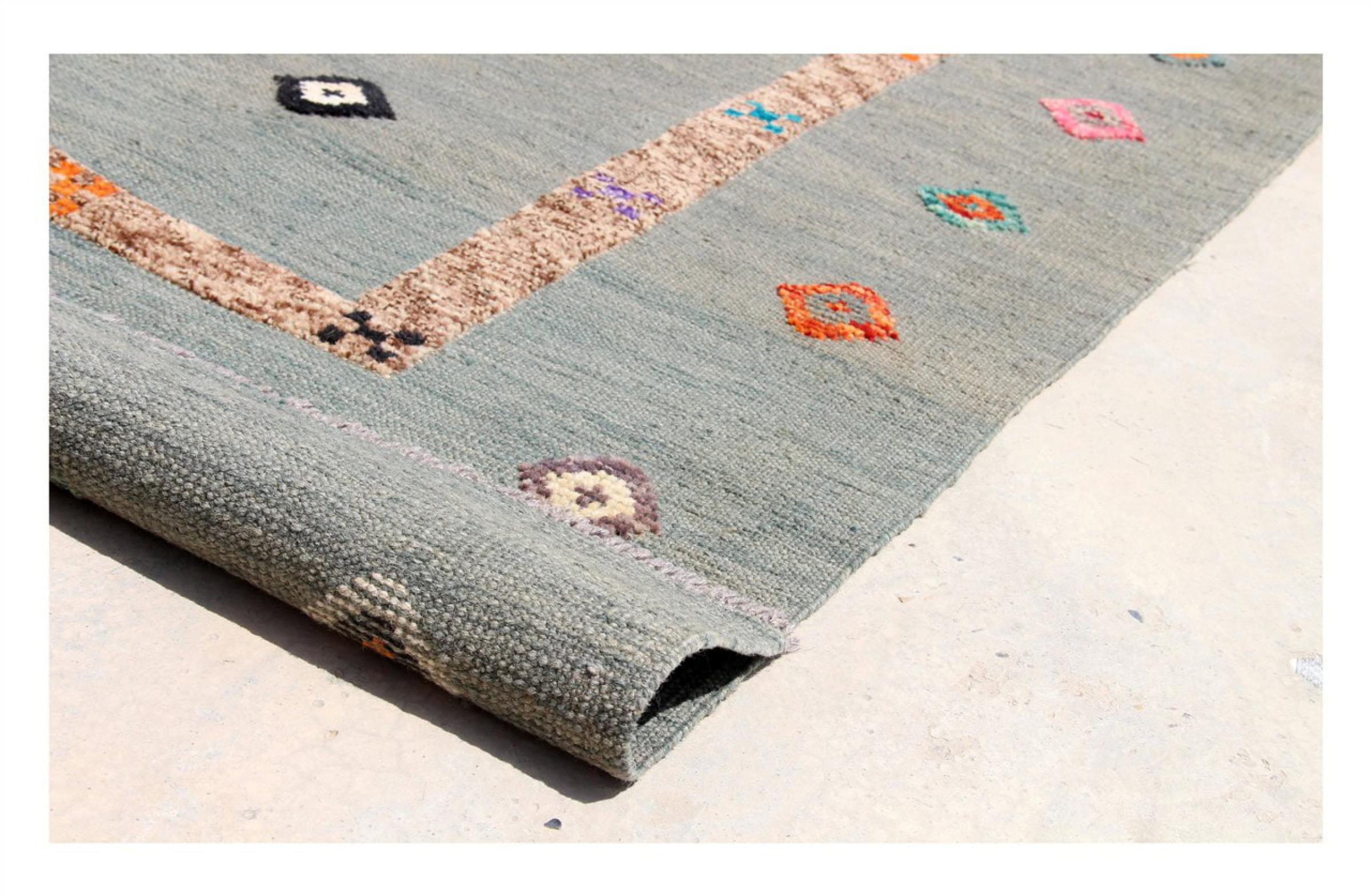 Samtidigt omfattar Kelim Afghan Edition också modernt tolkade färgvarianter. Dessa inkluderar harmoniska naturtoner som beige, grå eller oliv samt livliga accenter i turkos, grön, rosa eller flerfärgade kompositioner. Denna mångfald gör afghanska kelimer särskilt mångsidiga: De kan användas både som en traditionell blickfångare och som ett stilfullt designelement i moderna bostadsconceptrar.