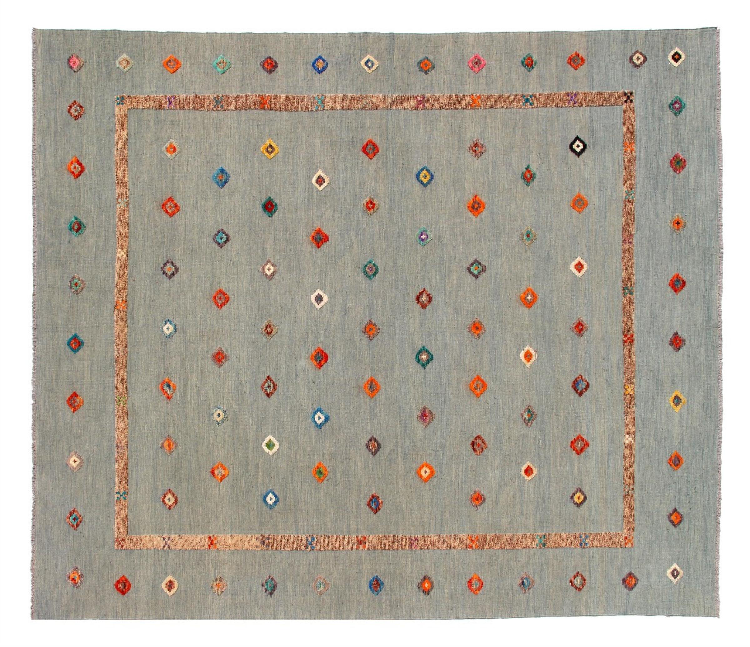 Mattans ID: 315602001061273 Storlek: 296x252 cm Tjocklek: ap. 5 mm Tillverkning: handvävd Lugg: Handspunnen ull Varp: Ull Ursprung: Afghanistan Ålder: Ny Vikt: ap. 15 kg Också känd som Kilim, Qilim, Chilim, Afgan, Afghán I lager: Unik - Endast 1 i lager
