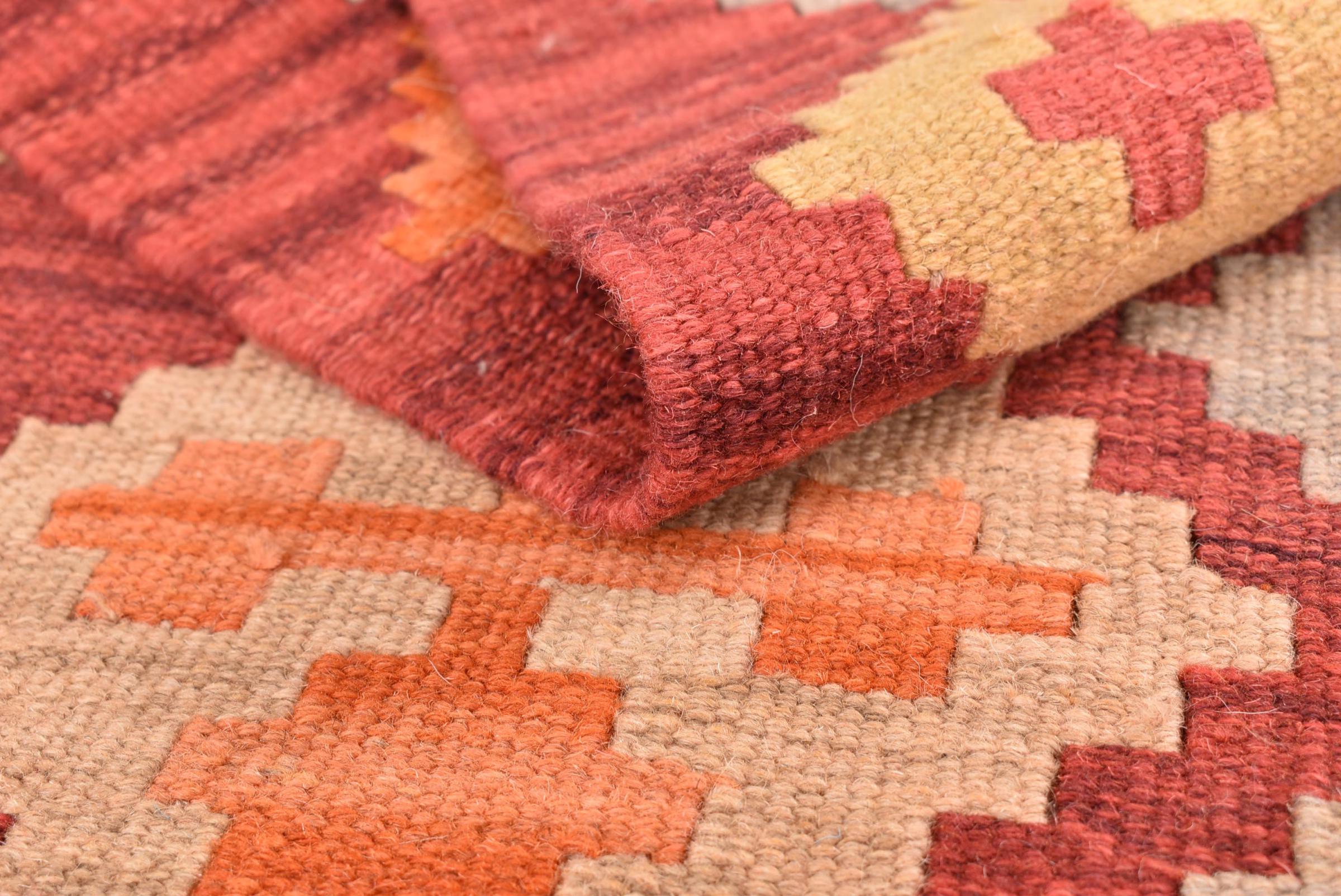 Dessa kilim Mattor har en avgörande skillnad till handknutna mattor - de är vävda för hand. De har inte en högkvalitativ hög med ull och är ofta plattare och grovare än knutade ullsmattor. Deras design är mindre komplex och därför är de vanligtvis mycket billigare. En annan fördel är att kilim mattor är mycket lättare och kan läggas ut framifrån och bakifrån. Handvävda kilims kommer ursprungligen från det tidigare Persien och tillverkas nu också mycket i Afghanistan. De har ganska enkla, okomplicerade mönster som beror på deras vävningsteknik.