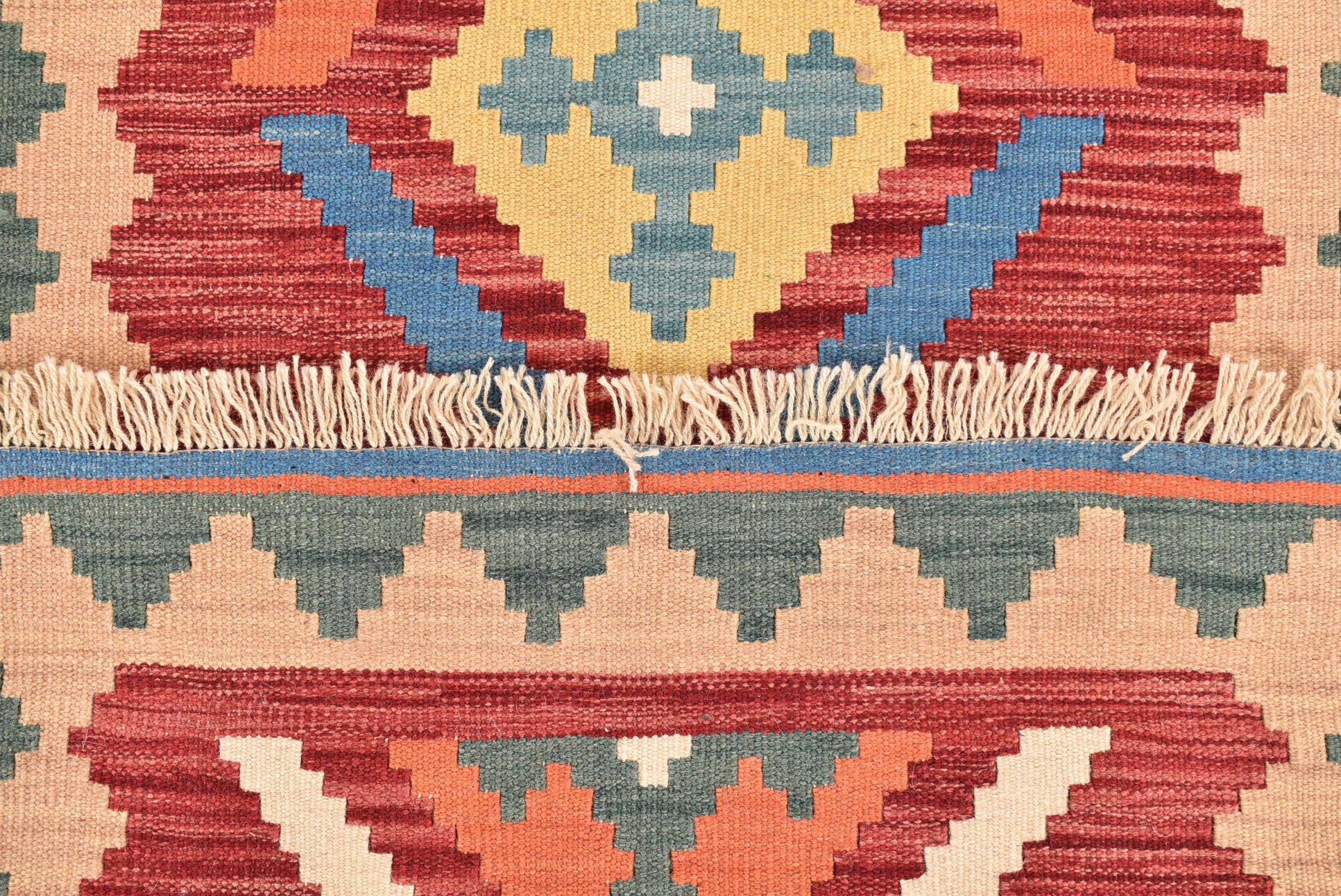 Denna handvävda kelim fars kombinerar persiska mönster och ornament med traditionen av platta vävar. En fantastisk och modern kombination av de mest populära koncepten från Orienten. Detta skapar en matta med ett brett användningsområde. Oavsett om det är som överkast eller som matta framför soffan – en Fars kelim gör det möjligt och finns nu i de mest kända inredningstidningarna. Kilim Fars mattor vävs för hand i Iran och är därför bland de högsta kvalitéts kelimerna.