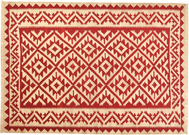 Denna matta tillverkas för hand på vävstolen som en platt väv. Flatweaves är mattor som inte har någon hög. Som namnet antyder är dessa mattor vävda och inte knutna. Detta resulterar i en platt matta med en strukturerad yta. Platta väver är inte så mjuka och mest tunnare än knutna mattor. Samtidigt är de betydligt mindre komplexa att tillverka och kan vanligtvis utformas från båda sidor (fram och bak). Deras mönster är vanligtvis geometriska, vilket beror på tyget.