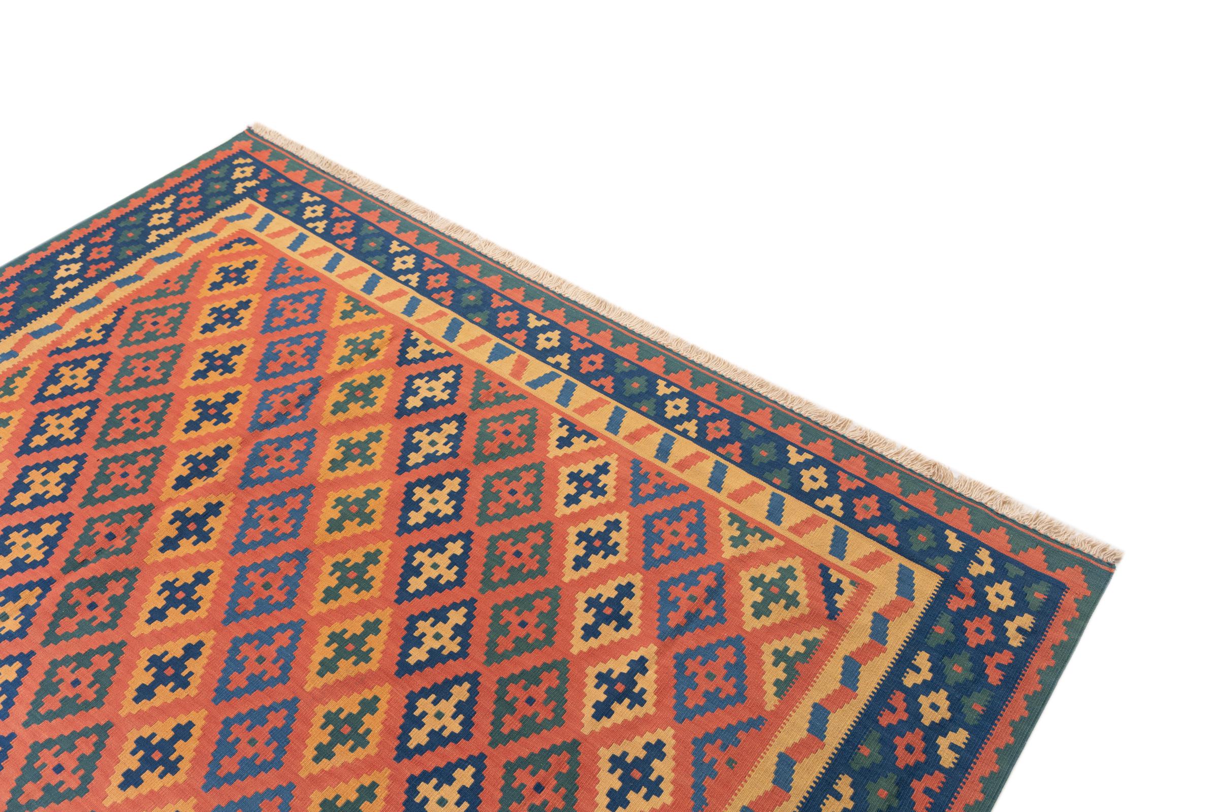 Denna handvävda kelim fars kombinerar persiska mönster och ornament med traditionen av platta vävar. En fantastisk och modern kombination av de mest populära koncepten från Orienten. Detta skapar en matta med ett brett användningsområde. Oavsett om det är som överkast eller som matta framför soffan – en Fars kelim gör det möjligt och finns nu i de mest kända inredningstidningarna. Kilim Fars mattor vävs för hand i Iran och är därför bland de högsta kvalitéts kelimerna.