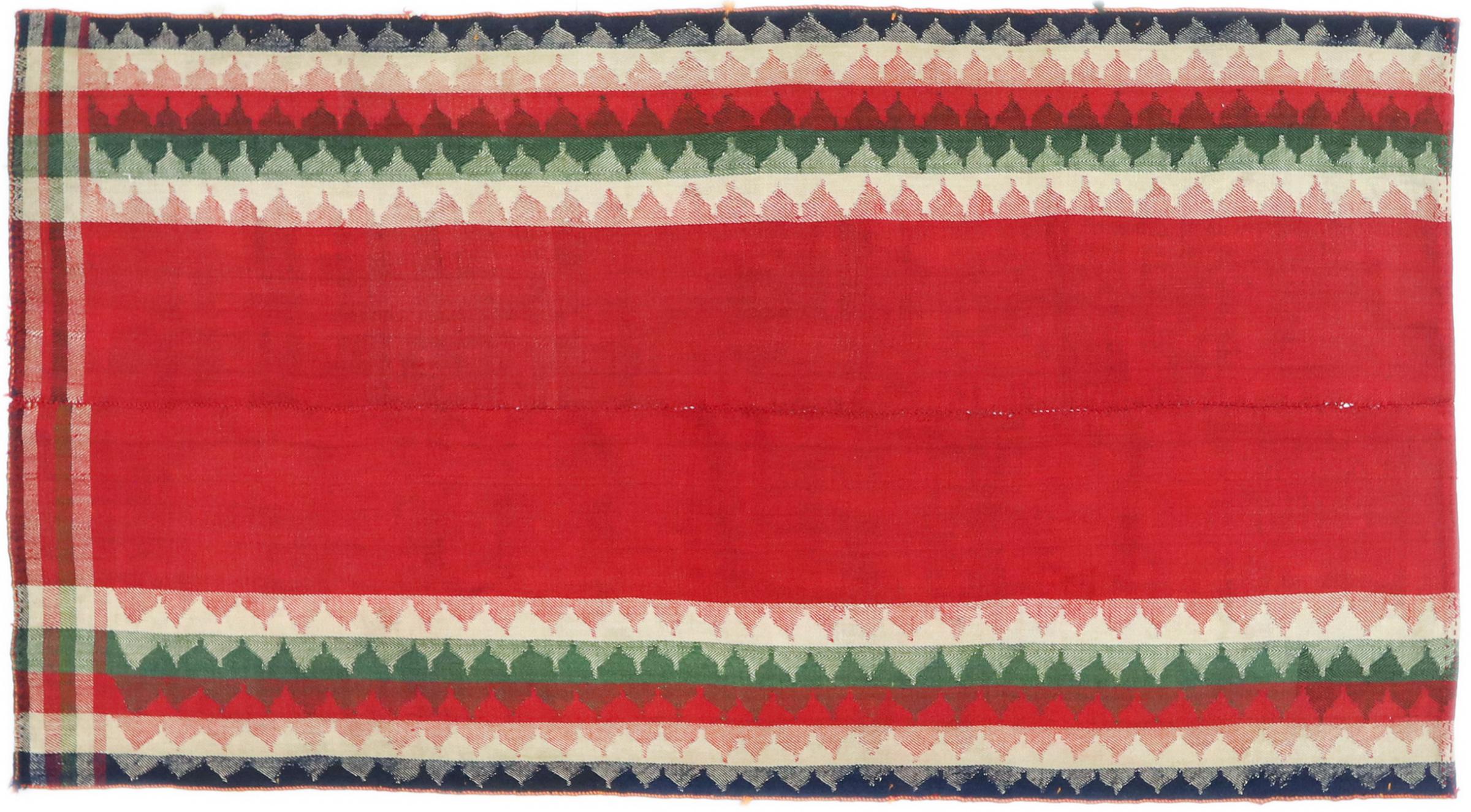 Denna matta tillverkas för hand på vävstolen som en platt väv. Flatweaves är mattor som inte har någon hög. Som namnet antyder är dessa mattor vävda och inte knutna. Detta resulterar i en platt matta med en strukturerad yta. Platta väver är inte så mjuka och mest tunnare än knutna mattor. Samtidigt är de betydligt mindre komplexa att tillverka och kan vanligtvis utformas från båda sidor (fram och bak). Deras mönster är vanligtvis geometriska, vilket beror på tyget.