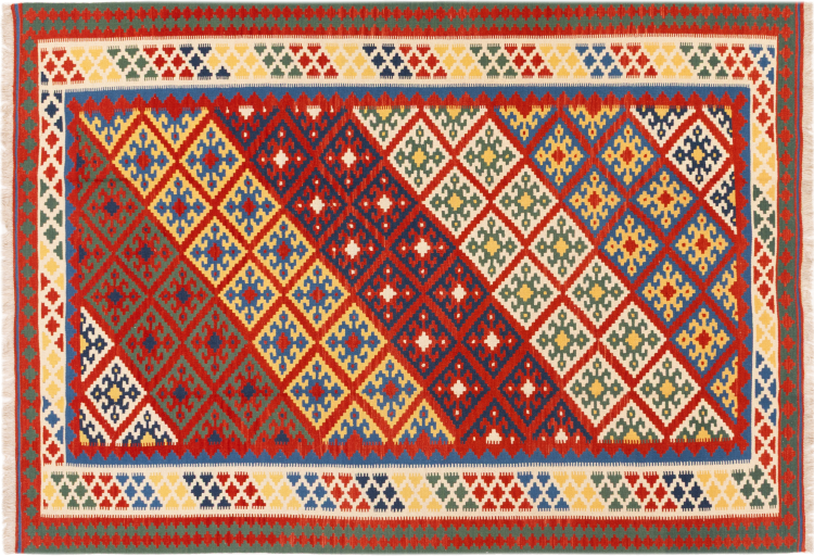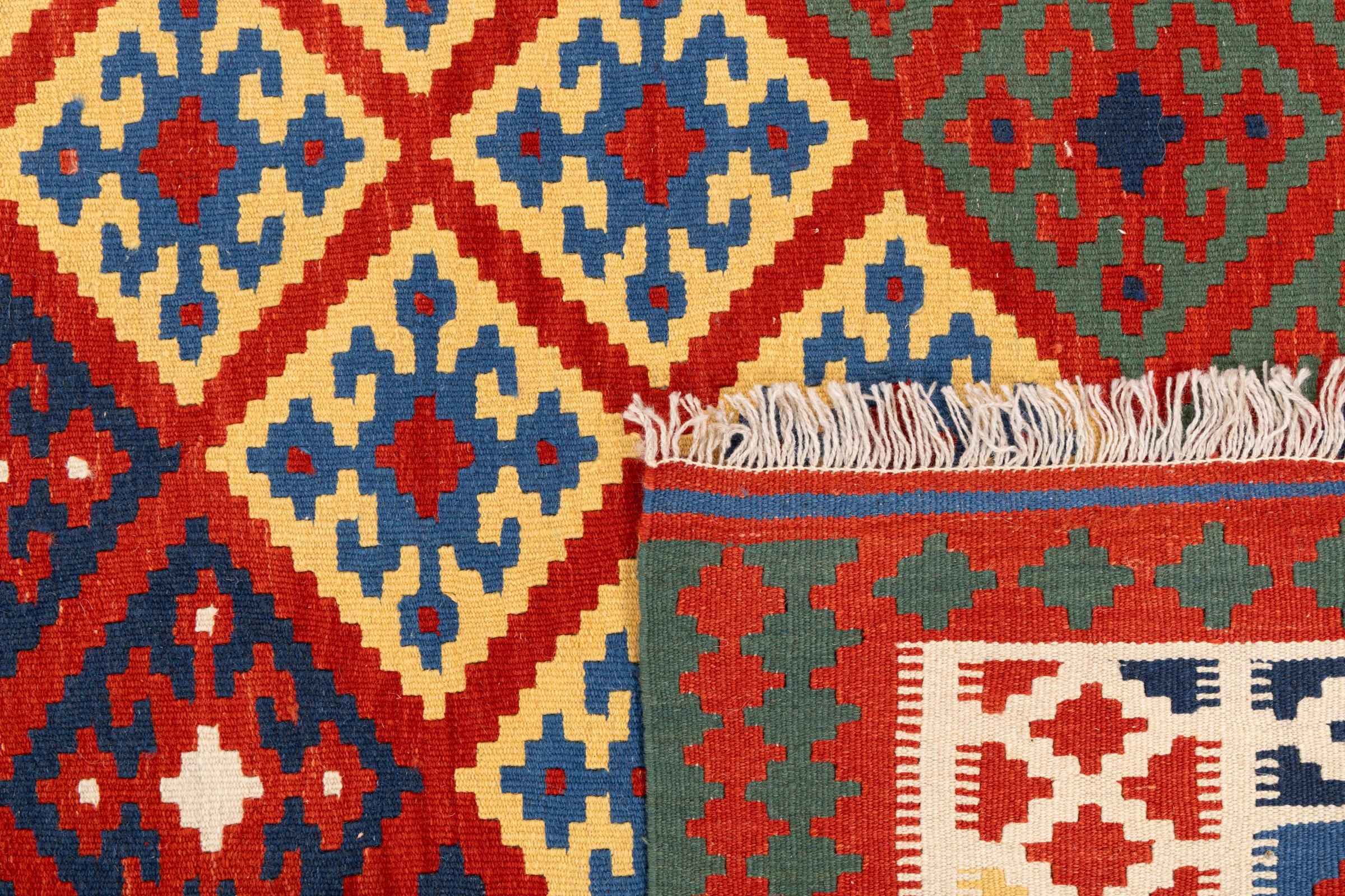 Denna matta tillverkas för hand på vävstolen som en platt väv. Flatweaves är mattor som inte har någon hög. Som namnet antyder är dessa mattor vävda och inte knutna. Detta resulterar i en platt matta med en strukturerad yta. Platta väver är inte så mjuka och mest tunnare än knutna mattor. Samtidigt är de betydligt mindre komplexa att tillverka och kan vanligtvis utformas från båda sidor (fram och bak). Deras mönster är vanligtvis geometriska, vilket beror på tyget.