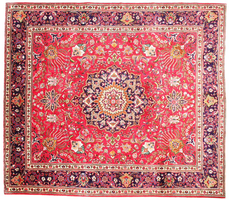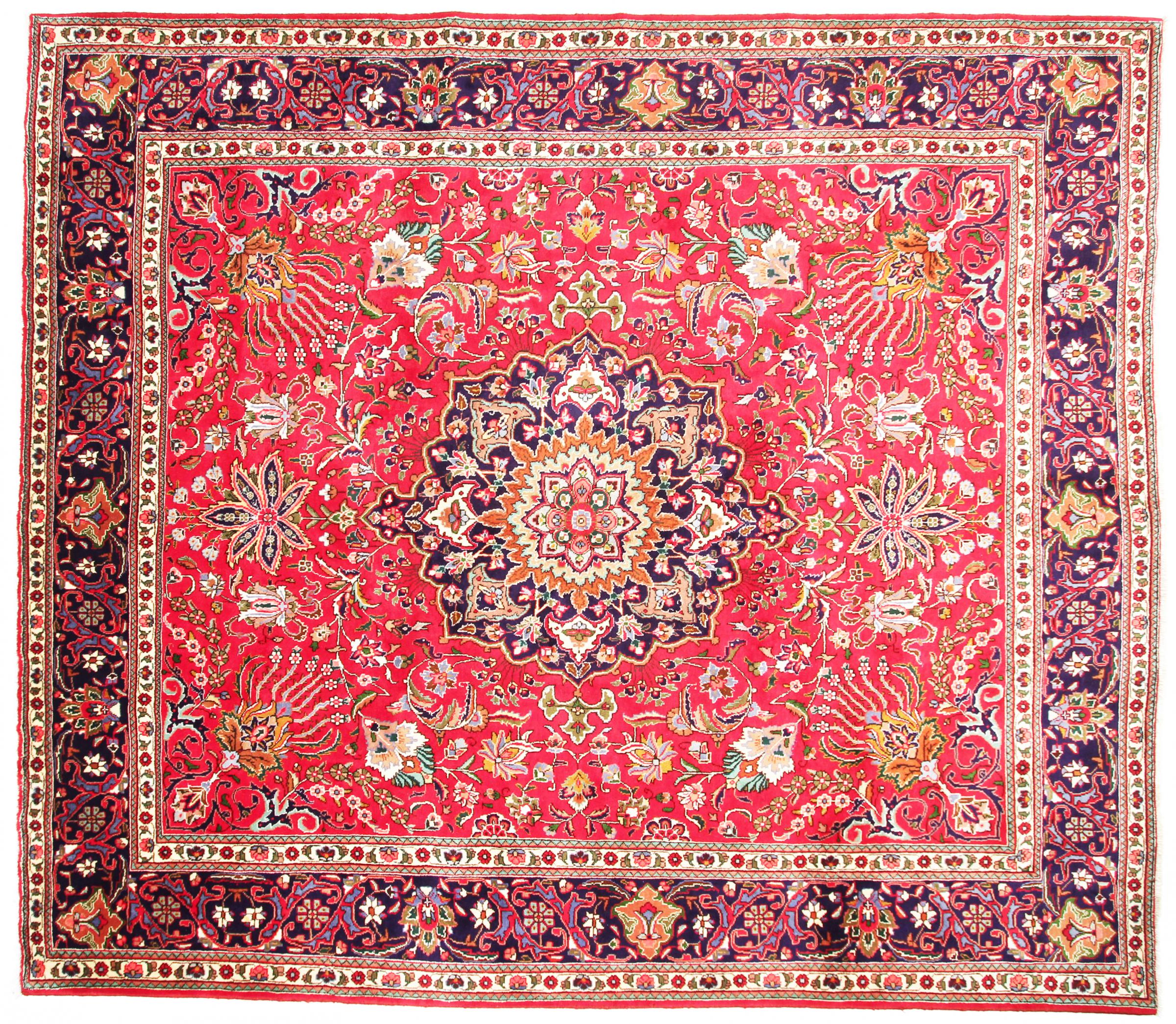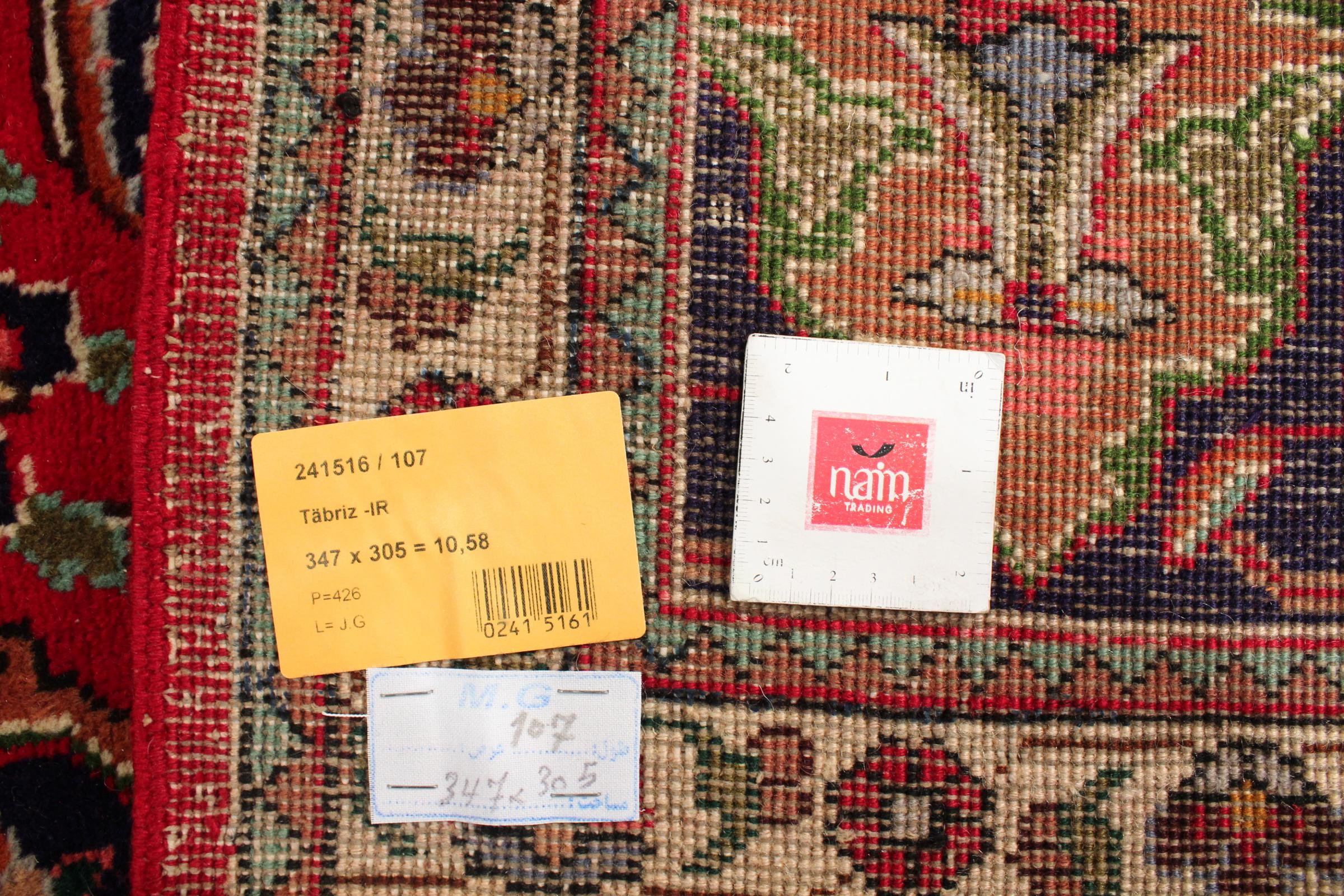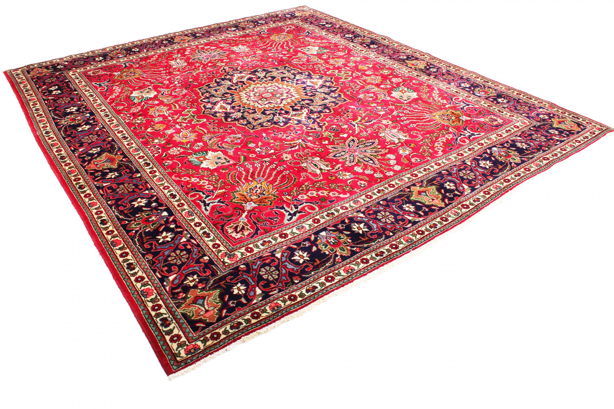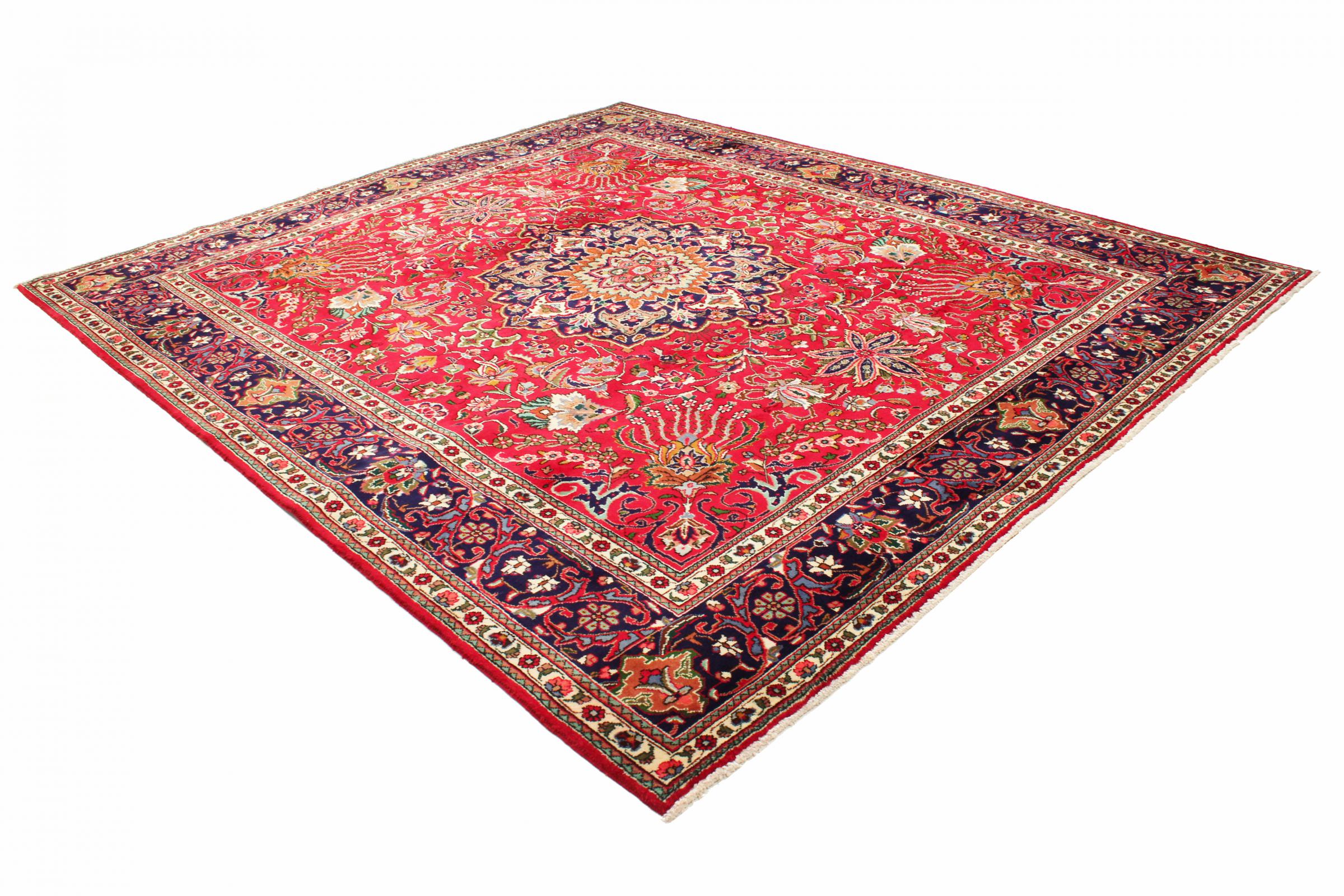 Mattans ID: 31169003929890 Storlek: 346x306 cm Tjocklek: ap. 12 mm Knuttäthet: 160 000 - 200 000 / m² Tillverkning: Knuten för hand Lugg: Handspunnen ull Varp: Bomull Ursprung: Persien / Iran Ålder: Ny Vikt: ap. 37 kg Också känd som Maschad, Meshed I lager: Unik - Endast 1 i lager