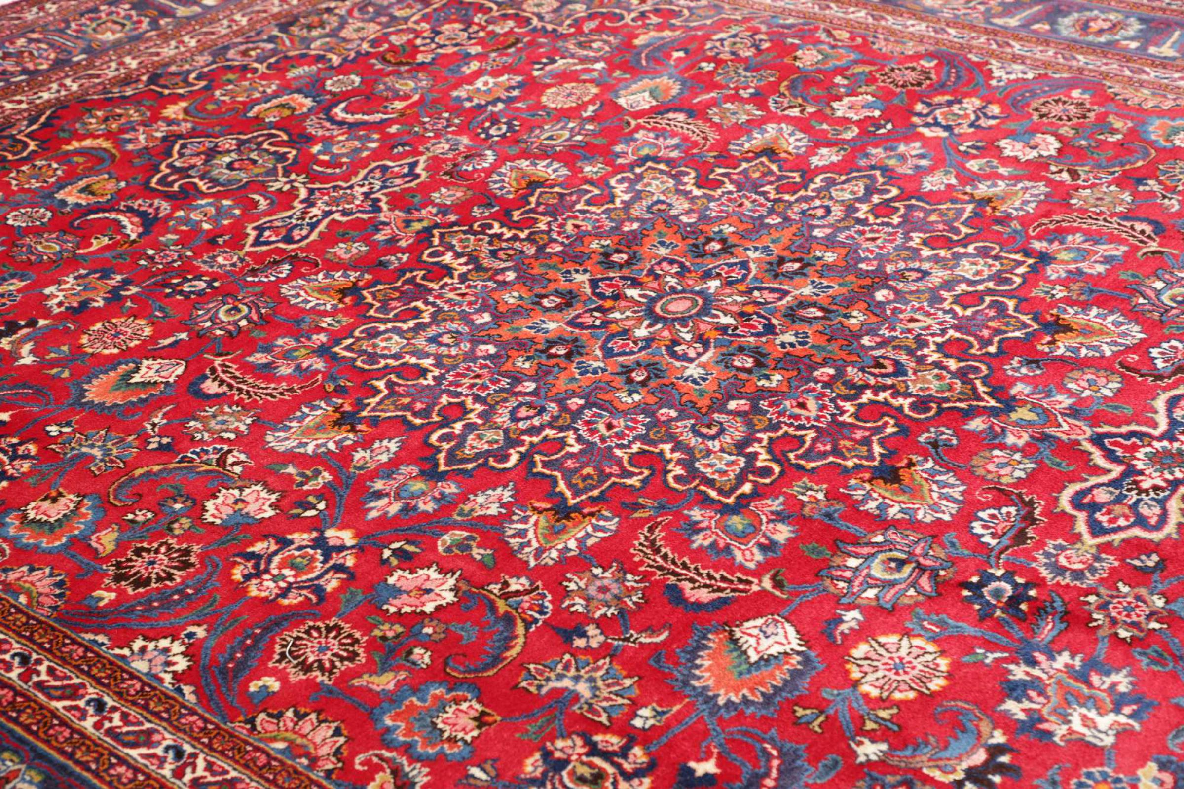 Mashhad är en stad med miljoner i östra Iran. Det är en av de heligaste städerna i islam med ett stort antal pilgrimer som besöker den åttonde imamens grav. Handknutna persiska mattor från Mashhad är vanligtvis större än genomsnittet. Som regel har de en medaljong i mitten och har mörka nyanser.