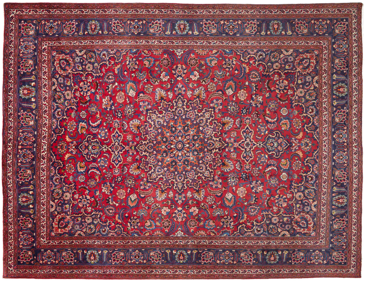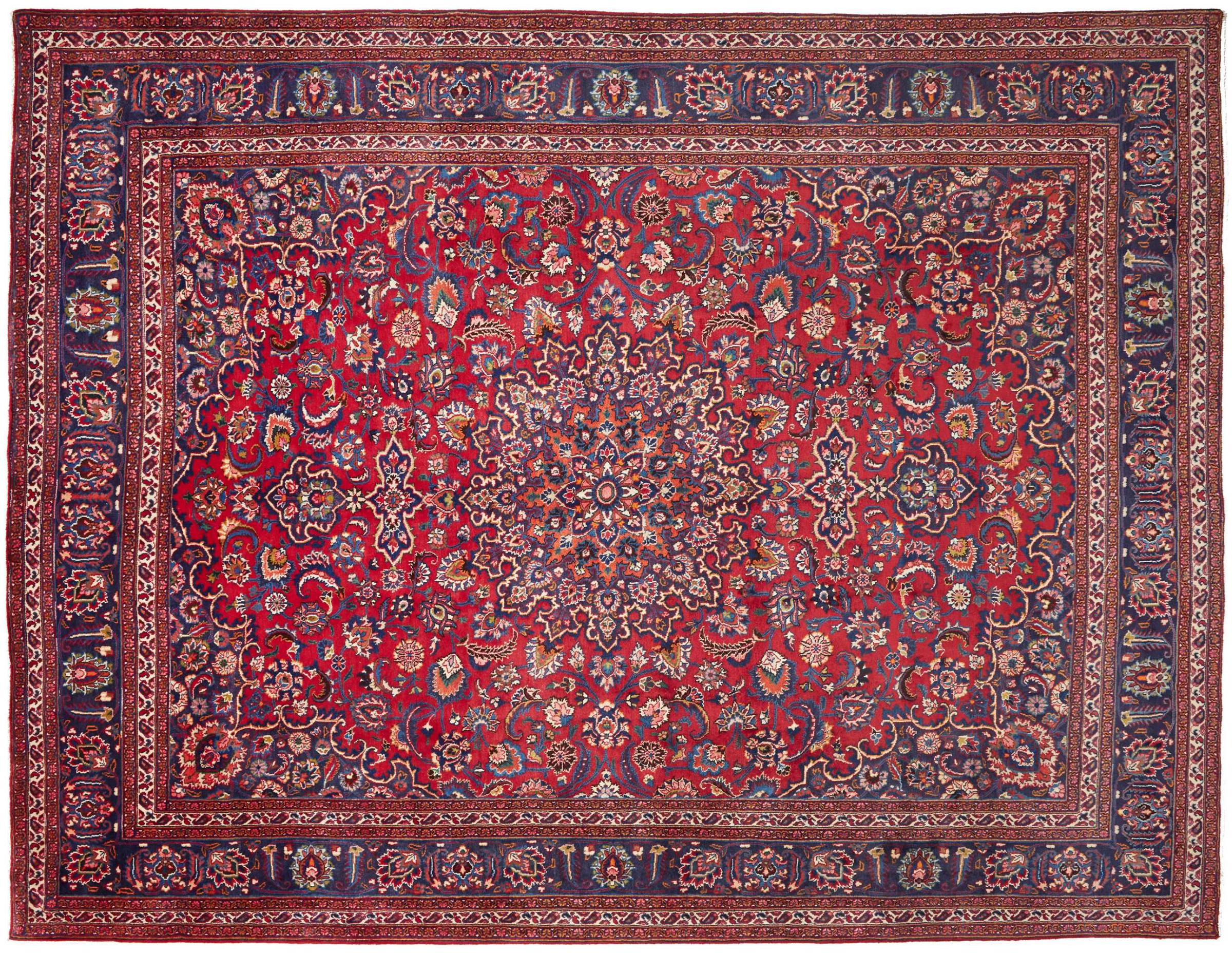 Mattans ID: 306270005033928 Storlek: 374x291 cm Tjocklek: ap. 12 mm Knuttäthet: 128 000 - 160 000 / m² Tillverkning: Knuten för hand Lugg: Handspunnen ull Varp: Bomull Ursprung: Persien / Iran Ålder: Ny Vikt: ap. 38 kg Också känd som Maschad, Meshed I lager: Unik - Endast 1 i lager