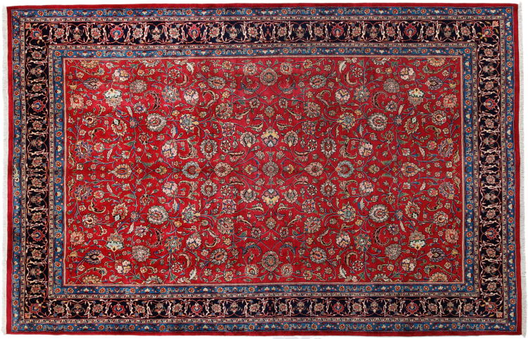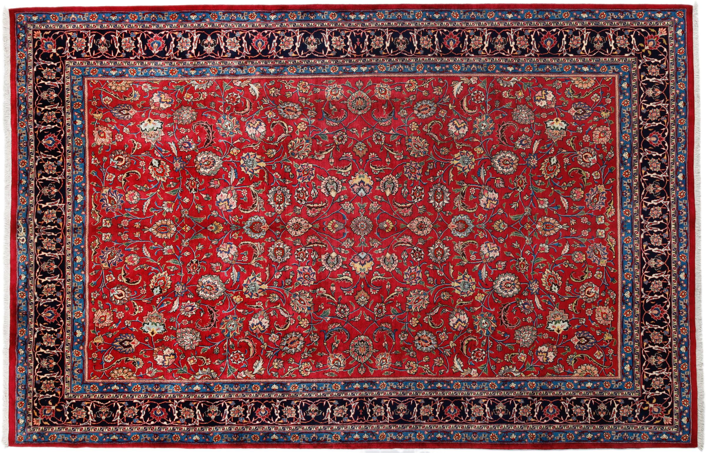 Mattans ID: 226483007620599 Storlek: 383x247 cm Tjocklek: ap. 12 mm Knuttäthet: 200 000 - 250 000 / m² Tillverkning: Knuten för hand Lugg: Ull Varp: Bomull Ursprung: Persien / Iran Ålder: Ny Vikt: ap. 33 kg Också känd som Maschad, Meshed I lager: Unik - Endast 1 i lager