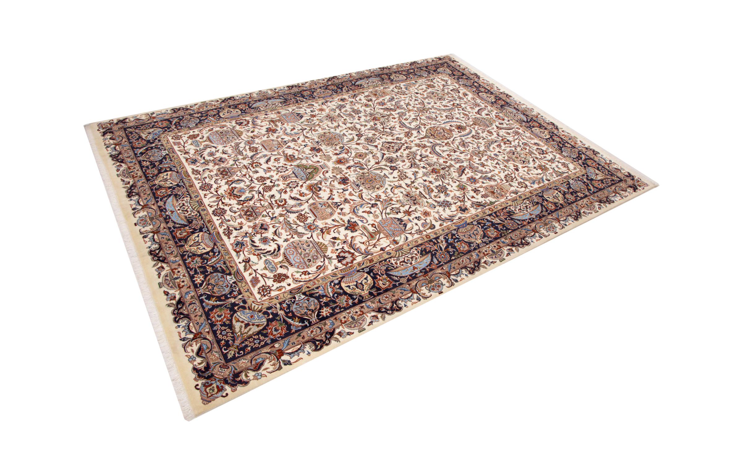 Mattans ID: 293757002495268 Storlek: 344x244 cm Tjocklek: ap. 12 mm Knuttäthet: 320 000 - 360 000 / m² Tillverkning: Knuten för hand Lugg: Handspunnen ull Varp: Bomull Ursprung: Persien / Iran Ålder: Ny Vikt: ap. 29 kg Också känd som Maschad, Meshed I lager: Unik - Endast 1 i lager