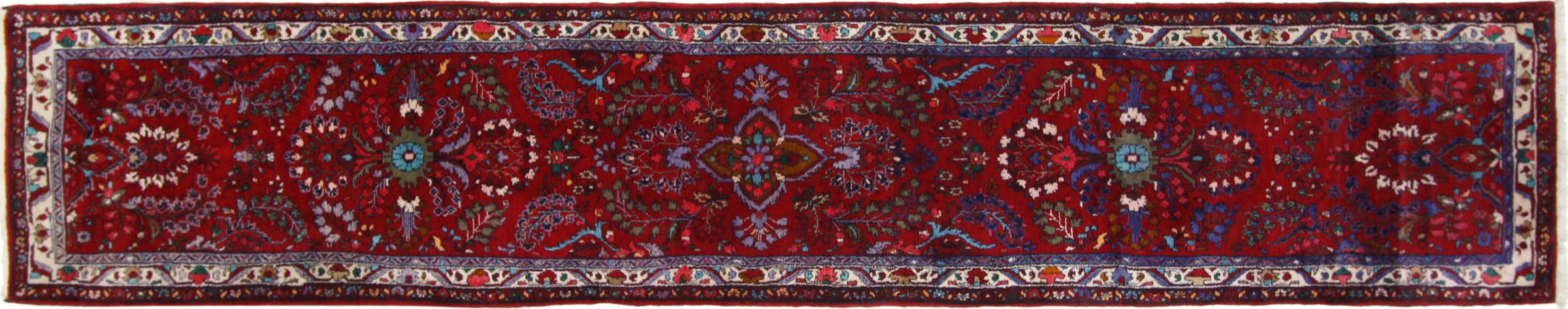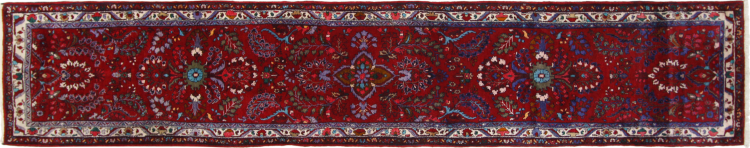 Mattans ID: 313366005522604 Storlek: 455x88 cm Tjocklek: ap. 12 mm Knuttäthet: 128 000 - 160 000 / m² Tillverkning: Knuten för hand Lugg: Handspunnen ull Varp: Bomull Ursprung: Persien / Iran Ålder: Ny Vikt: ap. 14 kg Också känd som Meriban I lager: Unik - Endast 1 i lager