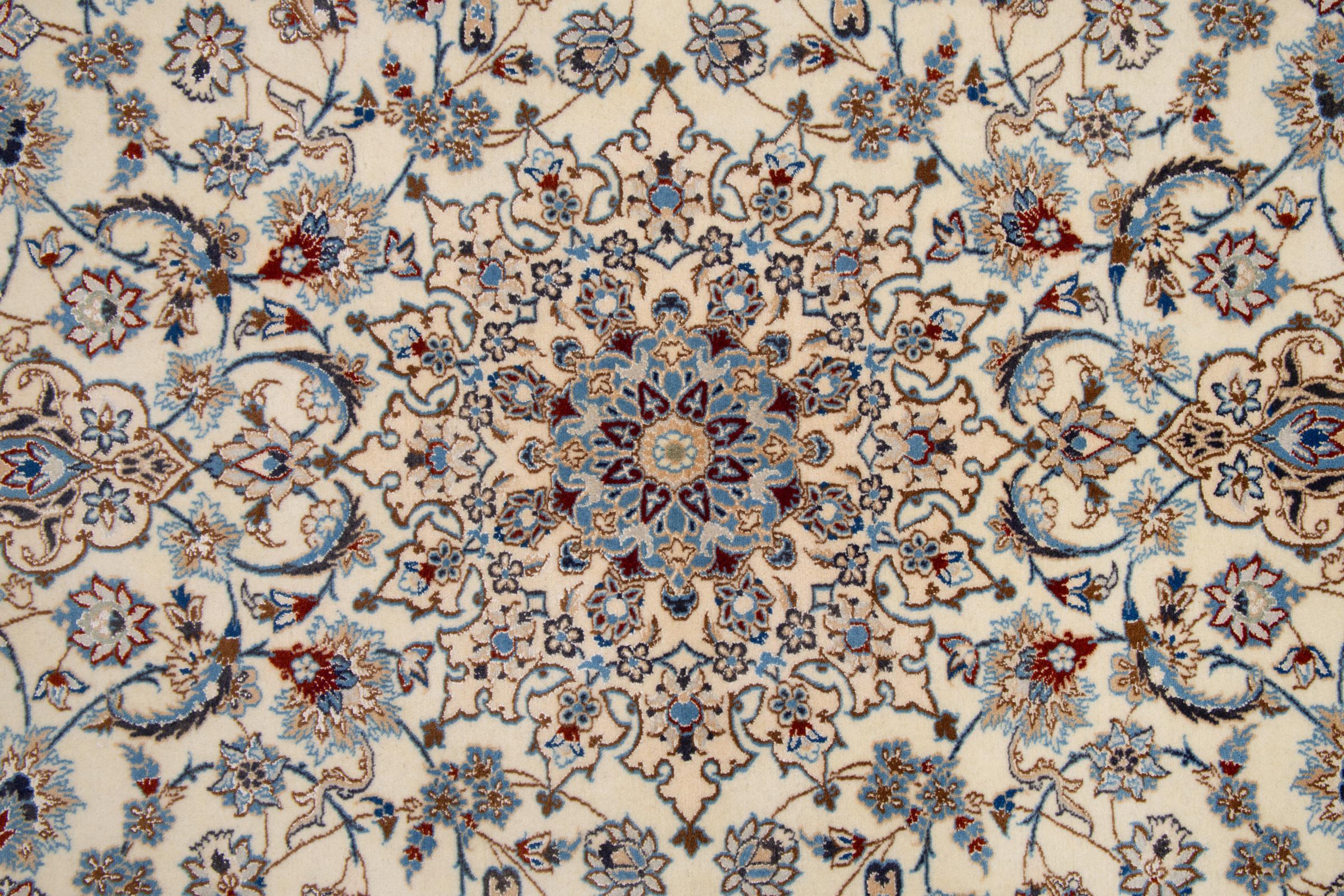 Mattor från staden Nain, från gränsen till en av de största öknarna i Iran, är bland de mest berömda persiska mattorna världen över. Deras typiska design är omisskännlig med blommig prydnad, en medaljong samt beige och röda eller blå färger. Tack vare deras namn 4La, 6La, 9La och 12La, kan du se finländarna på en Nain-matta med en överblick. Ju lägre ”La” -tal, desto högre knutdensitet och därmed mattans finhet.