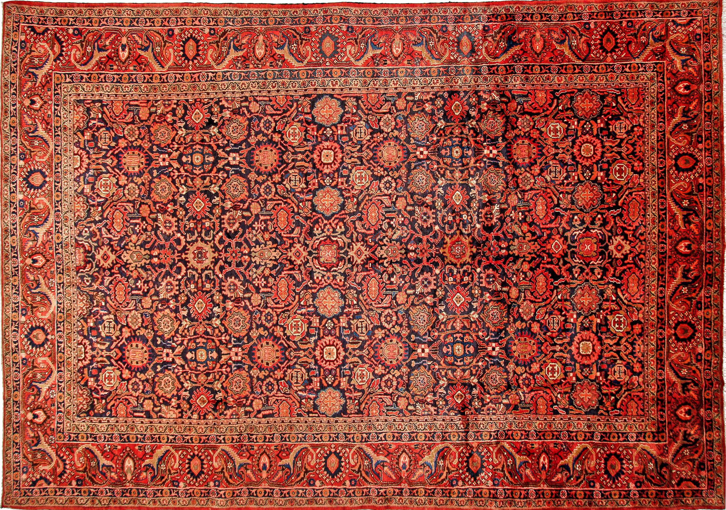 Mattans ID: 88123005173642 Storlek: 418x291 cm Tjocklek: ap. 12 mm Knuttäthet: 270 000 - 300 000 / m² Tillverkning: Knuten för hand Lugg: Handspunnen ull Varp: Bomull Ursprung: Persien / Iran Ålder: Ny Vikt: ap. 49 kg I lager: Unik - Endast 1 i lager