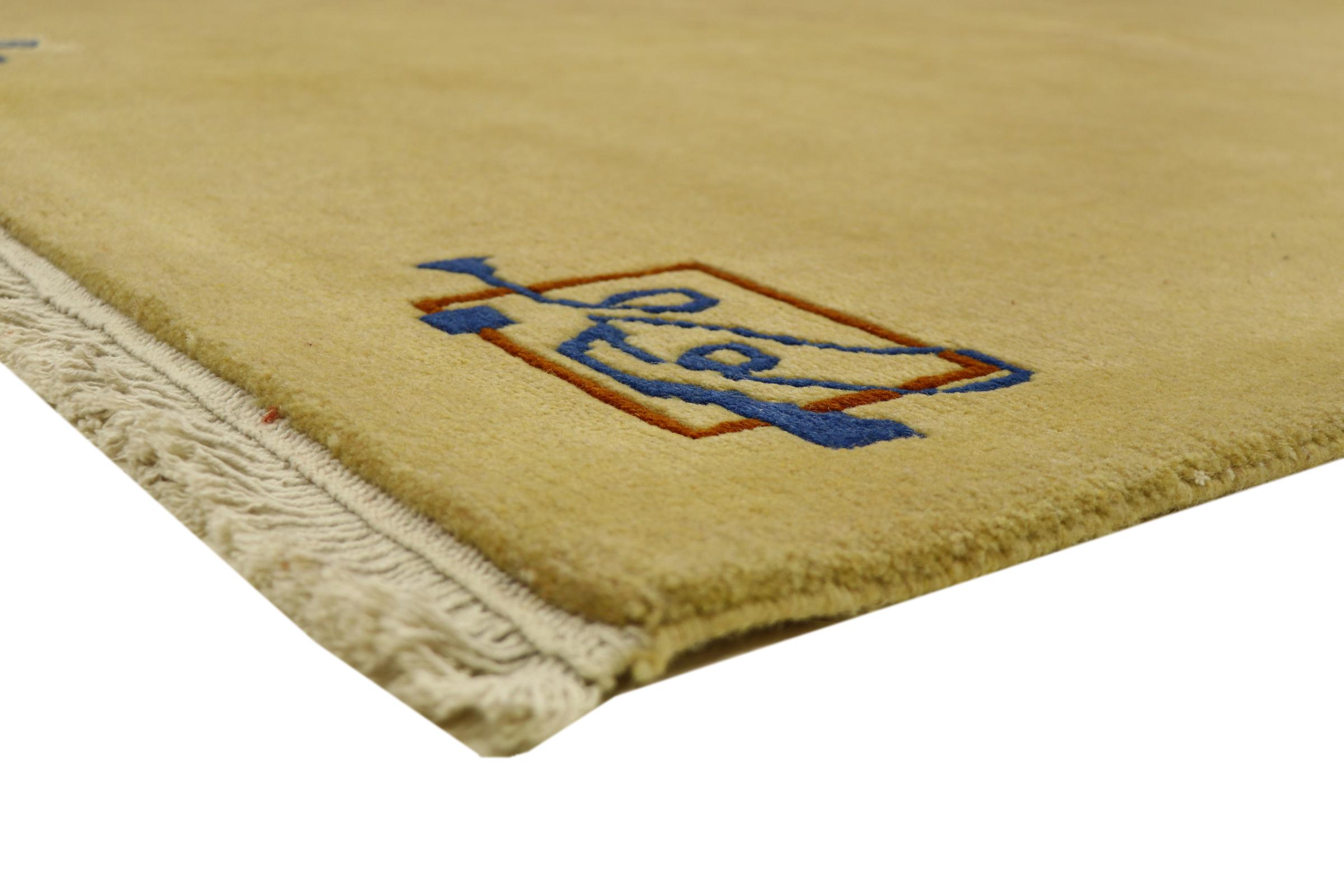 Mattan kommer från Nepal och var handknuten där. Vanligtvis är Nepal mattor något grovare och har moderna, färgglada mönster. Klassiska varianter tar upp mönster från traditionella kinesiska mattor. Under åren har utseendet på Nepal-mattor anpassats till efterfrågan på västra marknader. Så idag kan du hitta pastellfärger och geometriska mönster på dessa handknutna mattor.