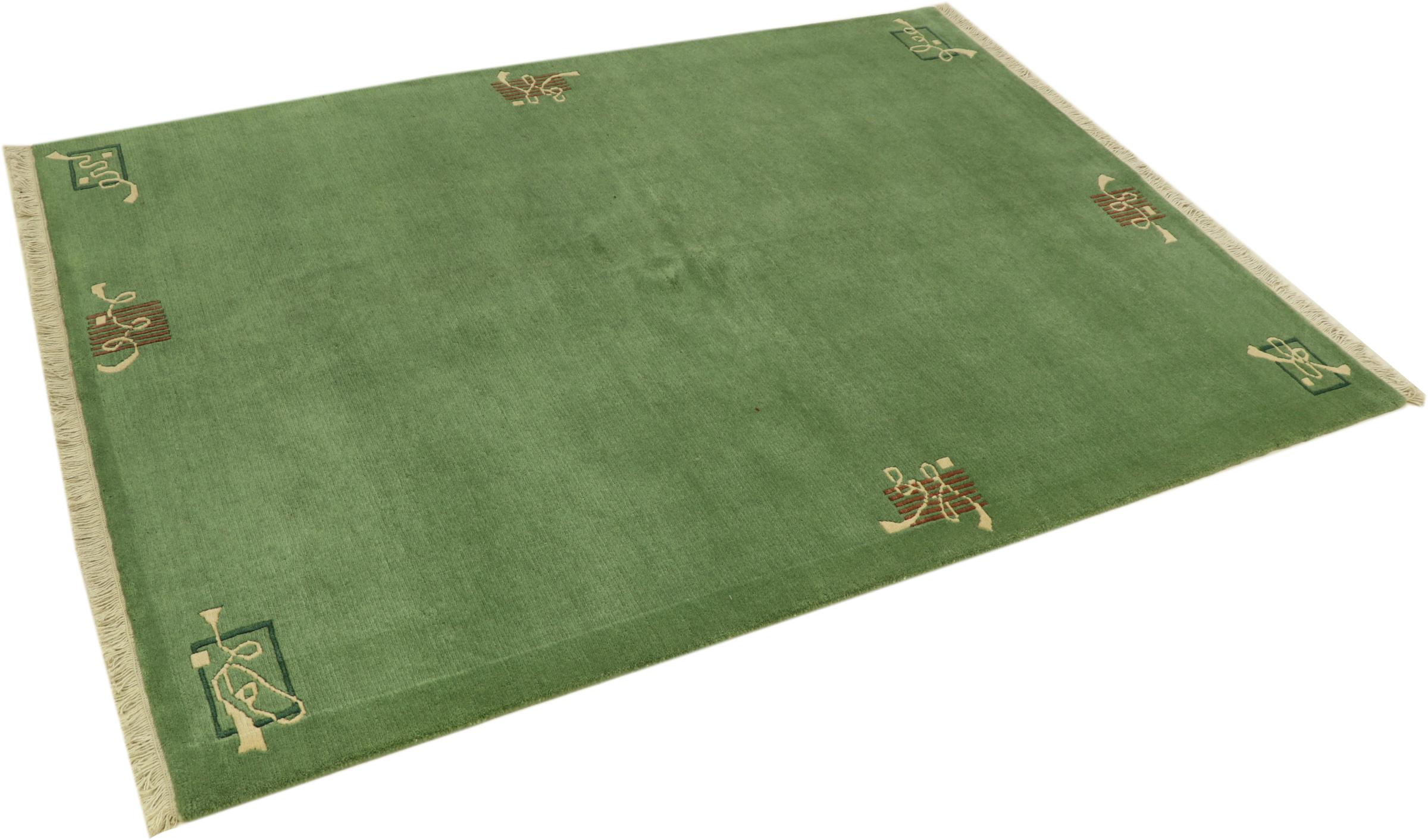 Mattan kommer från Nepal och var handknuten där. Vanligtvis är Nepal mattor något grovare och har moderna, färgglada mönster. Klassiska varianter tar upp mönster från traditionella kinesiska mattor. Under åren har utseendet på Nepal-mattor anpassats till efterfrågan på västra marknader. Så idag kan du hitta pastellfärger och geometriska mönster på dessa handknutna mattor.