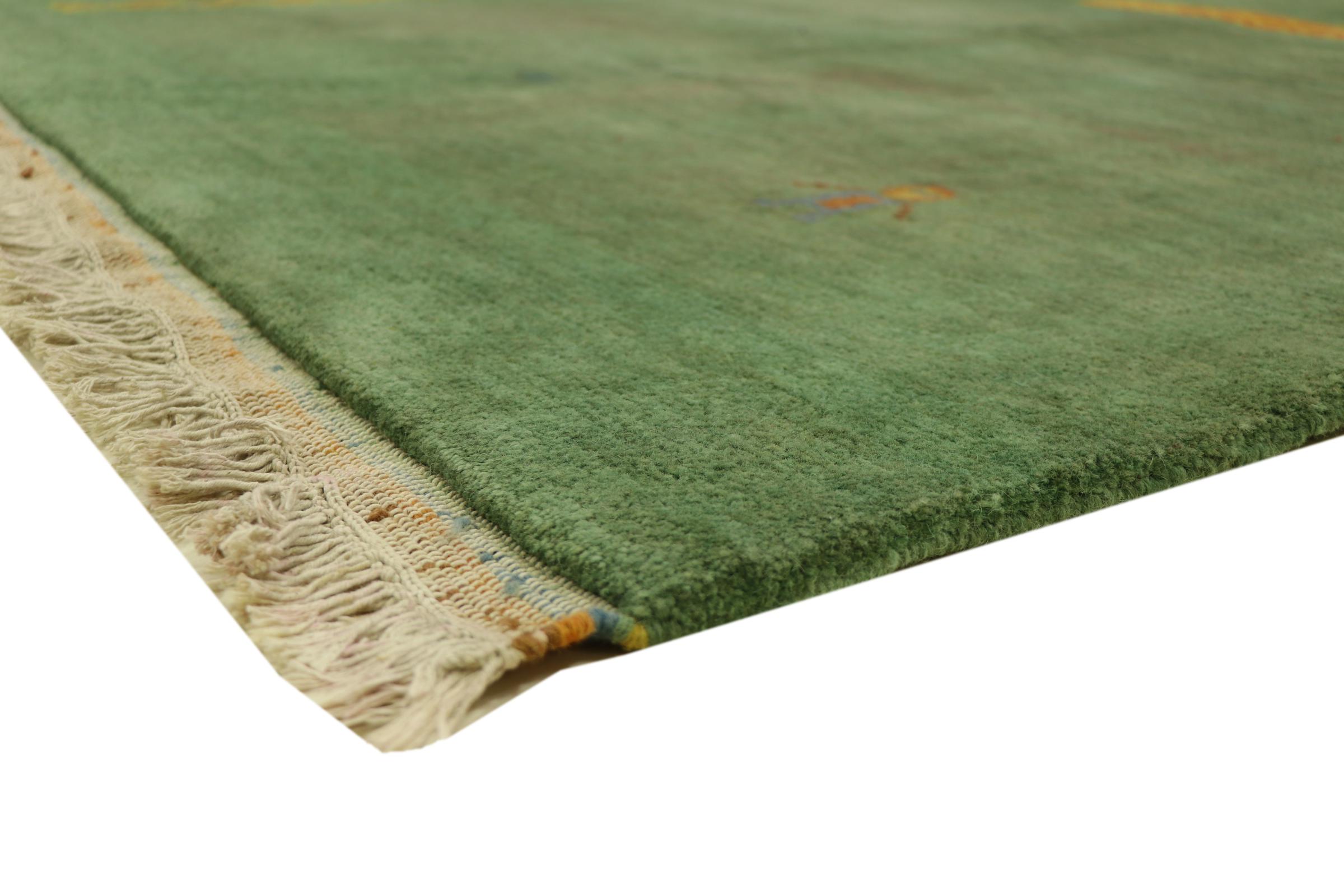 Mattan kommer från Nepal och var handknuten där. Vanligtvis är Nepal mattor något grovare och har moderna, färgglada mönster. Klassiska varianter tar upp mönster från traditionella kinesiska mattor. Under åren har utseendet på Nepal-mattor anpassats till efterfrågan på västra marknader. Så idag kan du hitta pastellfärger och geometriska mönster på dessa handknutna mattor.