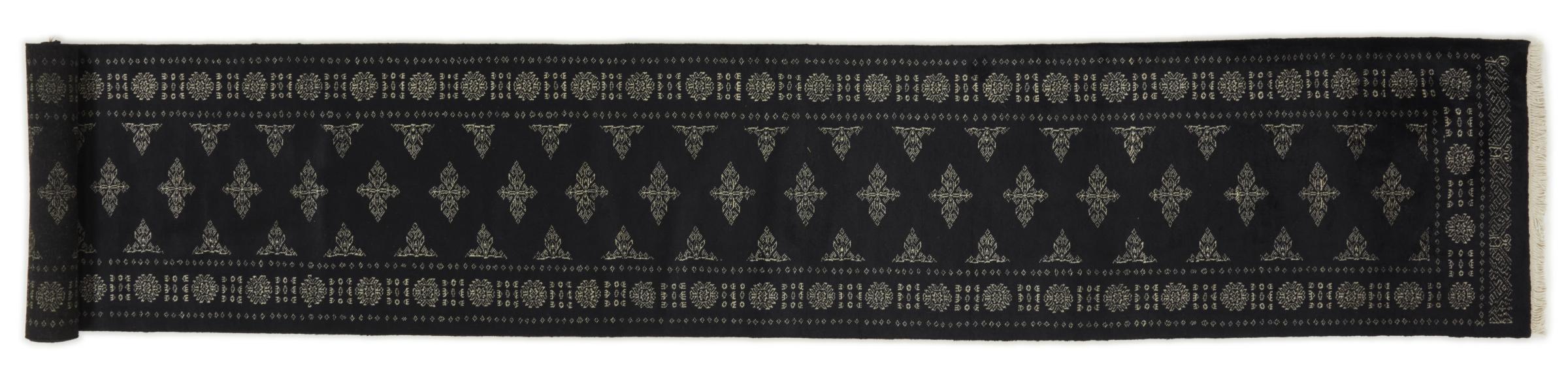 Mattans ID: 299473008960369 Storlek: 520x81 cm Tjocklek: ap. 8 mm Knuttäthet: 270 000 - 300 000 / m² Tillverkning: Knuten för hand Lugg: Handspunnen ull Varp: Bomull Ursprung: pakistan Ålder: Ny Vikt: ap. 13 kg I lager: Unik - Endast 1 i lager
