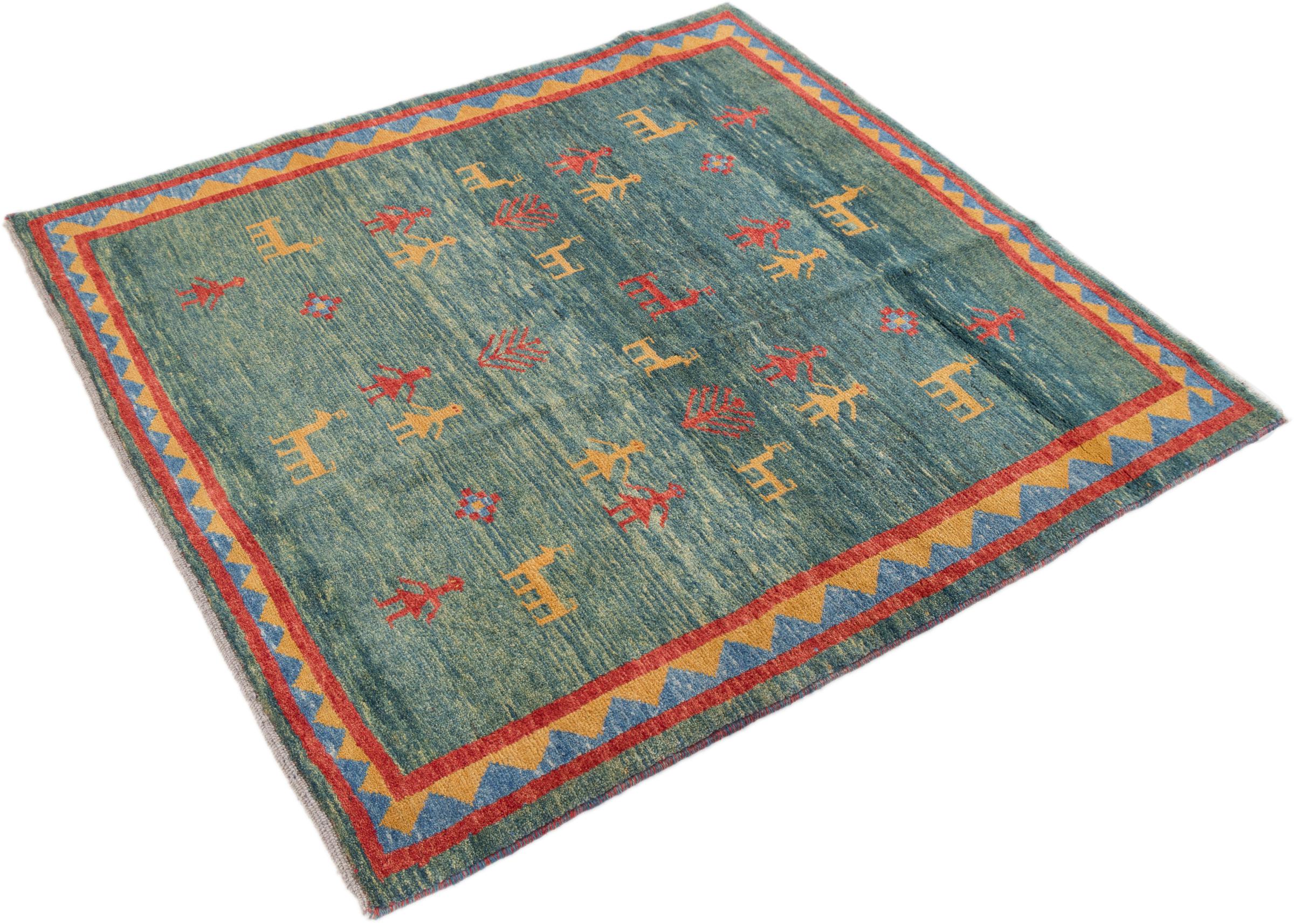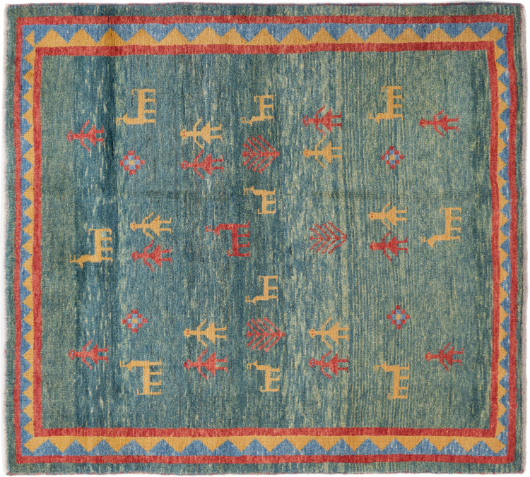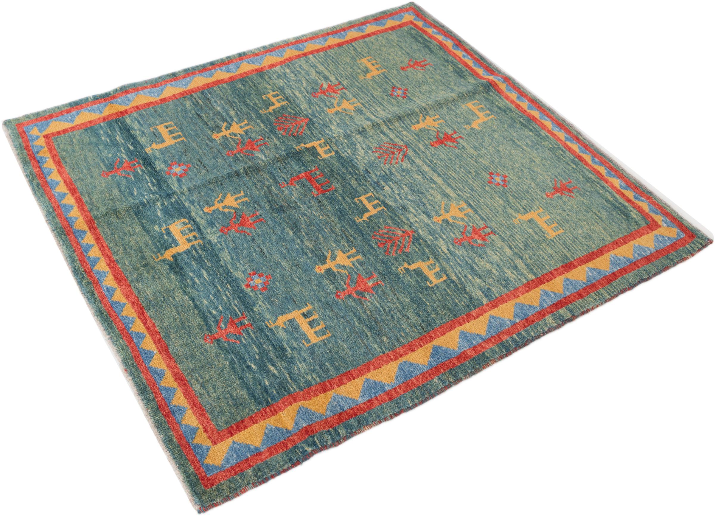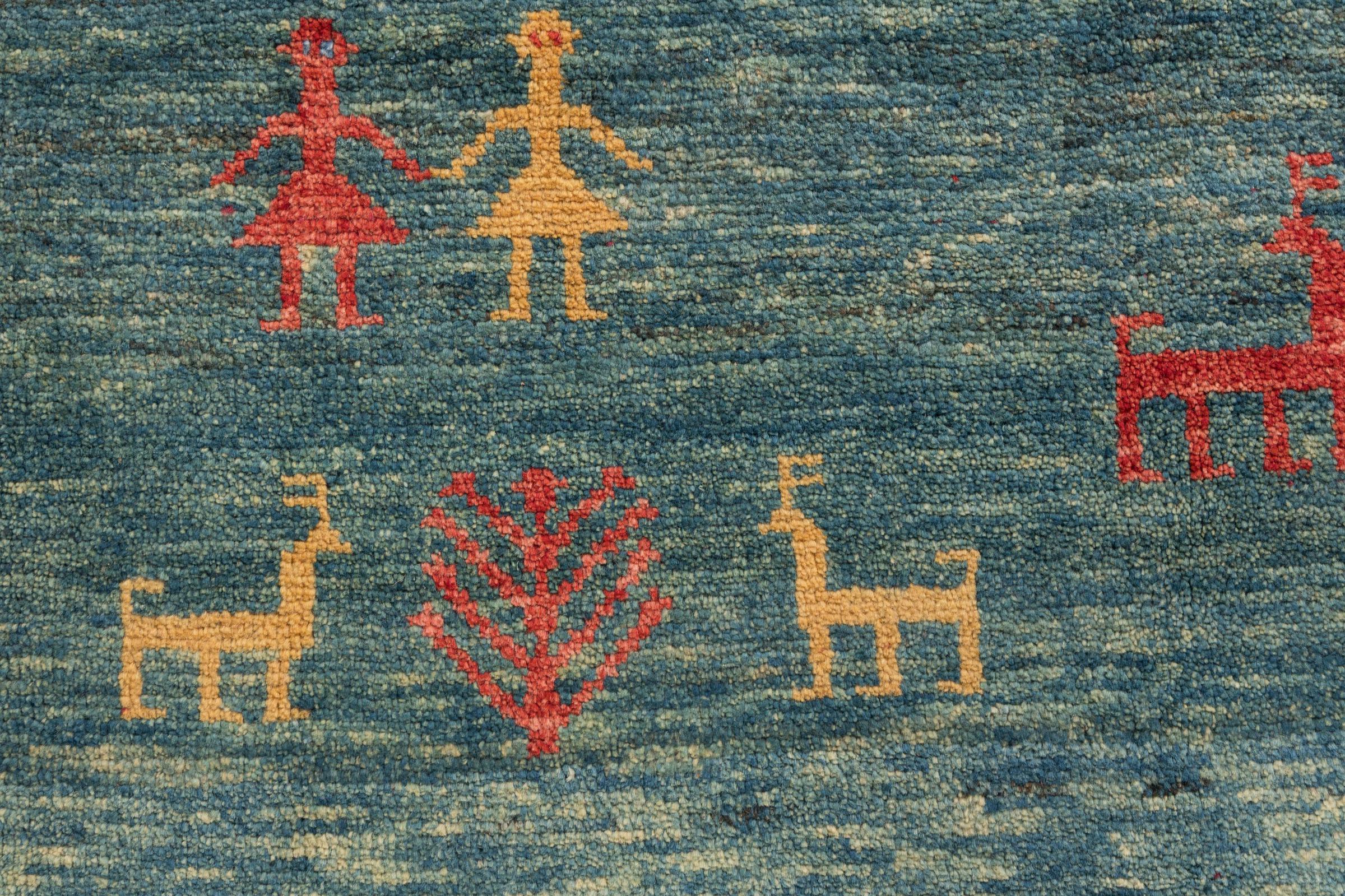 Den här vackra mattan är en persisk Gabbeh och är en av de högsta kvaliteten på Gabbeh-mattor. Mattorna är knutna av nomader eller semi-nomader i Iran med traditionellt hantverk. De enkla motiven och mönstren är mestadels inspirerade av nomaderna. Till exempel kan kameler, träd eller buskar hittas på traditionella mattor. Persiska Gabbeh-mattor är tillverkade av ull från lokala fårbesättningar. Ullen spinns därför mest för hand. Var och en av dessa orientaliska mattor förkroppsligar en unik karaktär av hundraårig kultur.
