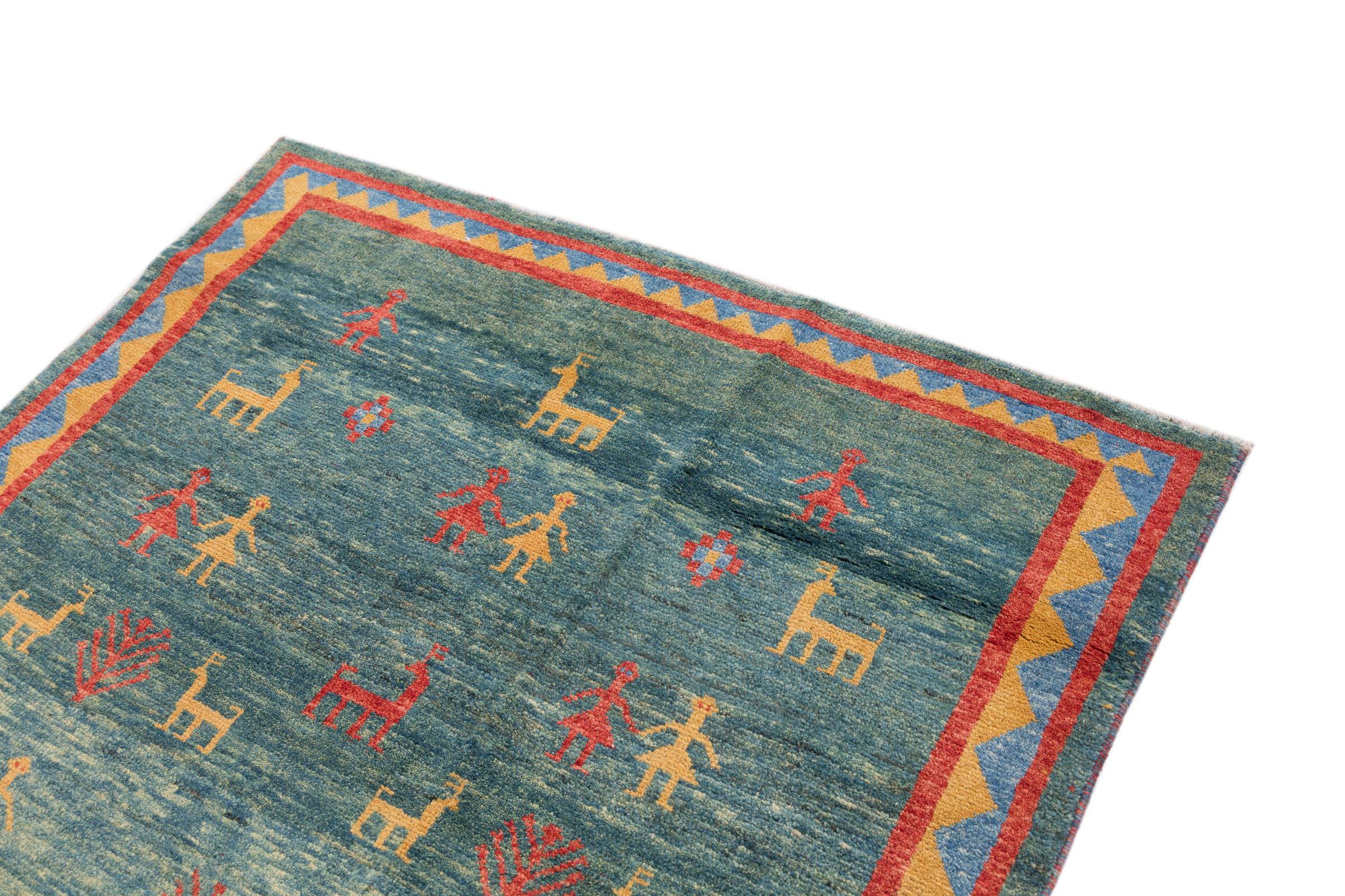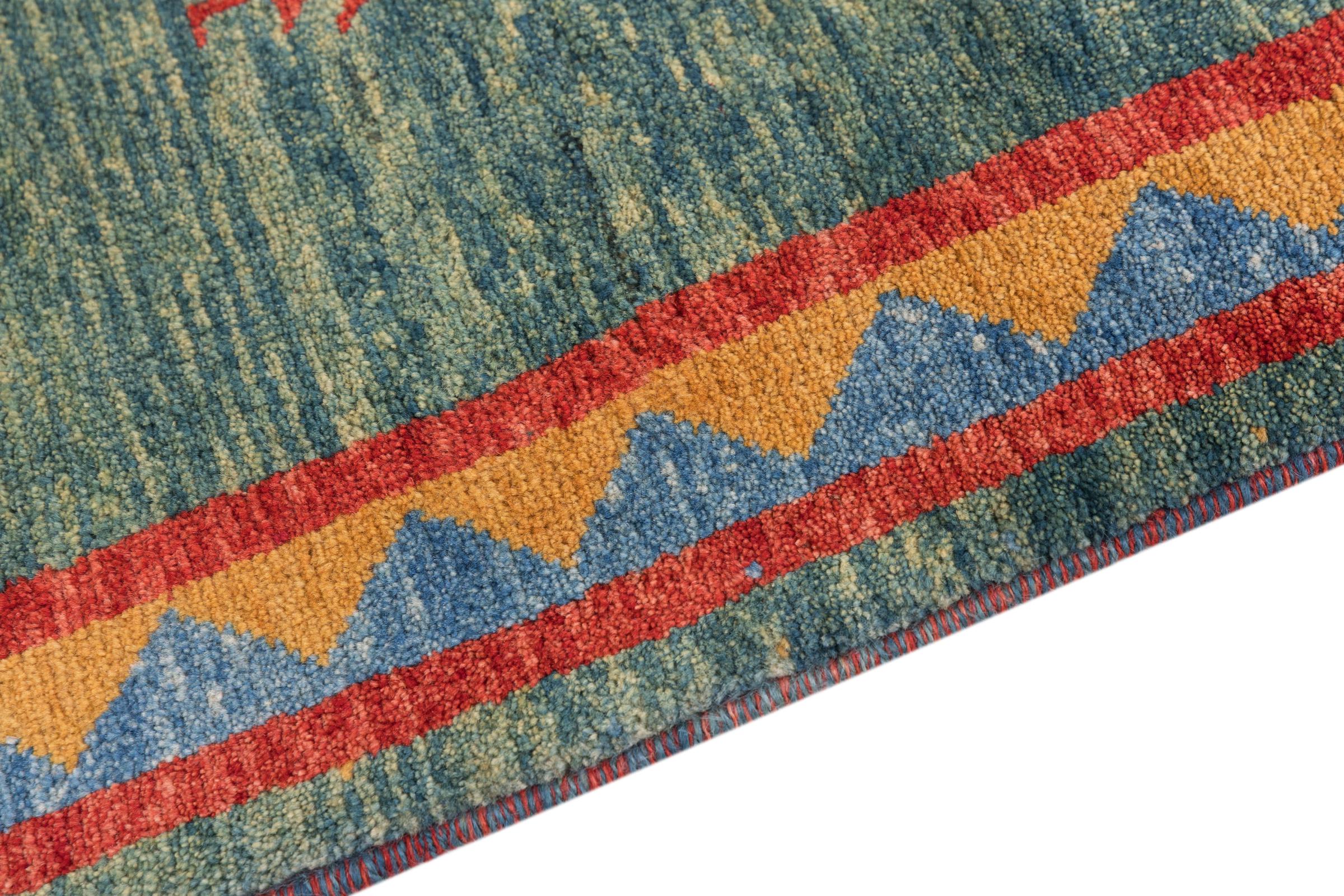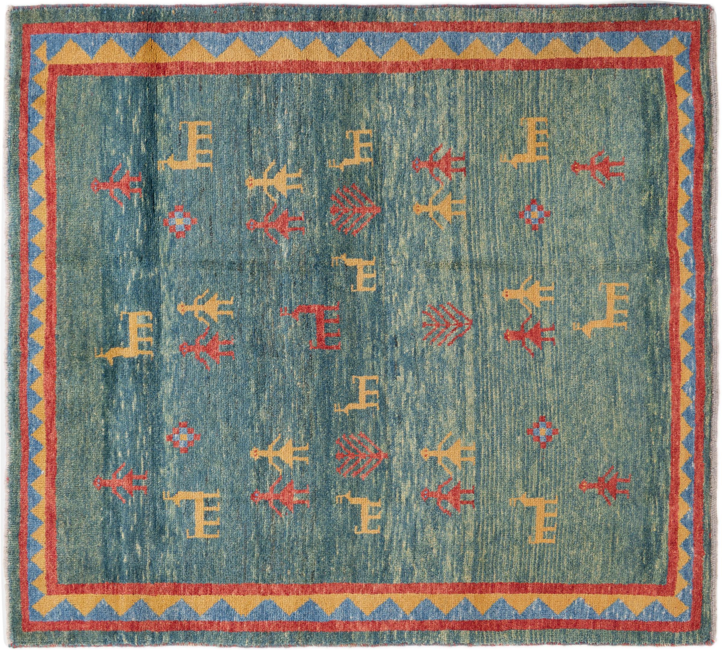 Den här vackra mattan är en persisk Gabbeh och är en av de högsta kvaliteten på Gabbeh-mattor. Mattorna är knutna av nomader eller semi-nomader i Iran med traditionellt hantverk. De enkla motiven och mönstren är mestadels inspirerade av nomaderna. Till exempel kan kameler, träd eller buskar hittas på traditionella mattor. Persiska Gabbeh-mattor är tillverkade av ull från lokala fårbesättningar. Ullen spinns därför mest för hand. Var och en av dessa orientaliska mattor förkroppsligar en unik karaktär av hundraårig kultur.
