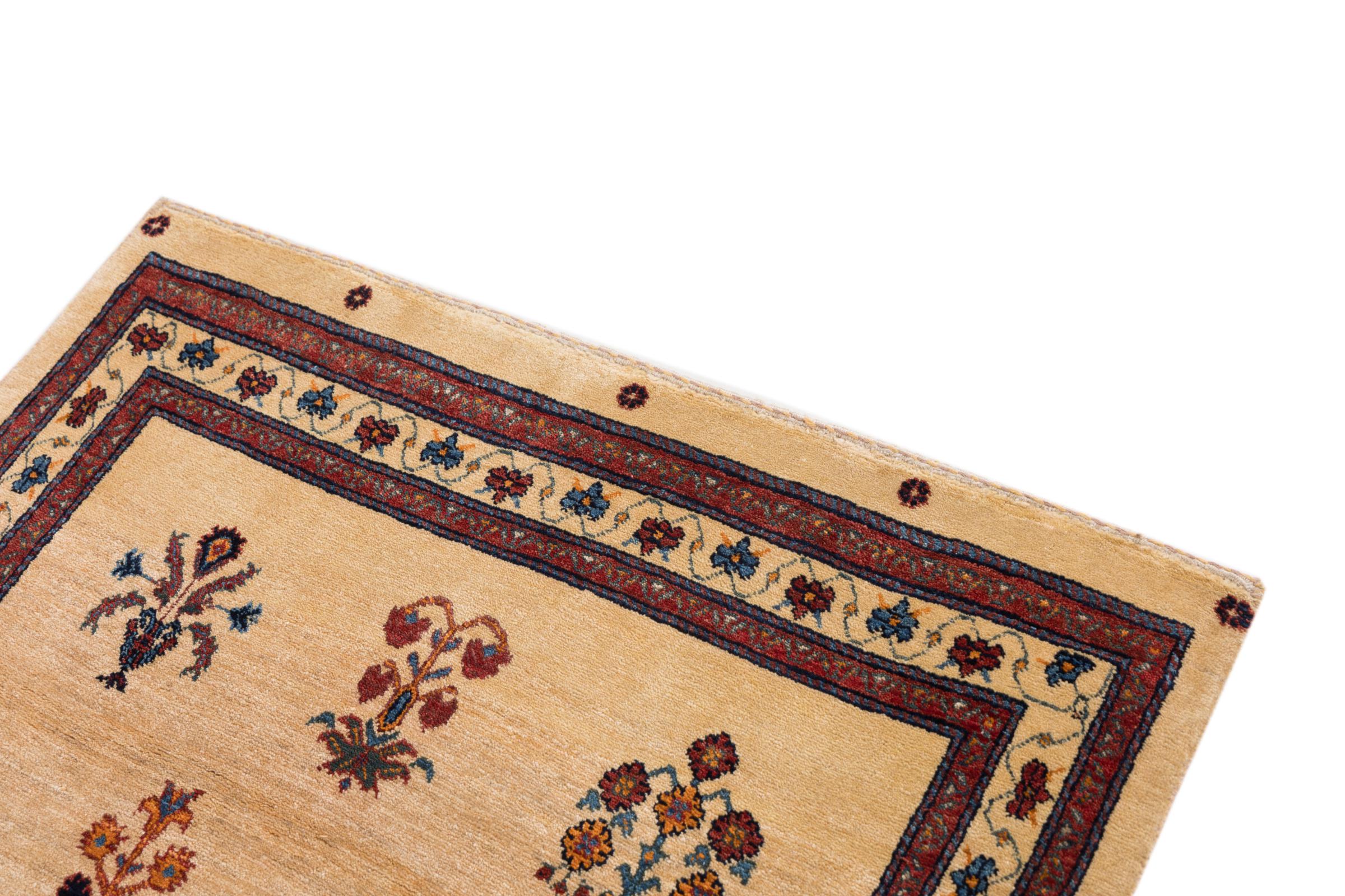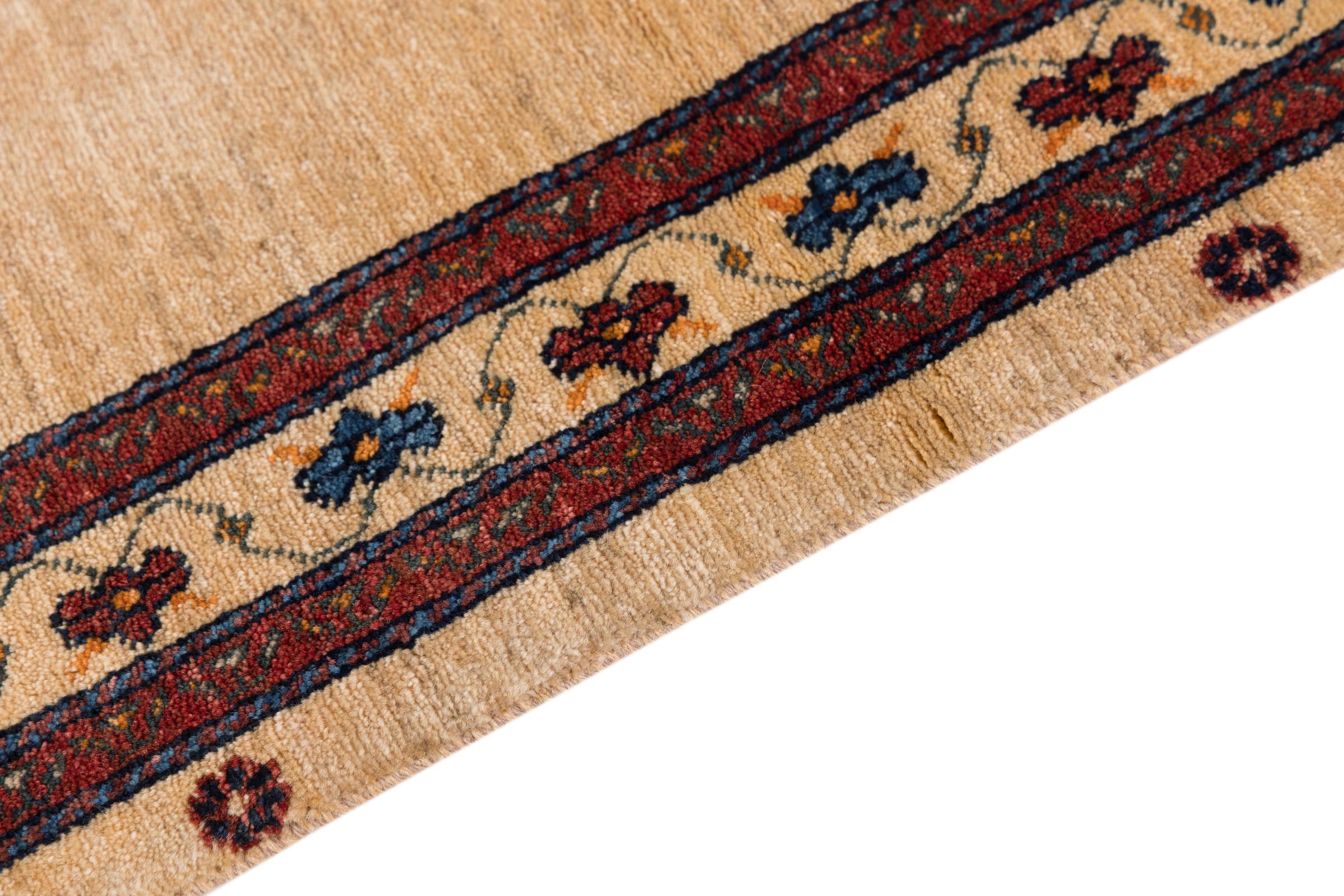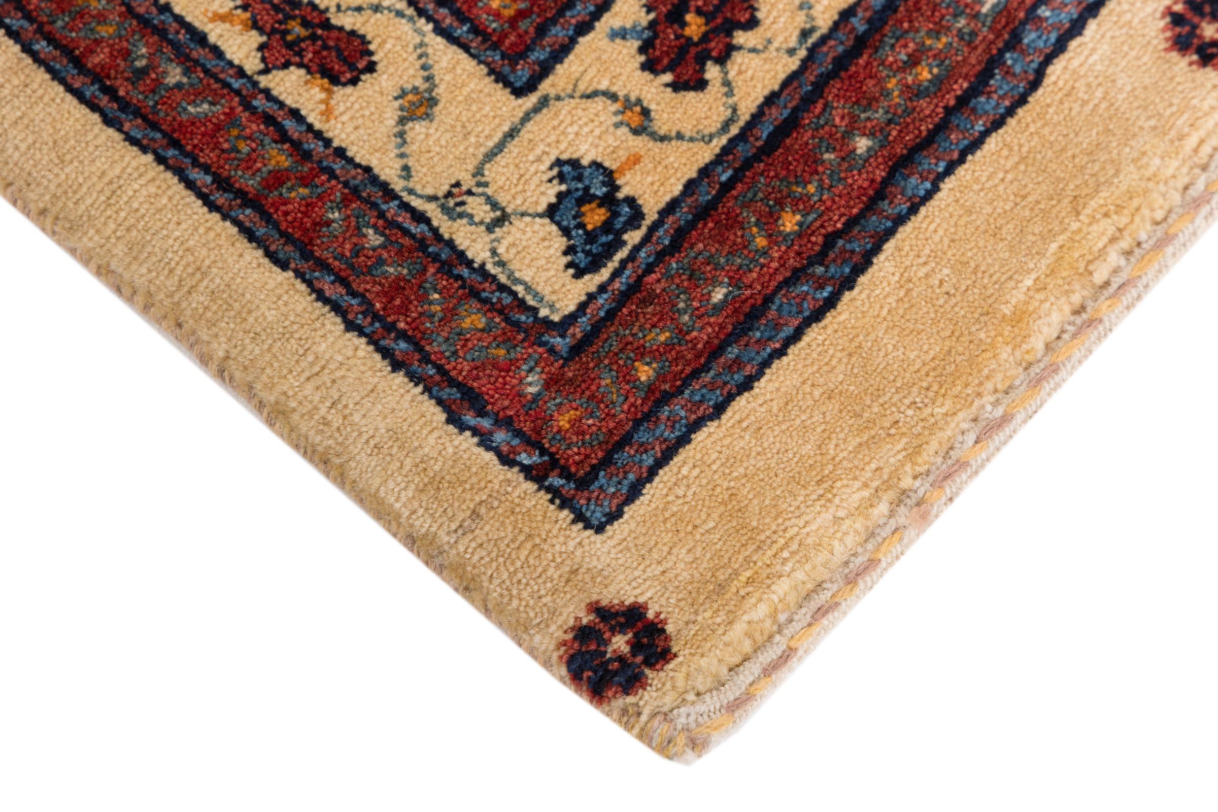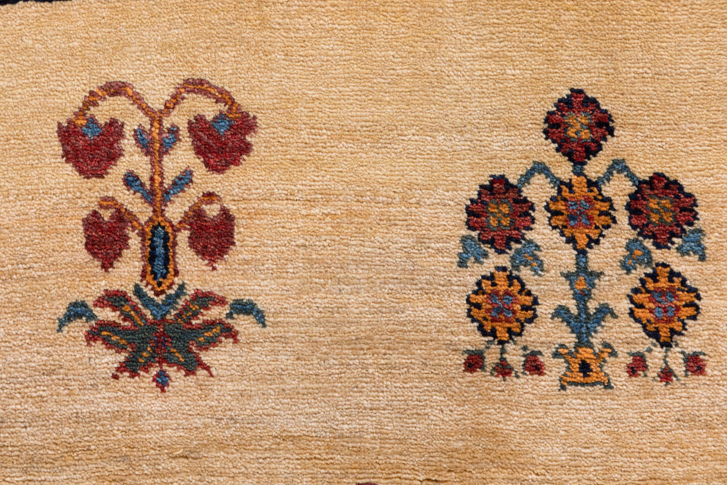 Den här vackra mattan är en persisk Gabbeh och är en av de högsta kvaliteten på Gabbeh-mattor. Mattorna är knutna av nomader eller semi-nomader i Iran med traditionellt hantverk. De enkla motiven och mönstren är mestadels inspirerade av nomaderna. Till exempel kan kameler, träd eller buskar hittas på traditionella mattor. Persiska Gabbeh-mattor är tillverkade av ull från lokala fårbesättningar. Ullen spinns därför mest för hand. Var och en av dessa orientaliska mattor förkroppsligar en unik karaktär av hundraårig kultur.