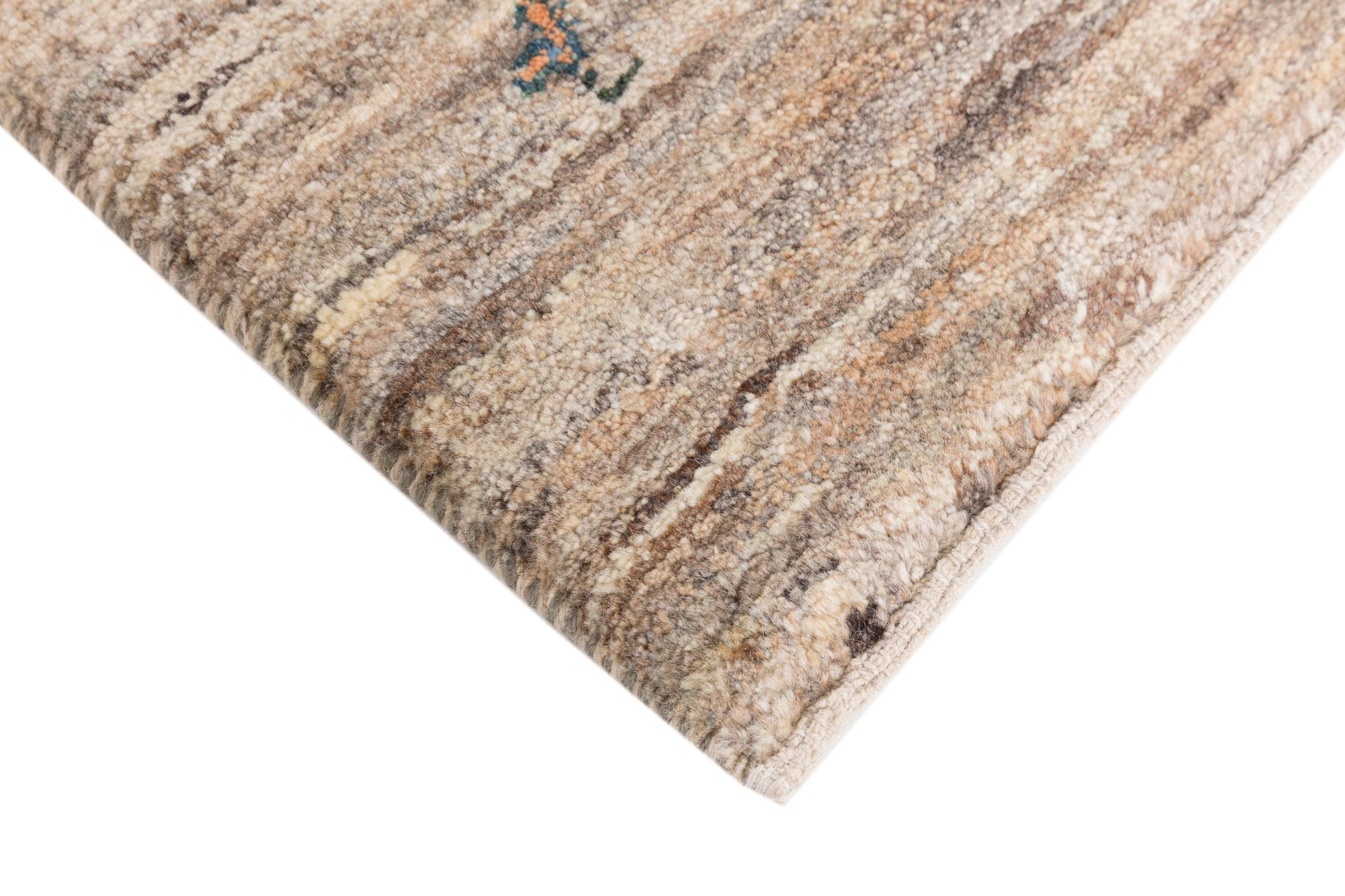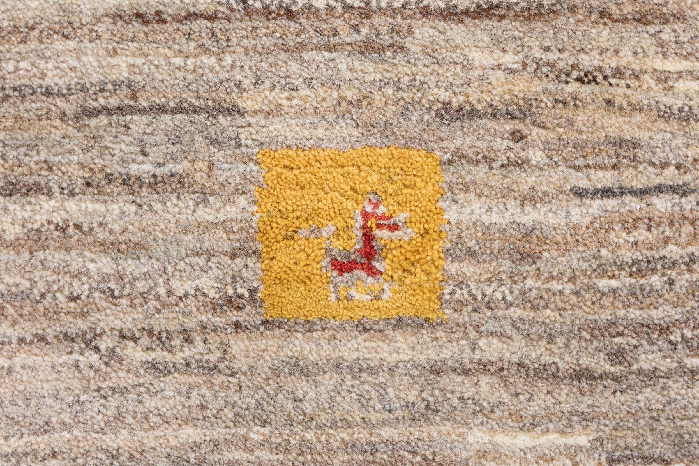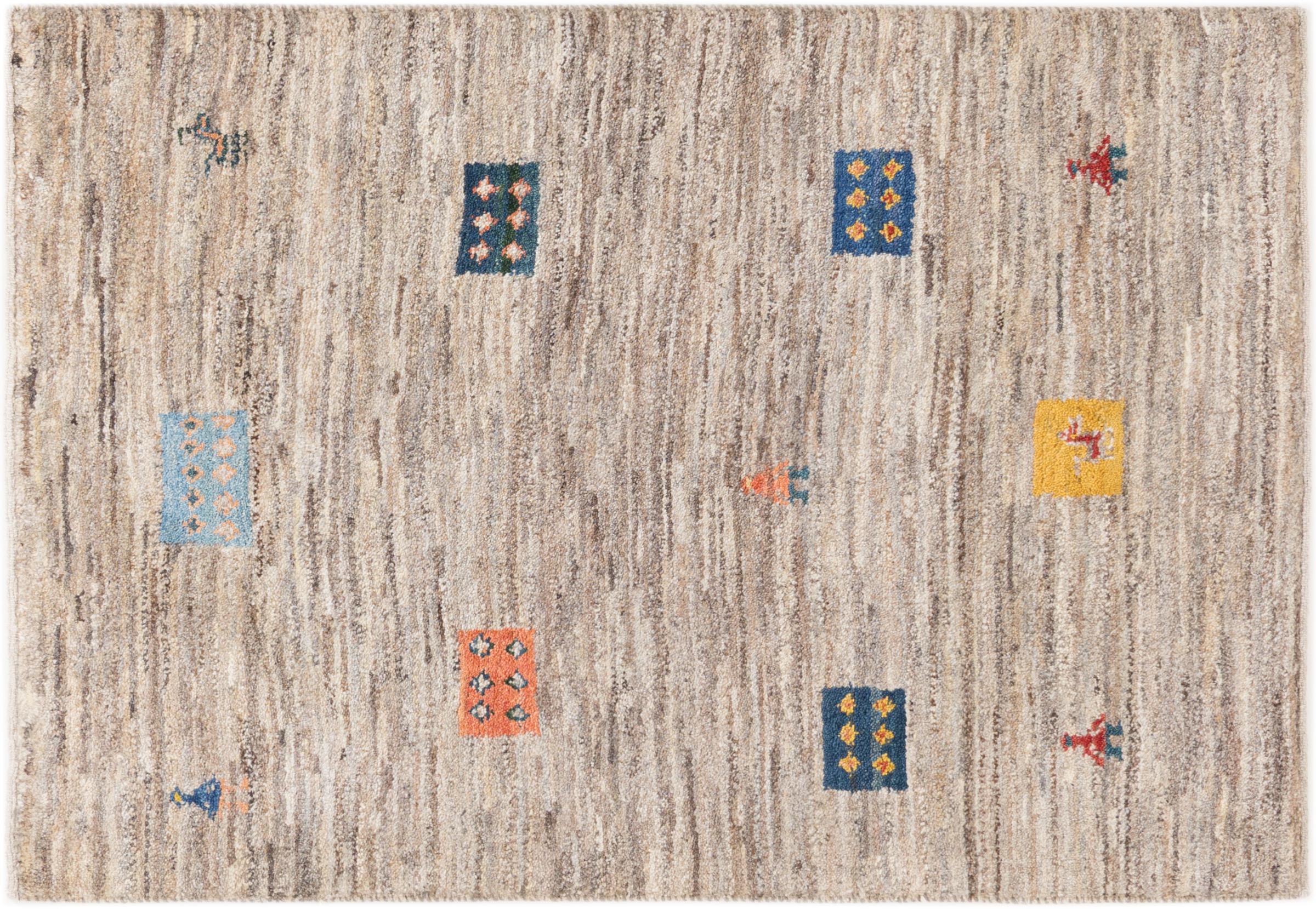 Den här vackra mattan är en persisk Gabbeh och är en av de högsta kvaliteten på Gabbeh-mattor. Mattorna är knutna av nomader eller semi-nomader i Iran med traditionellt hantverk. De enkla motiven och mönstren är mestadels inspirerade av nomaderna. Till exempel kan kameler, träd eller buskar hittas på traditionella mattor. Persiska Gabbeh-mattor är tillverkade av ull från lokala fårbesättningar. Ullen spinns därför mest för hand. Var och en av dessa orientaliska mattor förkroppsligar en unik karaktär av hundraårig kultur.