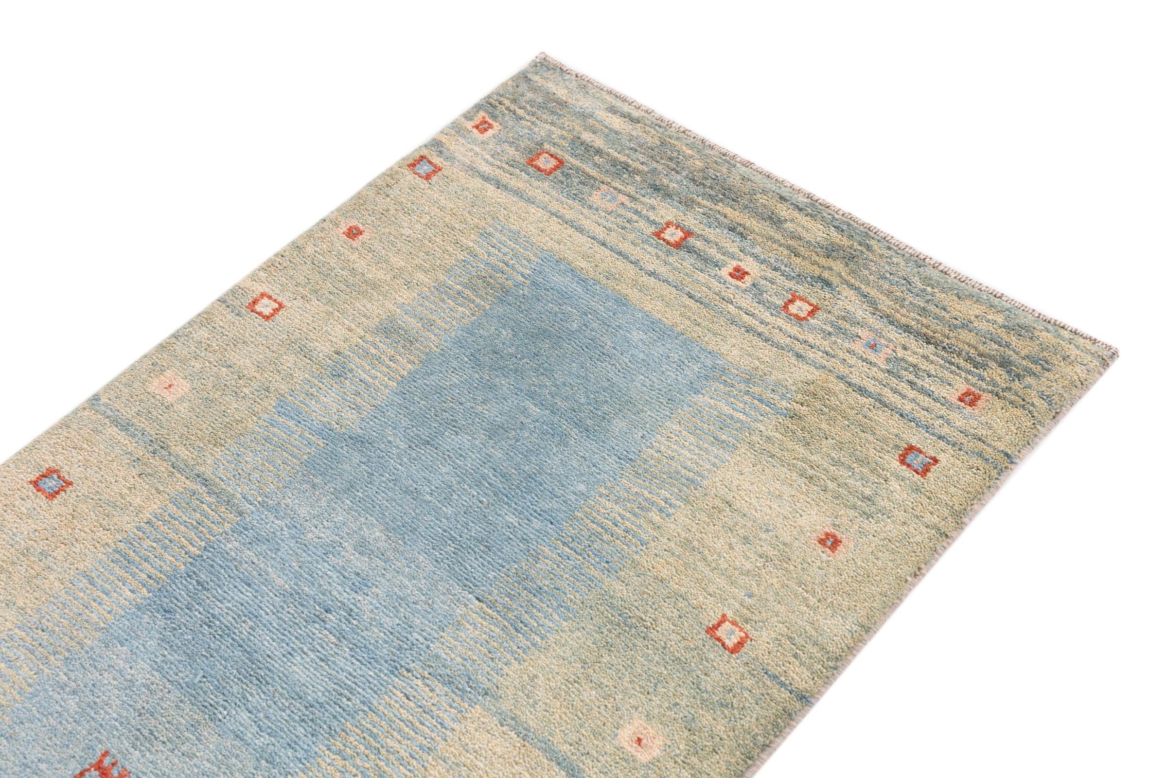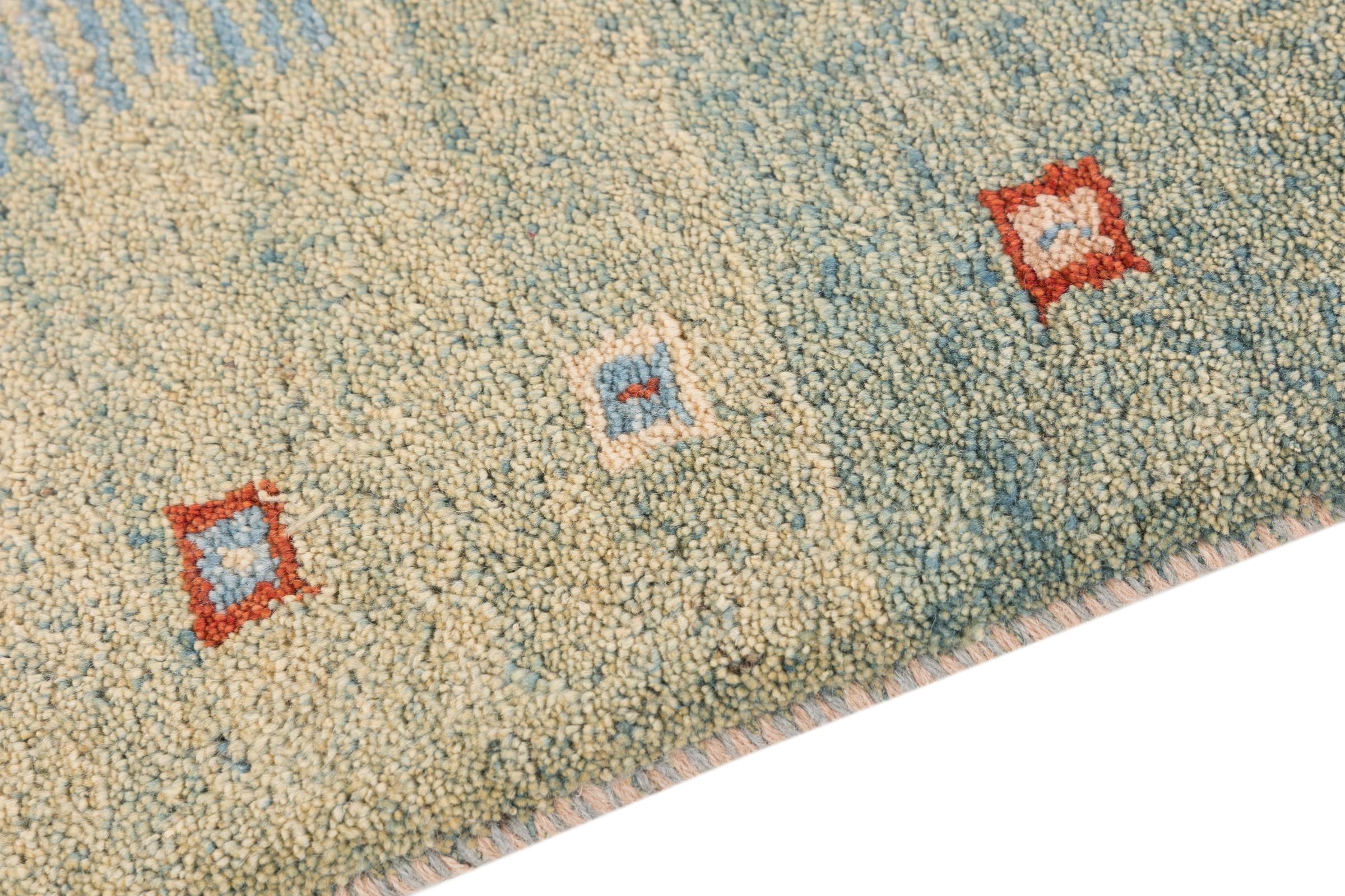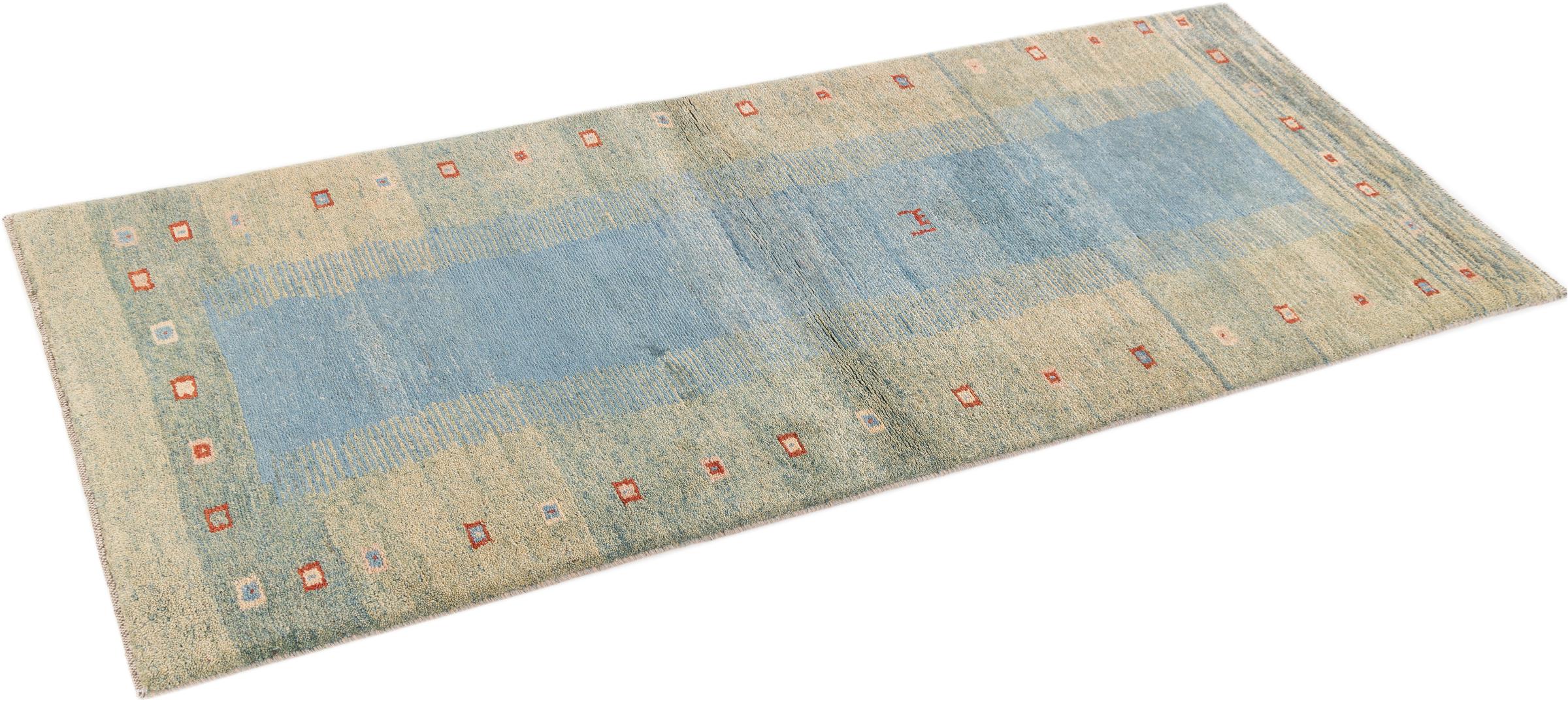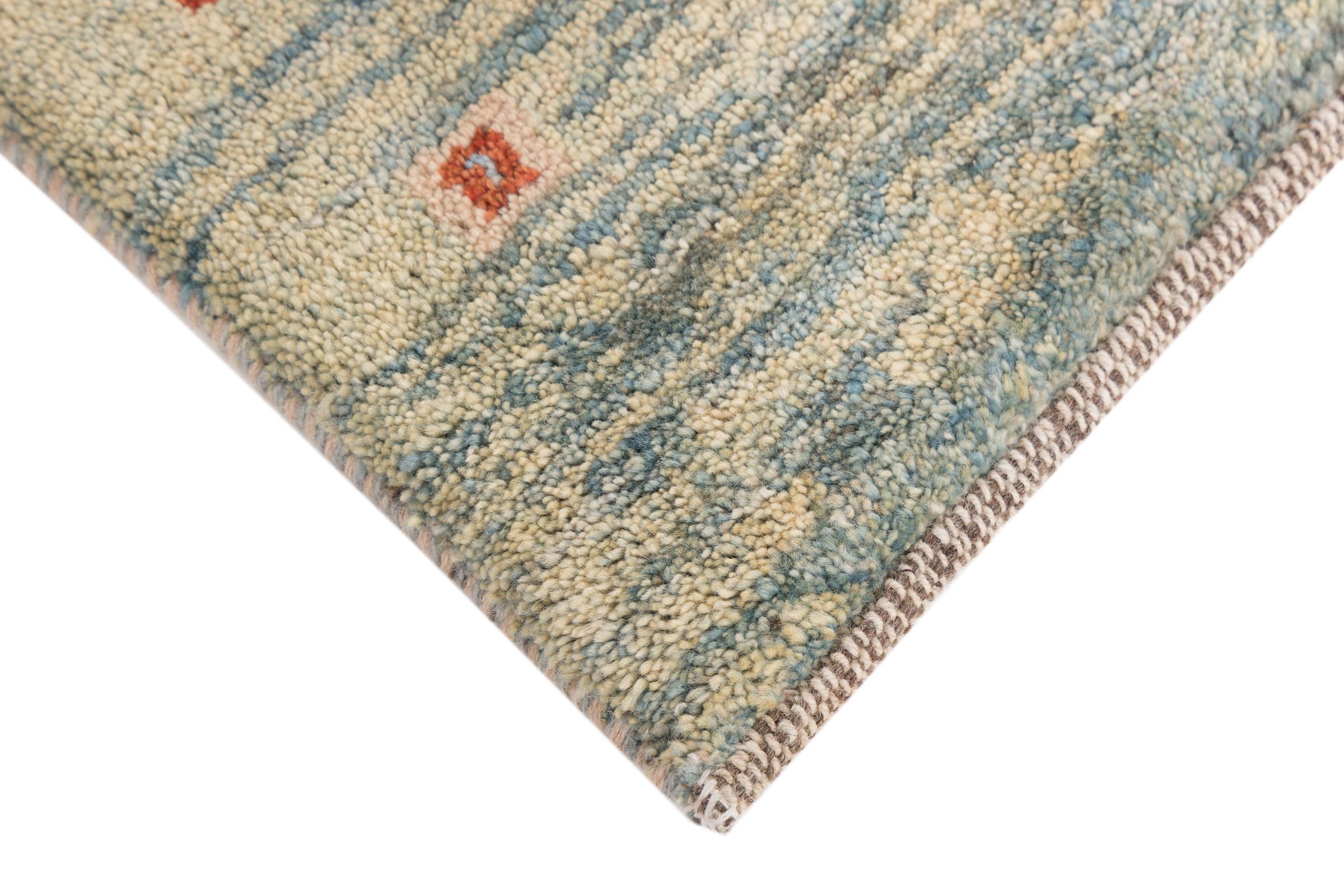 Den här vackra mattan är en persisk Gabbeh och är en av de högsta kvaliteten på Gabbeh-mattor. Mattorna är knutna av nomader eller semi-nomader i Iran med traditionellt hantverk. De enkla motiven och mönstren är mestadels inspirerade av nomaderna. Till exempel kan kameler, träd eller buskar hittas på traditionella mattor. Persiska Gabbeh-mattor är tillverkade av ull från lokala fårbesättningar. Ullen spinns därför mest för hand. Var och en av dessa orientaliska mattor förkroppsligar en unik karaktär av hundraårig kultur.