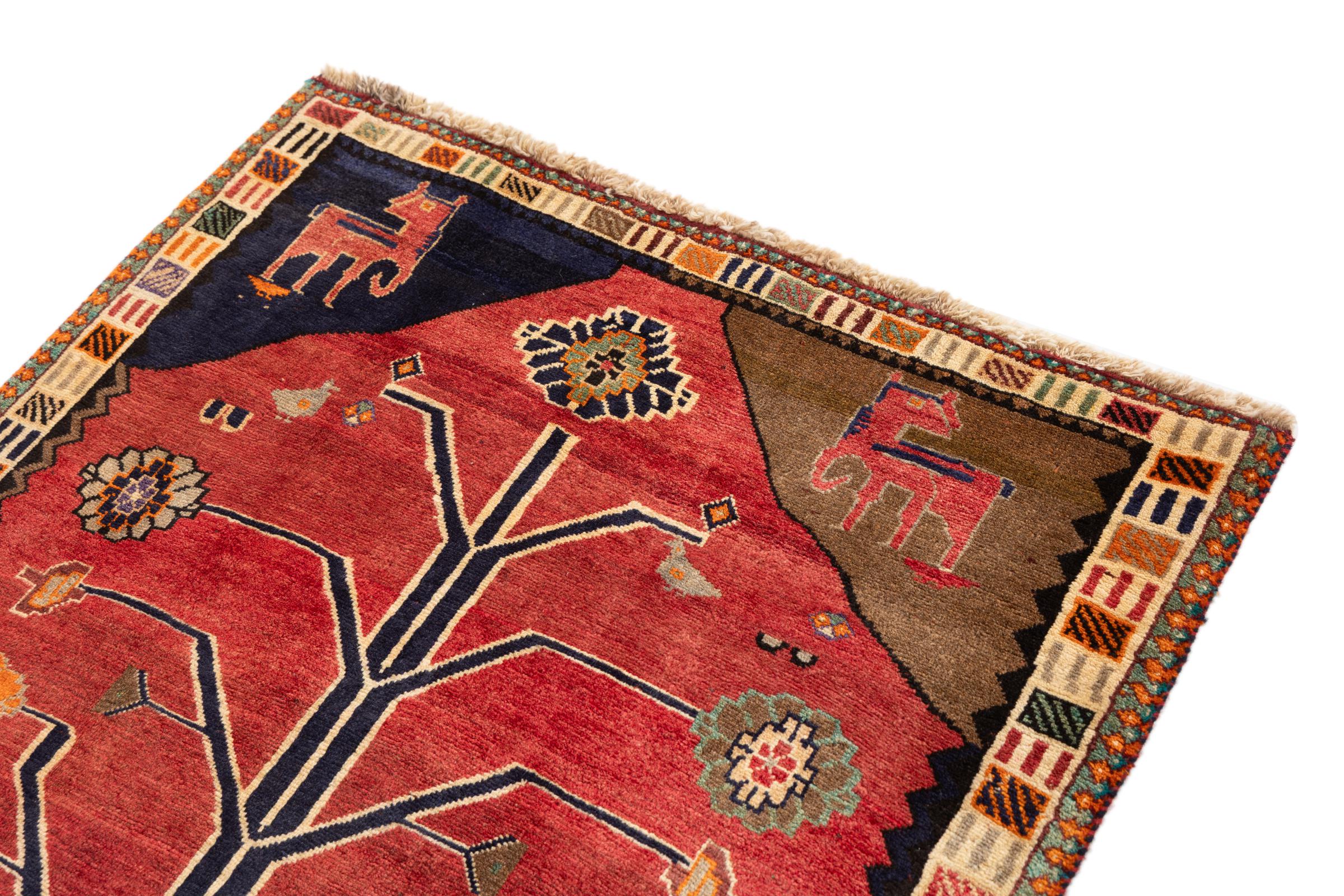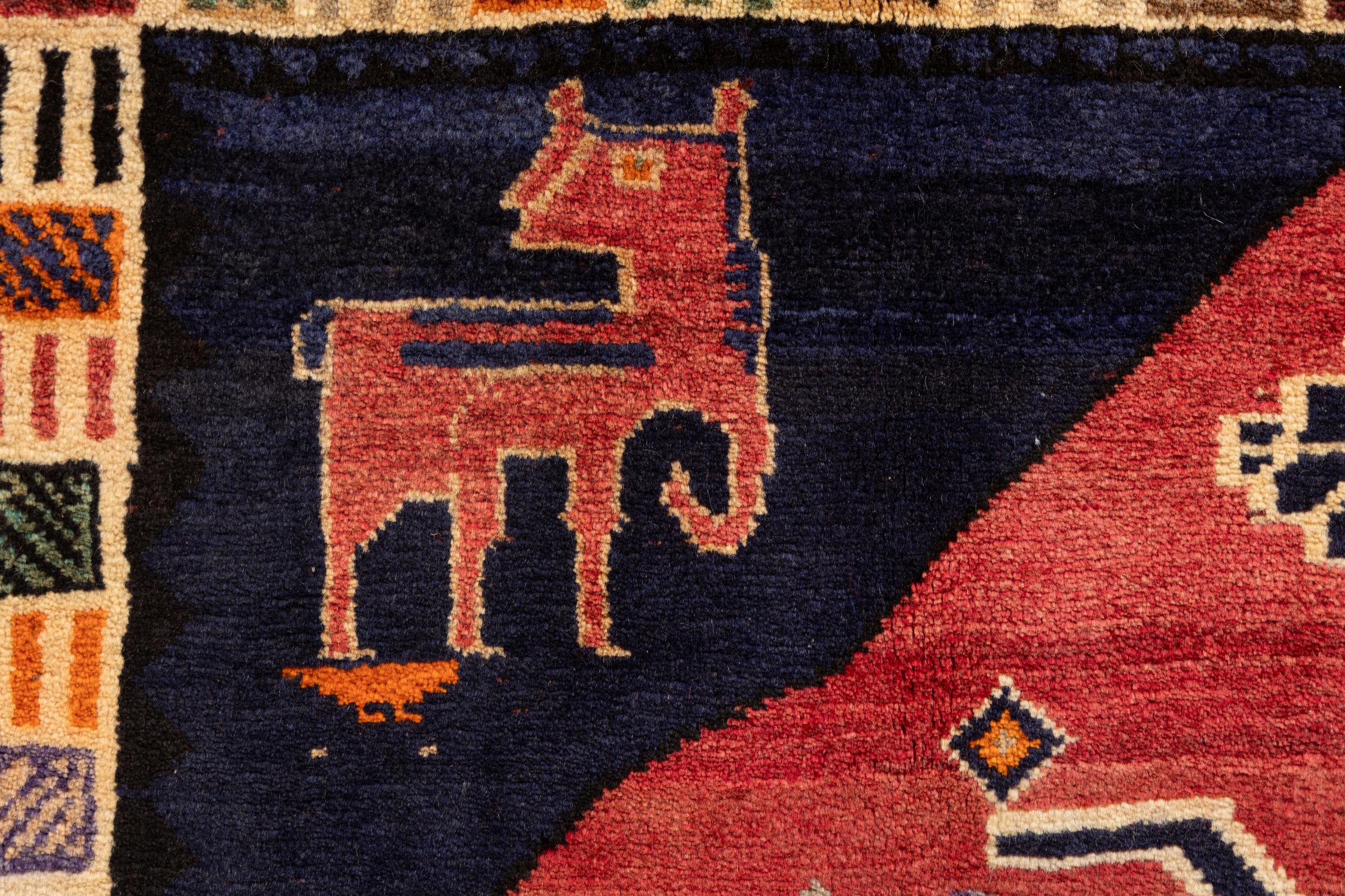 Den här vackra mattan är en persisk Gabbeh och är en av de högsta kvaliteten på Gabbeh-mattor. Mattorna är knutna av nomader eller semi-nomader i Iran med traditionellt hantverk. De enkla motiven och mönstren är mestadels inspirerade av nomaderna. Till exempel kan kameler, träd eller buskar hittas på traditionella mattor. Persiska Gabbeh-mattor är tillverkade av ull från lokala fårbesättningar. Ullen spinns därför mest för hand. Var och en av dessa orientaliska mattor förkroppsligar en unik karaktär av hundraårig kultur.