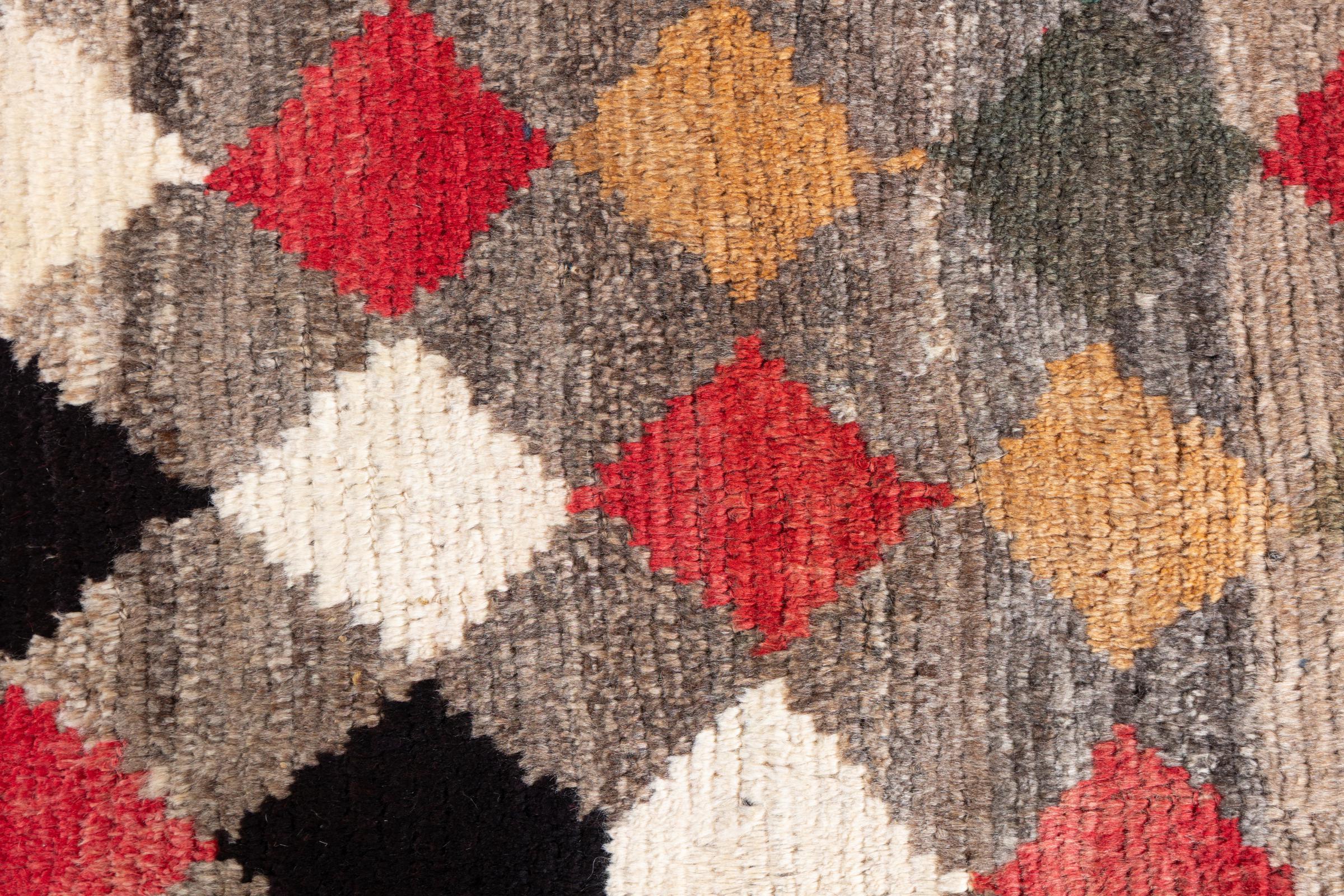 Den här vackra mattan är en persisk Gabbeh och är en av de högsta kvaliteten på Gabbeh-mattor. Mattorna är knutna av nomader eller semi-nomader i Iran med traditionellt hantverk. De enkla motiven och mönstren är mestadels inspirerade av nomaderna. Till exempel kan kameler, träd eller buskar hittas på traditionella mattor. Persiska Gabbeh-mattor är tillverkade av ull från lokala fårbesättningar. Ullen spinns därför mest för hand. Var och en av dessa orientaliska mattor förkroppsligar en unik karaktär av hundraårig kultur.