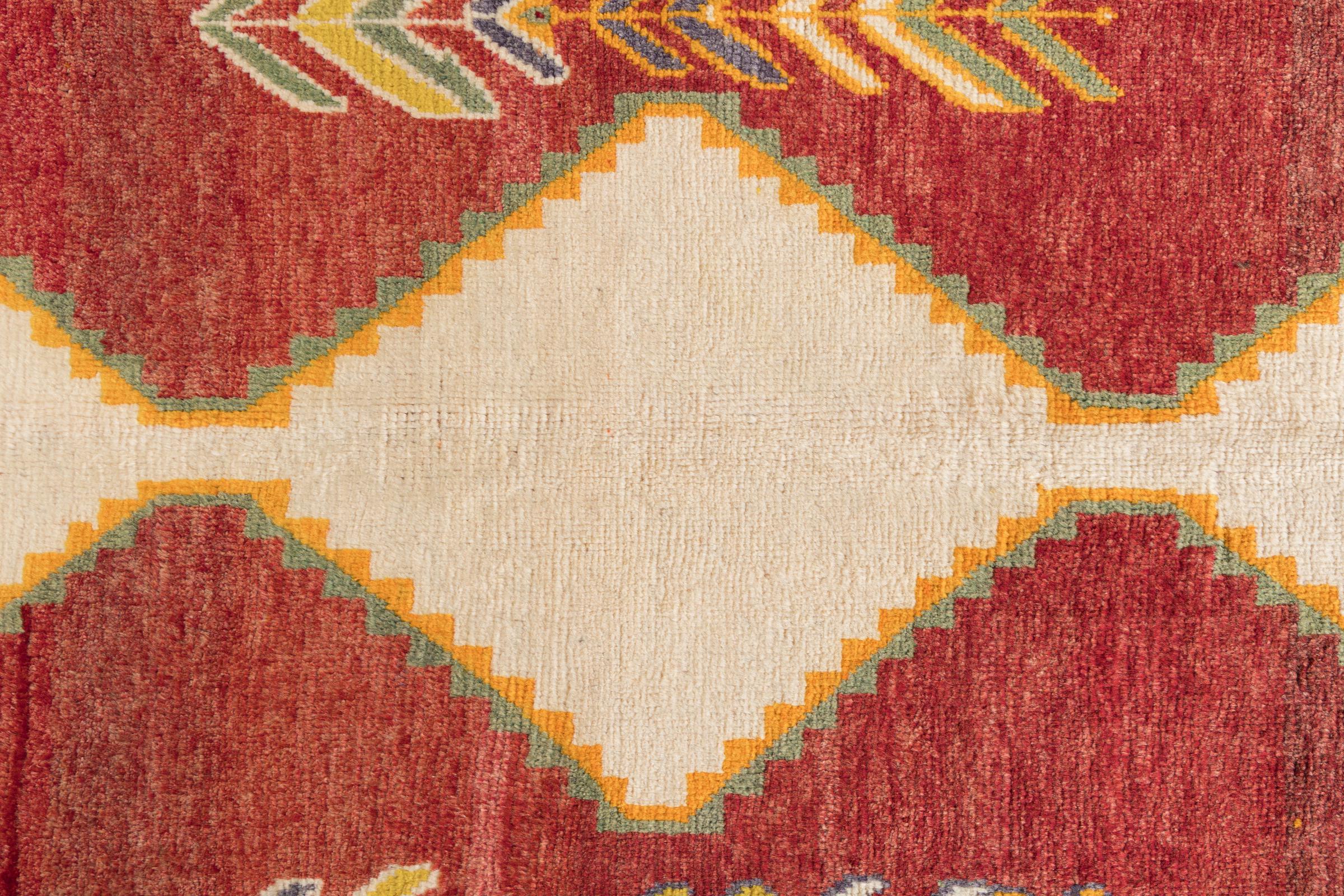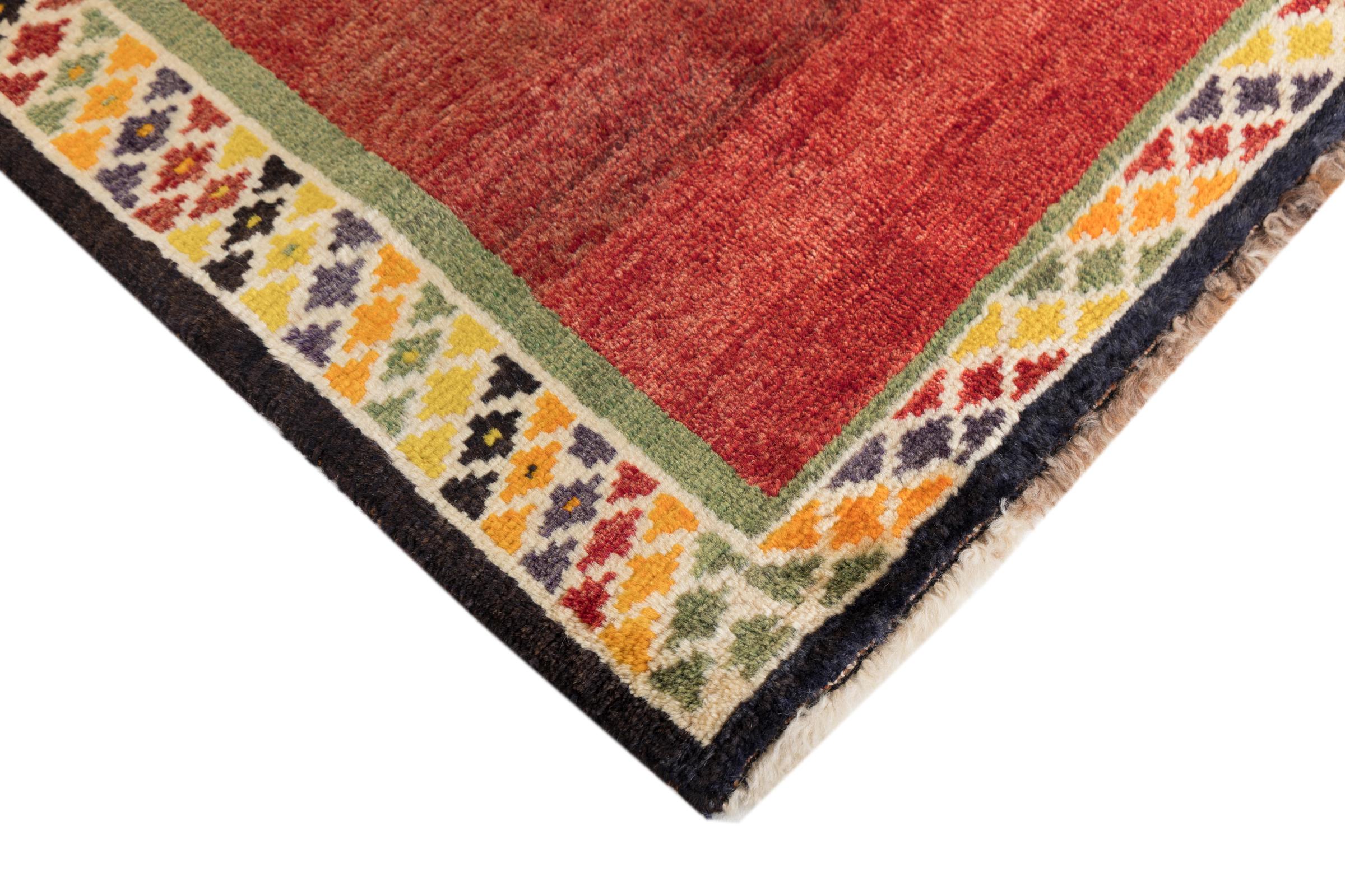 Den här vackra mattan är en persisk Gabbeh och är en av de högsta kvaliteten på Gabbeh-mattor. Mattorna är knutna av nomader eller semi-nomader i Iran med traditionellt hantverk. De enkla motiven och mönstren är mestadels inspirerade av nomaderna. Till exempel kan kameler, träd eller buskar hittas på traditionella mattor. Persiska Gabbeh-mattor är tillverkade av ull från lokala fårbesättningar. Ullen spinns därför mest för hand. Var och en av dessa orientaliska mattor förkroppsligar en unik karaktär av hundraårig kultur.
