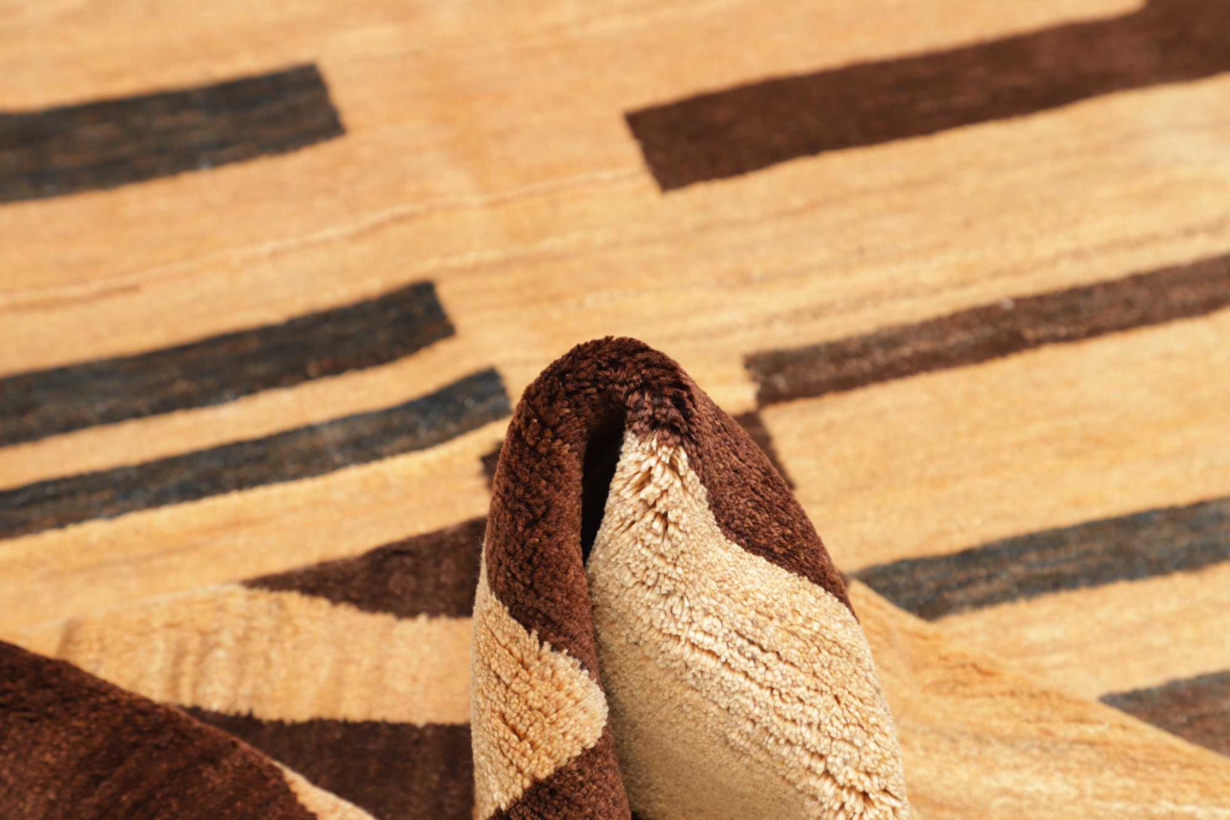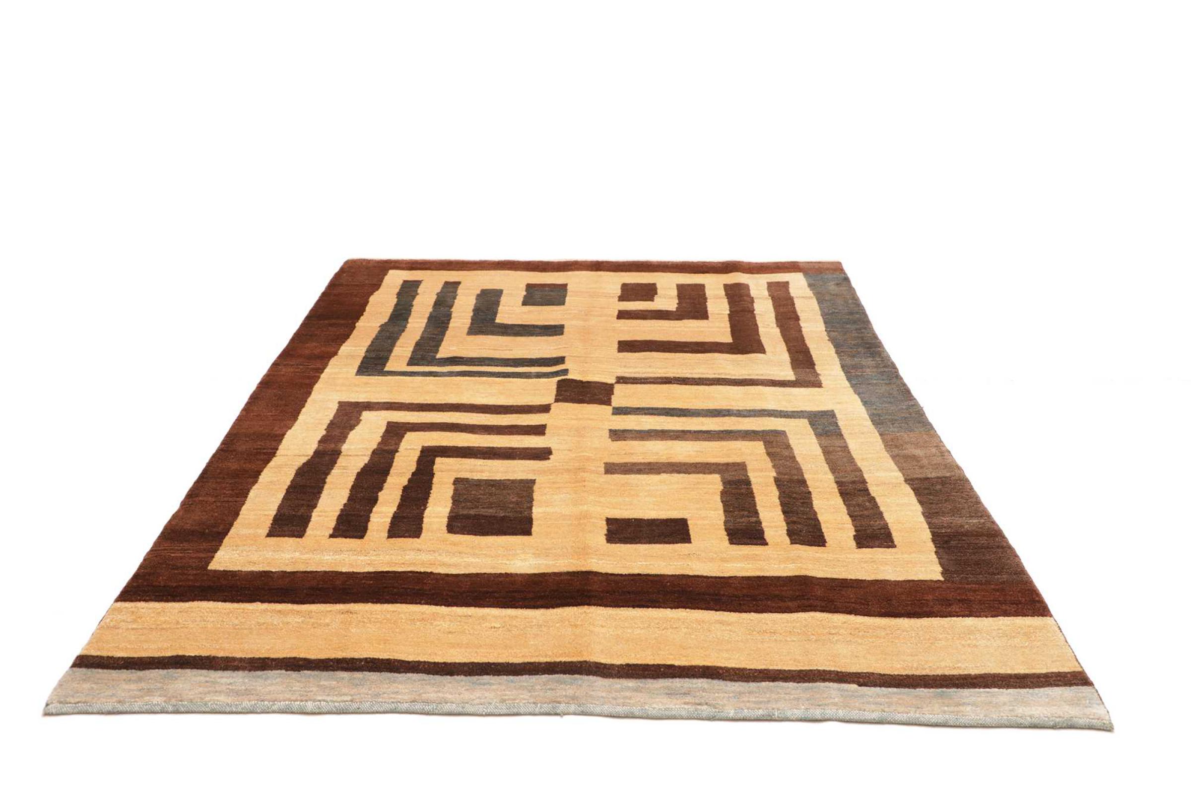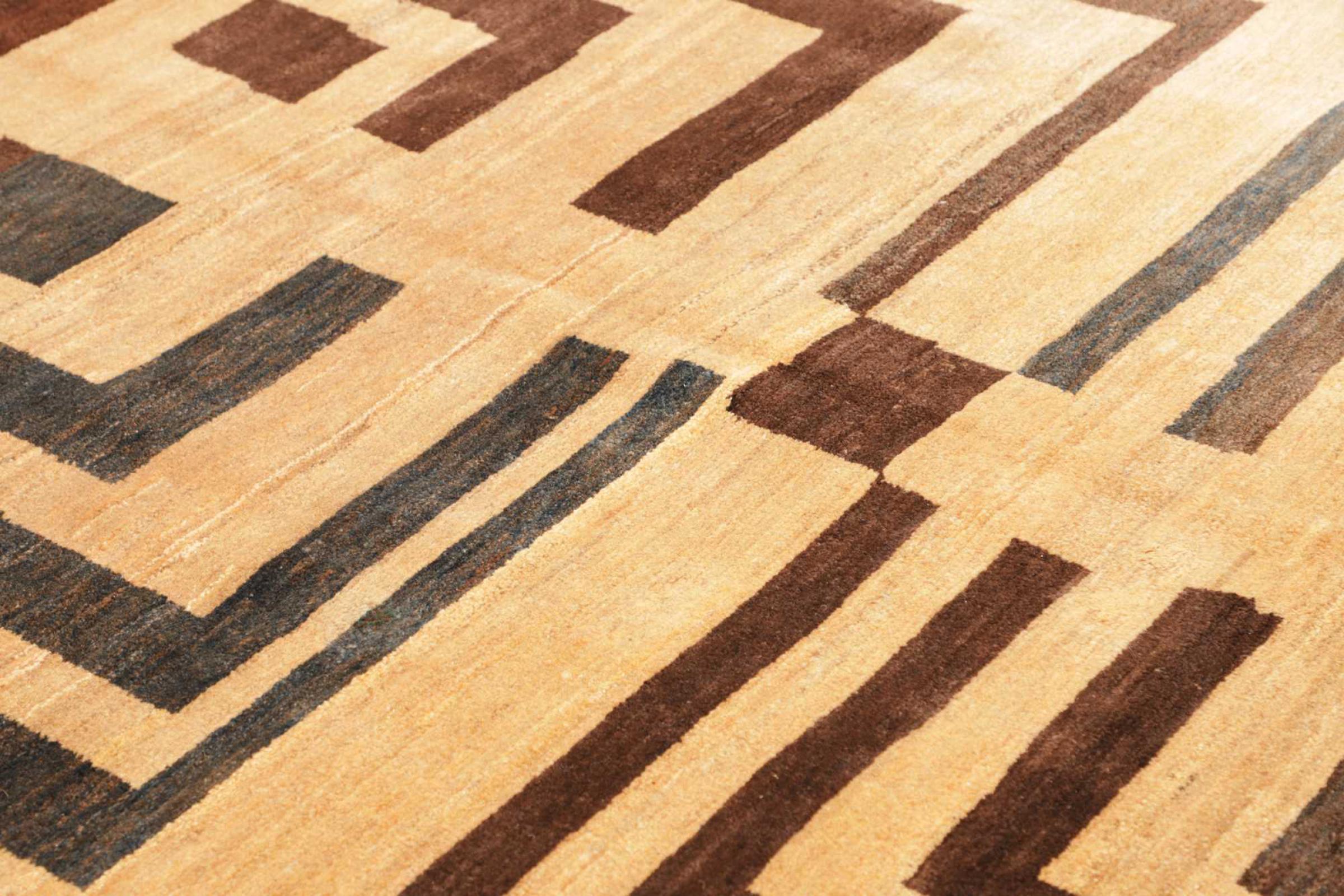 Den här vackra mattan är en persisk Gabbeh och är en av de högsta kvaliteten på Gabbeh-mattor. Mattorna är knutna av nomader eller semi-nomader i Iran med traditionellt hantverk. De enkla motiven och mönstren är mestadels inspirerade av nomaderna. Till exempel kan kameler, träd eller buskar hittas på traditionella mattor. Persiska Gabbeh-mattor är tillverkade av ull från lokala fårbesättningar. Ullen spinns därför mest för hand. Var och en av dessa orientaliska mattor förkroppsligar en unik karaktär av hundraårig kultur.