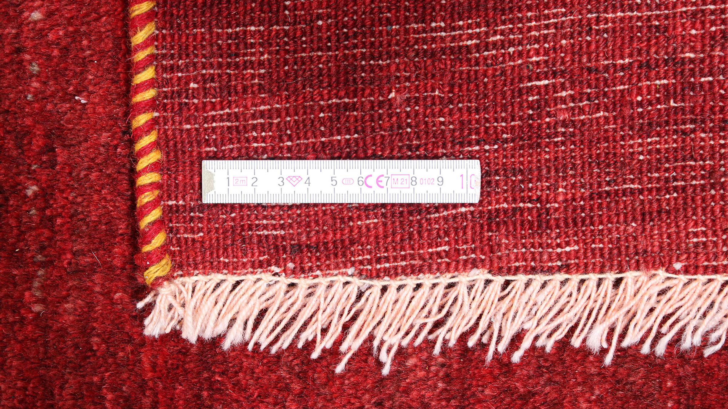 Den här vackra mattan är en persisk Gabbeh och är en av de högsta kvaliteten på Gabbeh-mattor. Mattorna är knutna av nomader eller semi-nomader i Iran med traditionellt hantverk. De enkla motiven och mönstren är mestadels inspirerade av nomaderna. Till exempel kan kameler, träd eller buskar hittas på traditionella mattor. Persiska Gabbeh-mattor är tillverkade av ull från lokala fårbesättningar. Ullen spinns därför mest för hand. Var och en av dessa orientaliska mattor förkroppsligar en unik karaktär av hundraårig kultur.