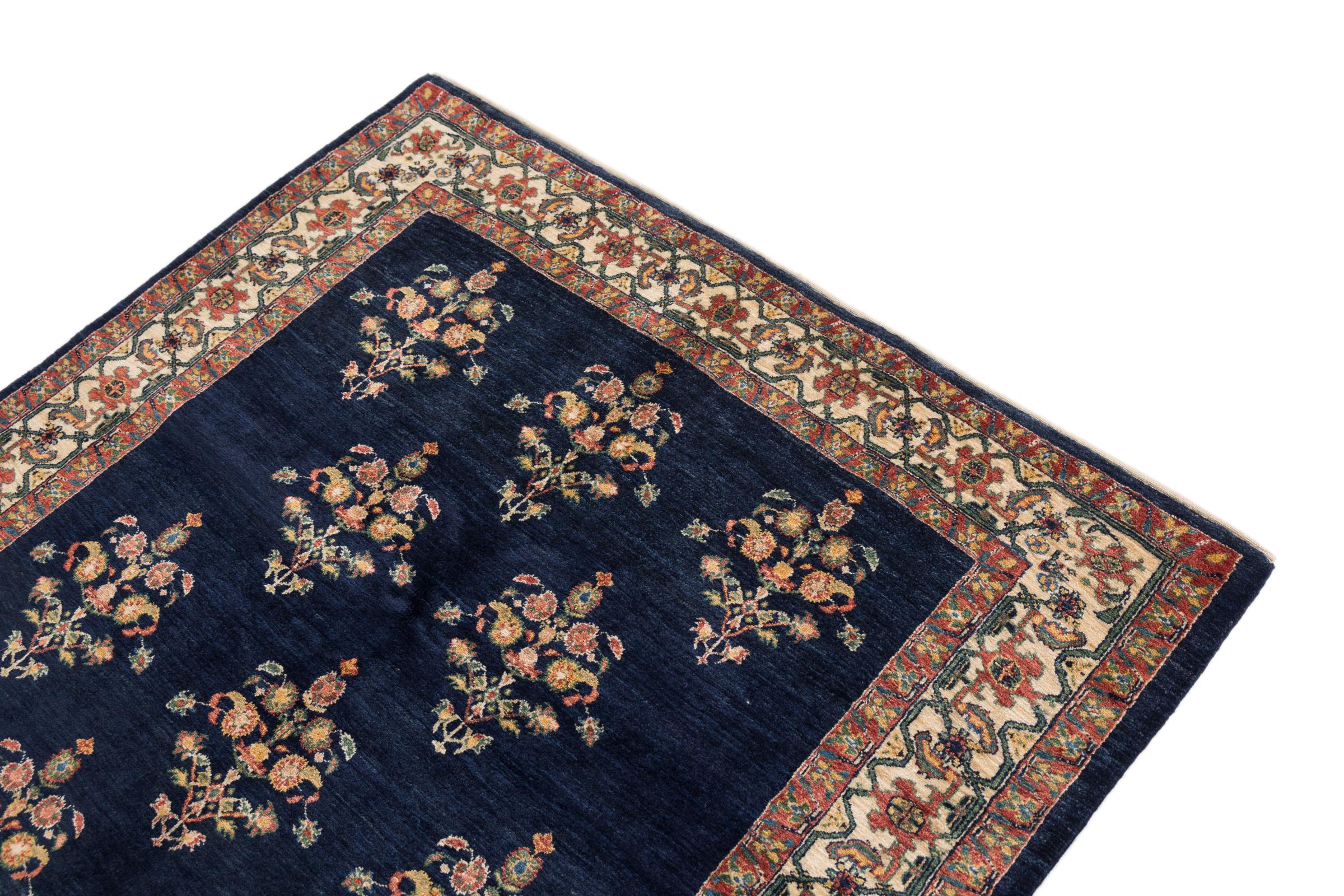 Den här vackra mattan är en persisk Gabbeh och är en av de högsta kvaliteten på Gabbeh-mattor. Mattorna är knutna av nomader eller semi-nomader i Iran med traditionellt hantverk. De enkla motiven och mönstren är mestadels inspirerade av nomaderna. Till exempel kan kameler, träd eller buskar hittas på traditionella mattor. Persiska Gabbeh-mattor är tillverkade av ull från lokala fårbesättningar. Ullen spinns därför mest för hand. Var och en av dessa orientaliska mattor förkroppsligar en unik karaktär av hundraårig kultur.
