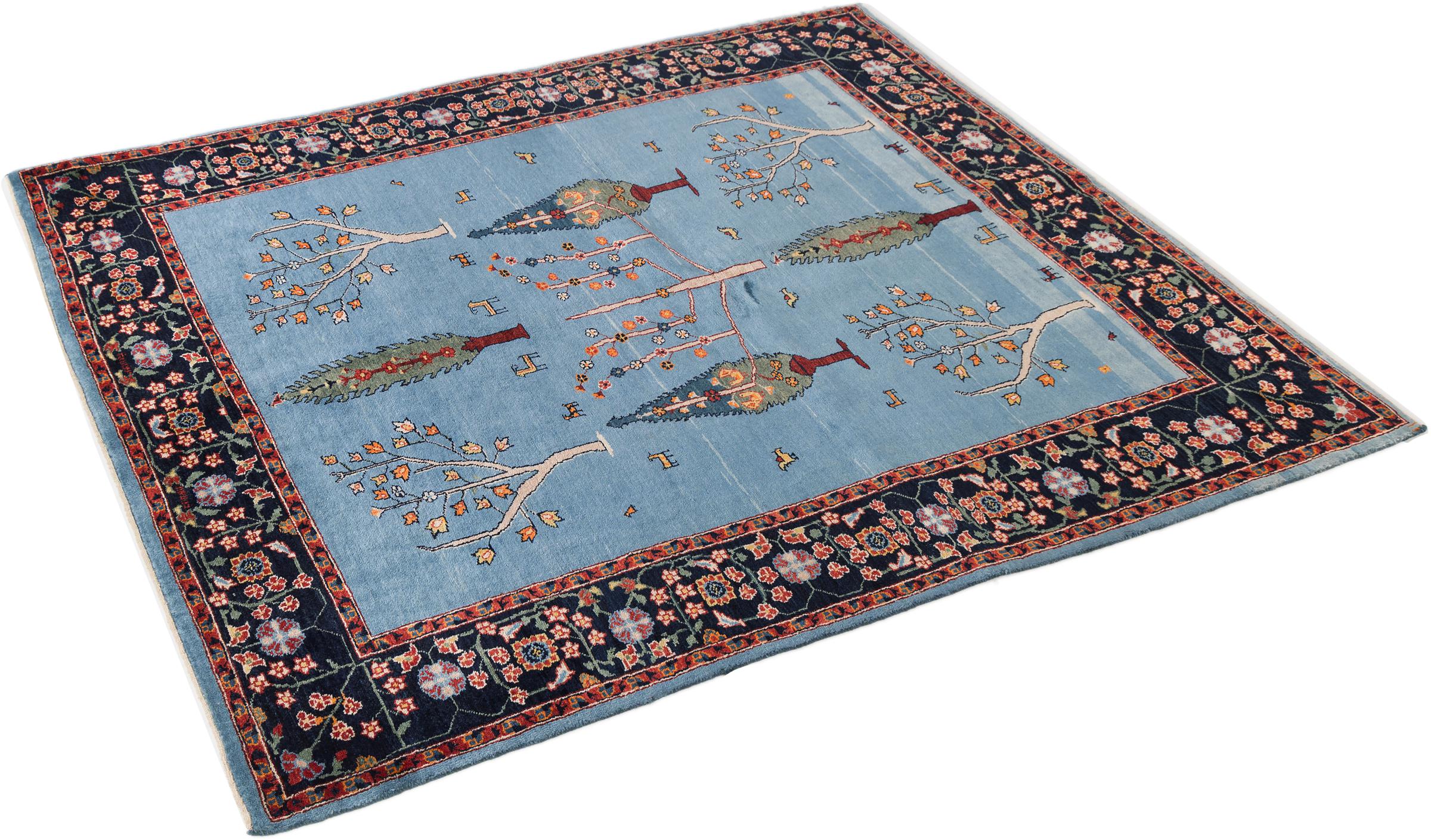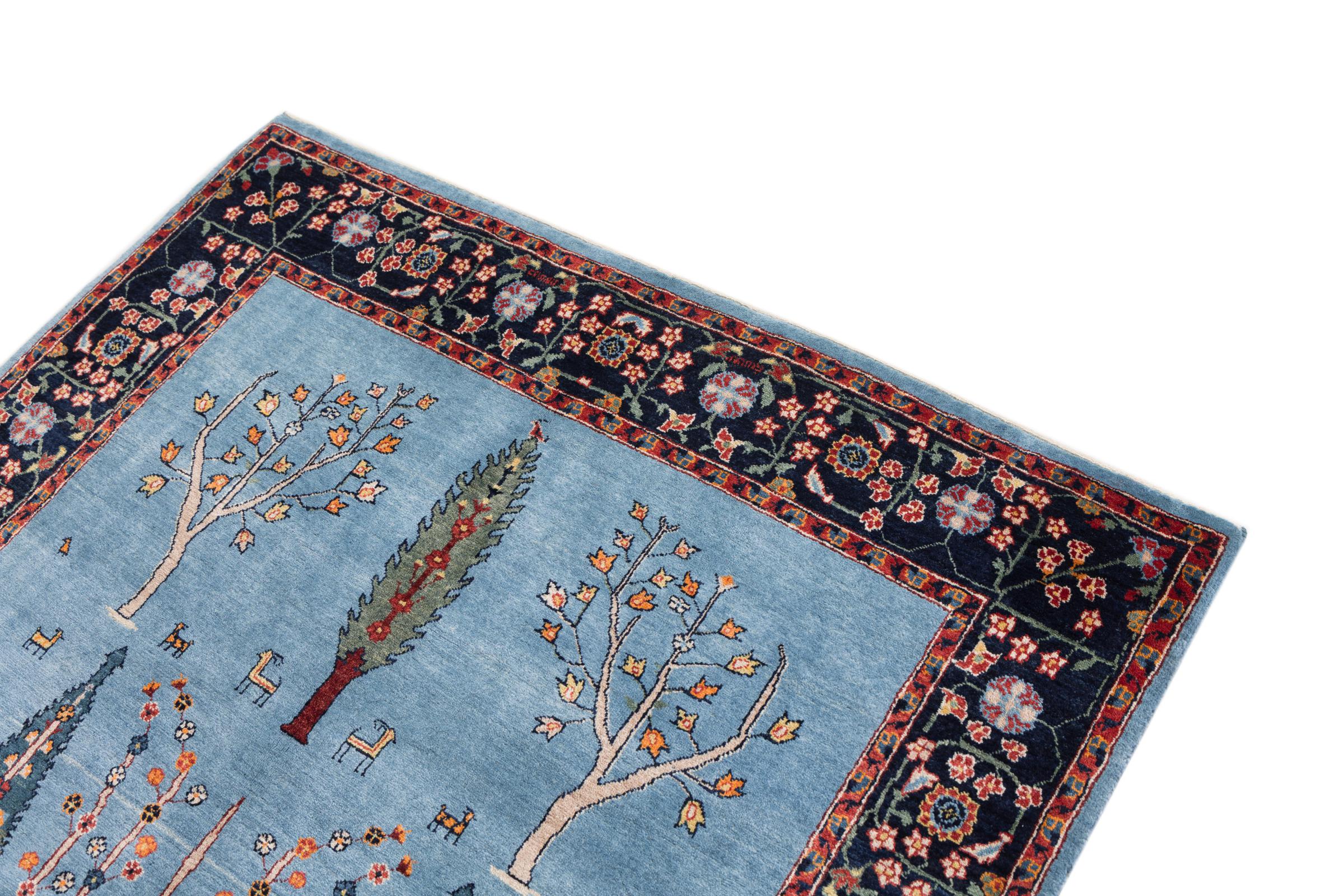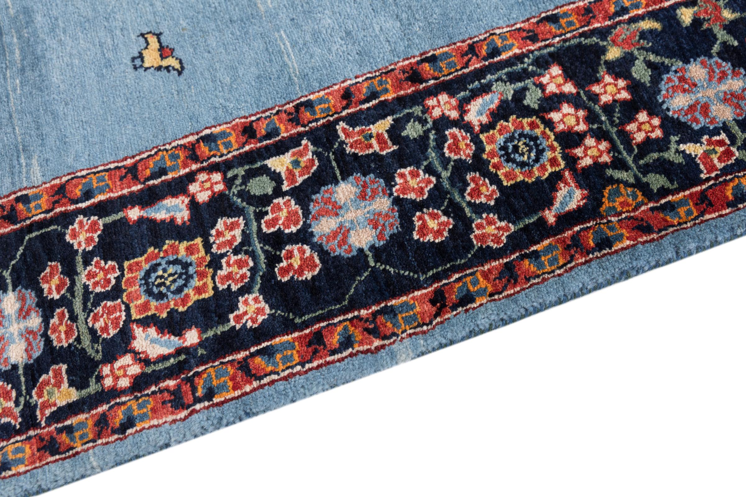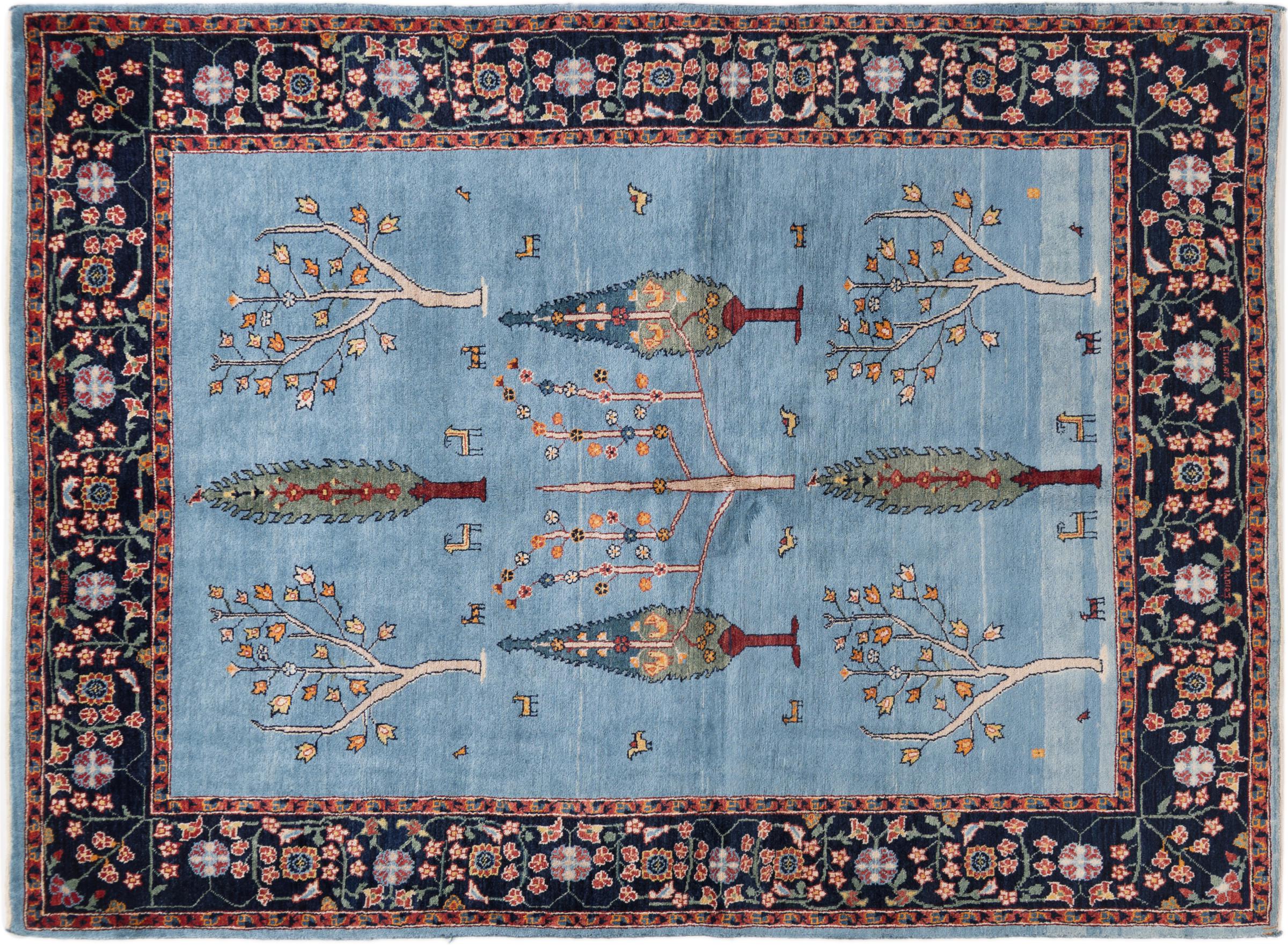 Den här vackra mattan är en persisk Gabbeh och är en av de högsta kvaliteten på Gabbeh-mattor. Mattorna är knutna av nomader eller semi-nomader i Iran med traditionellt hantverk. De enkla motiven och mönstren är mestadels inspirerade av nomaderna. Till exempel kan kameler, träd eller buskar hittas på traditionella mattor. Persiska Gabbeh-mattor är tillverkade av ull från lokala fårbesättningar. Ullen spinns därför mest för hand. Var och en av dessa orientaliska mattor förkroppsligar en unik karaktär av hundraårig kultur.