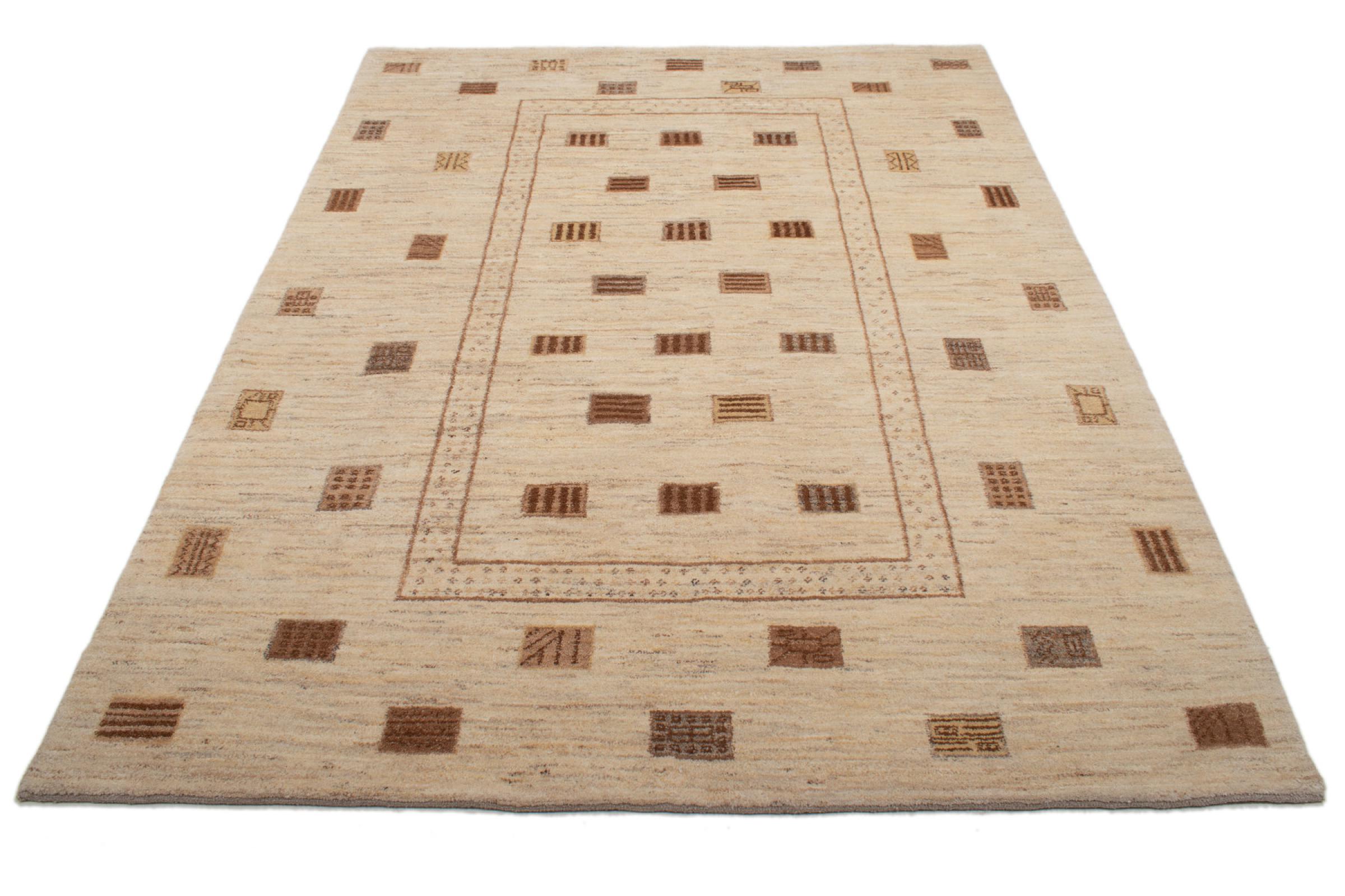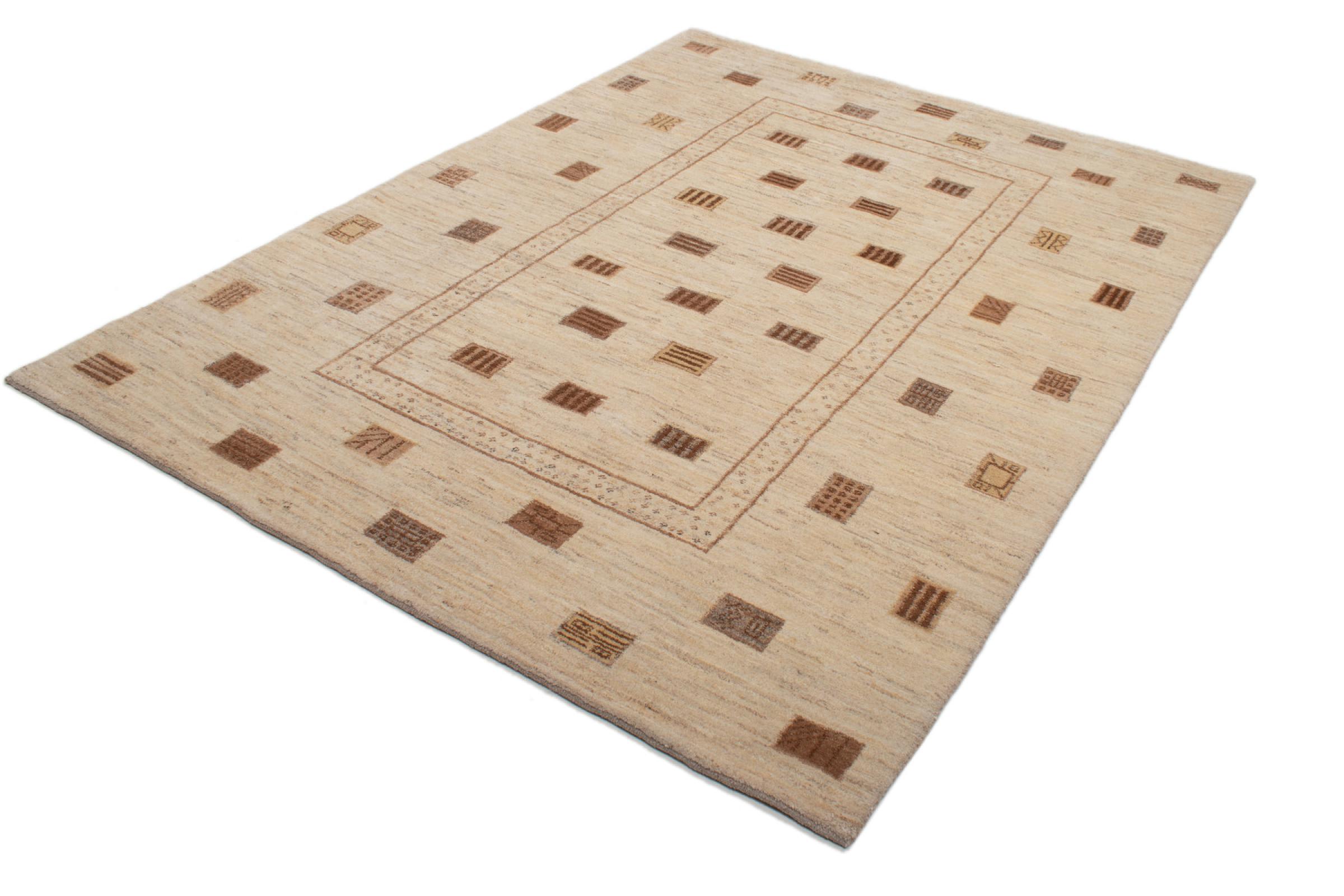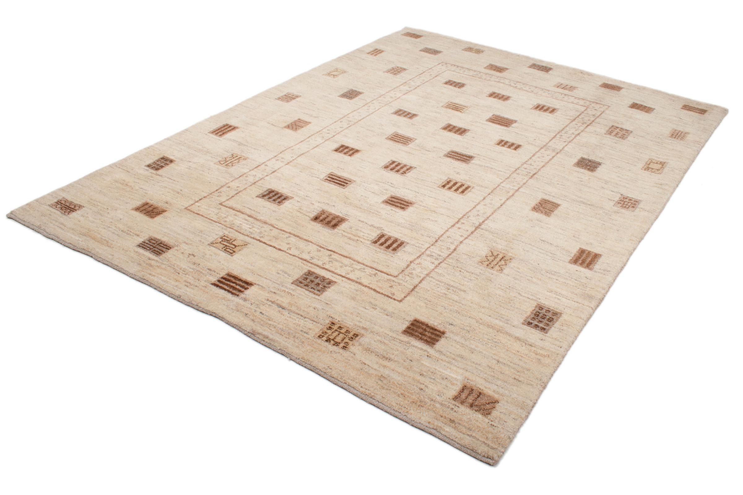 Den här vackra mattan är en persisk Gabbeh och är en av de högsta kvaliteten på Gabbeh-mattor. Mattorna är knutna av nomader eller semi-nomader i Iran med traditionellt hantverk. De enkla motiven och mönstren är mestadels inspirerade av nomaderna. Till exempel kan kameler, träd eller buskar hittas på traditionella mattor. Persiska Gabbeh-mattor är tillverkade av ull från lokala fårbesättningar. Ullen spinns därför mest för hand. Var och en av dessa orientaliska mattor förkroppsligar en unik karaktär av hundraårig kultur.