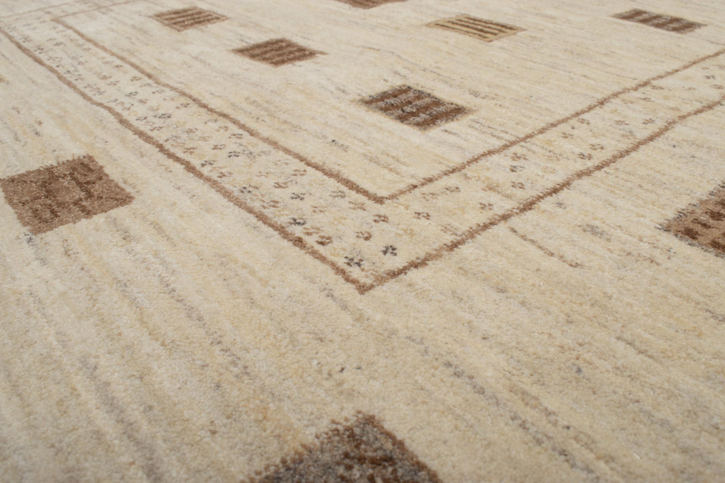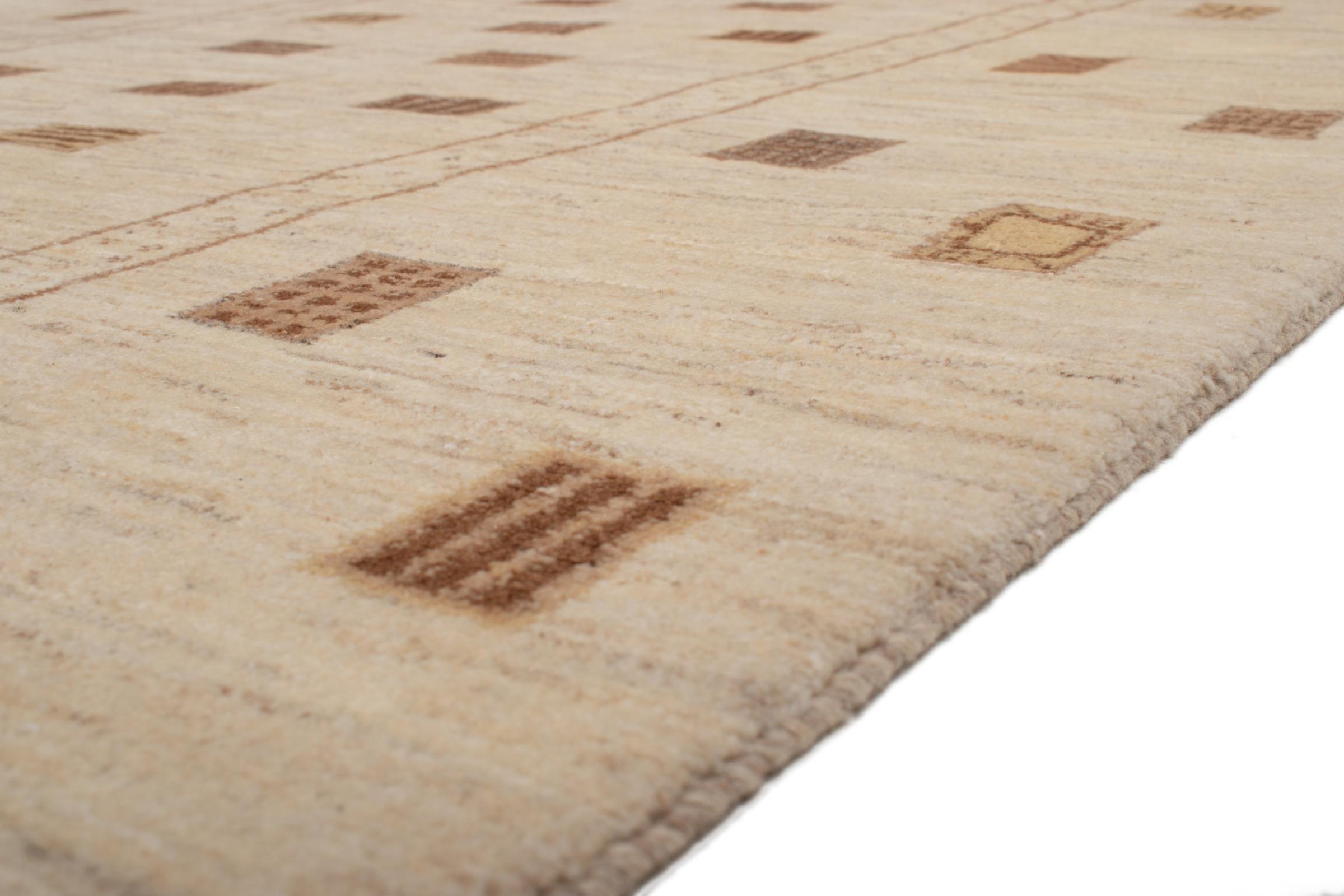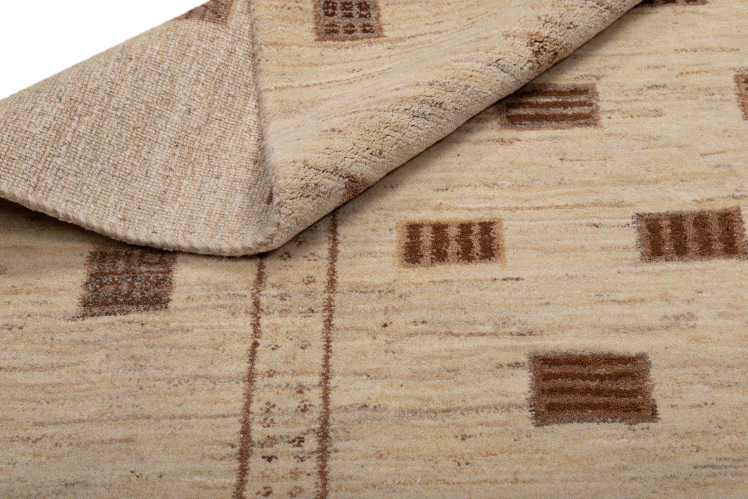 Den här vackra mattan är en persisk Gabbeh och är en av de högsta kvaliteten på Gabbeh-mattor. Mattorna är knutna av nomader eller semi-nomader i Iran med traditionellt hantverk. De enkla motiven och mönstren är mestadels inspirerade av nomaderna. Till exempel kan kameler, träd eller buskar hittas på traditionella mattor. Persiska Gabbeh-mattor är tillverkade av ull från lokala fårbesättningar. Ullen spinns därför mest för hand. Var och en av dessa orientaliska mattor förkroppsligar en unik karaktär av hundraårig kultur.