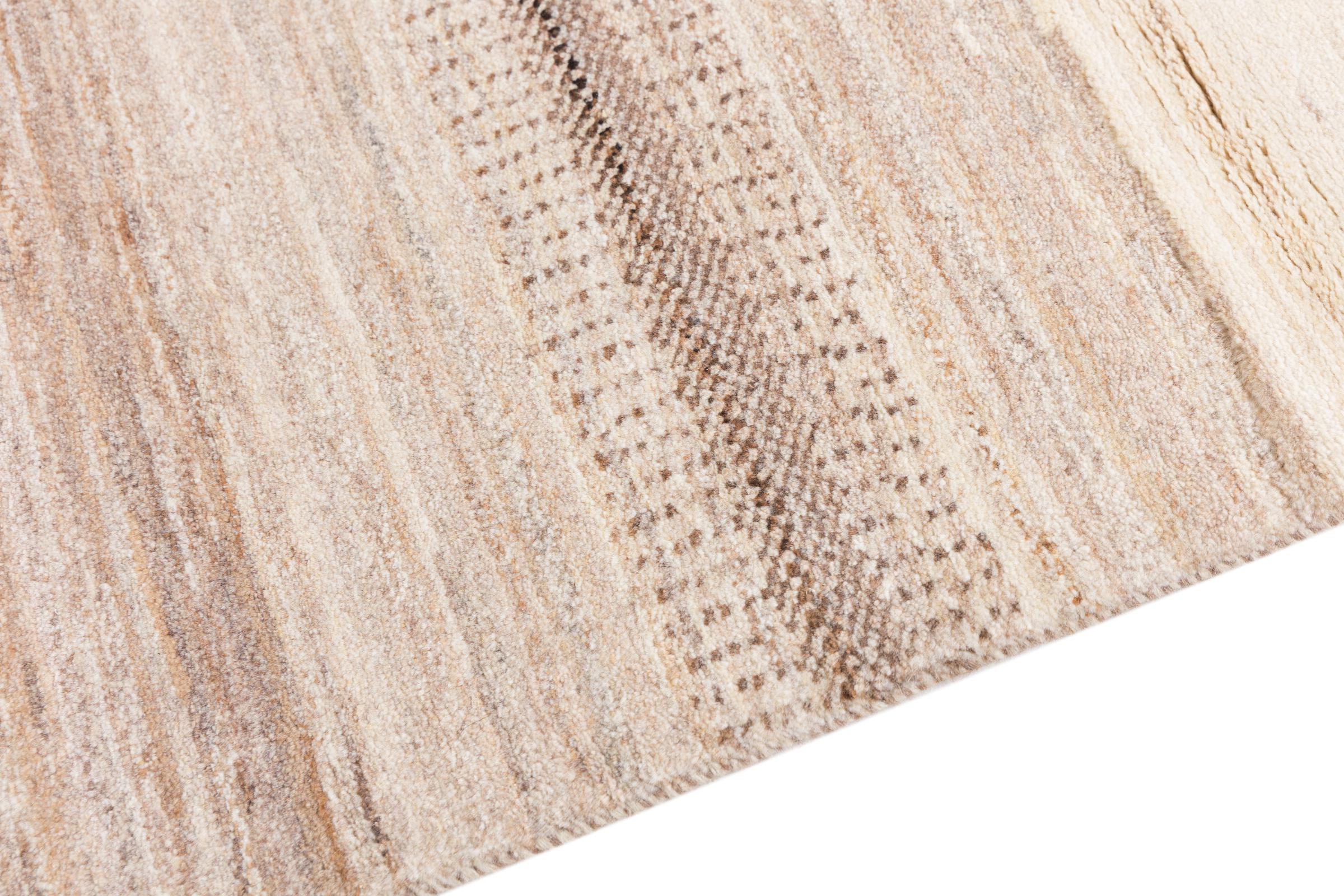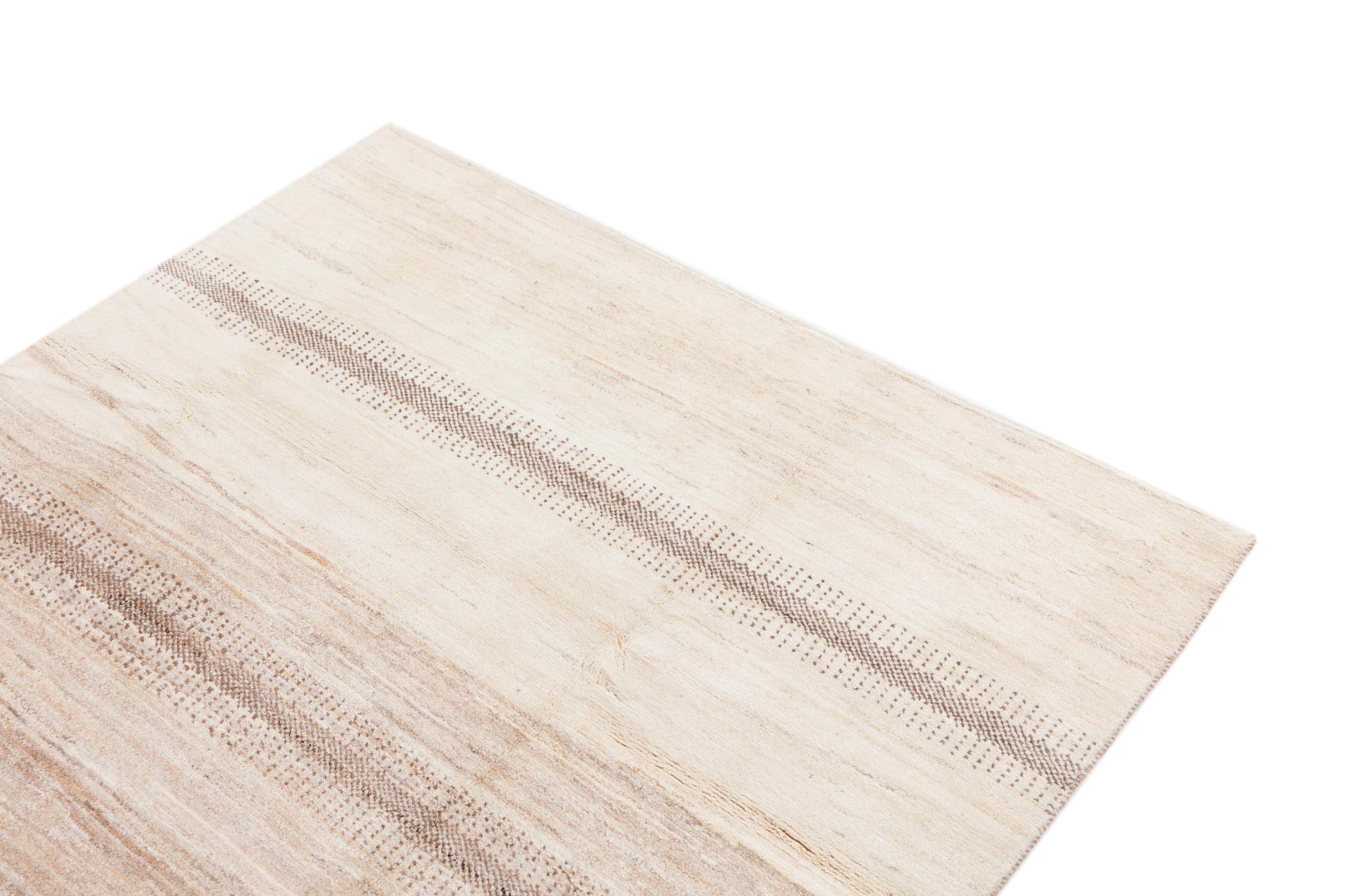 Den här vackra mattan är en persisk Gabbeh och är en av de högsta kvaliteten på Gabbeh-mattor. Mattorna är knutna av nomader eller semi-nomader i Iran med traditionellt hantverk. De enkla motiven och mönstren är mestadels inspirerade av nomaderna. Till exempel kan kameler, träd eller buskar hittas på traditionella mattor. Persiska Gabbeh-mattor är tillverkade av ull från lokala fårbesättningar. Ullen spinns därför mest för hand. Var och en av dessa orientaliska mattor förkroppsligar en unik karaktär av hundraårig kultur.