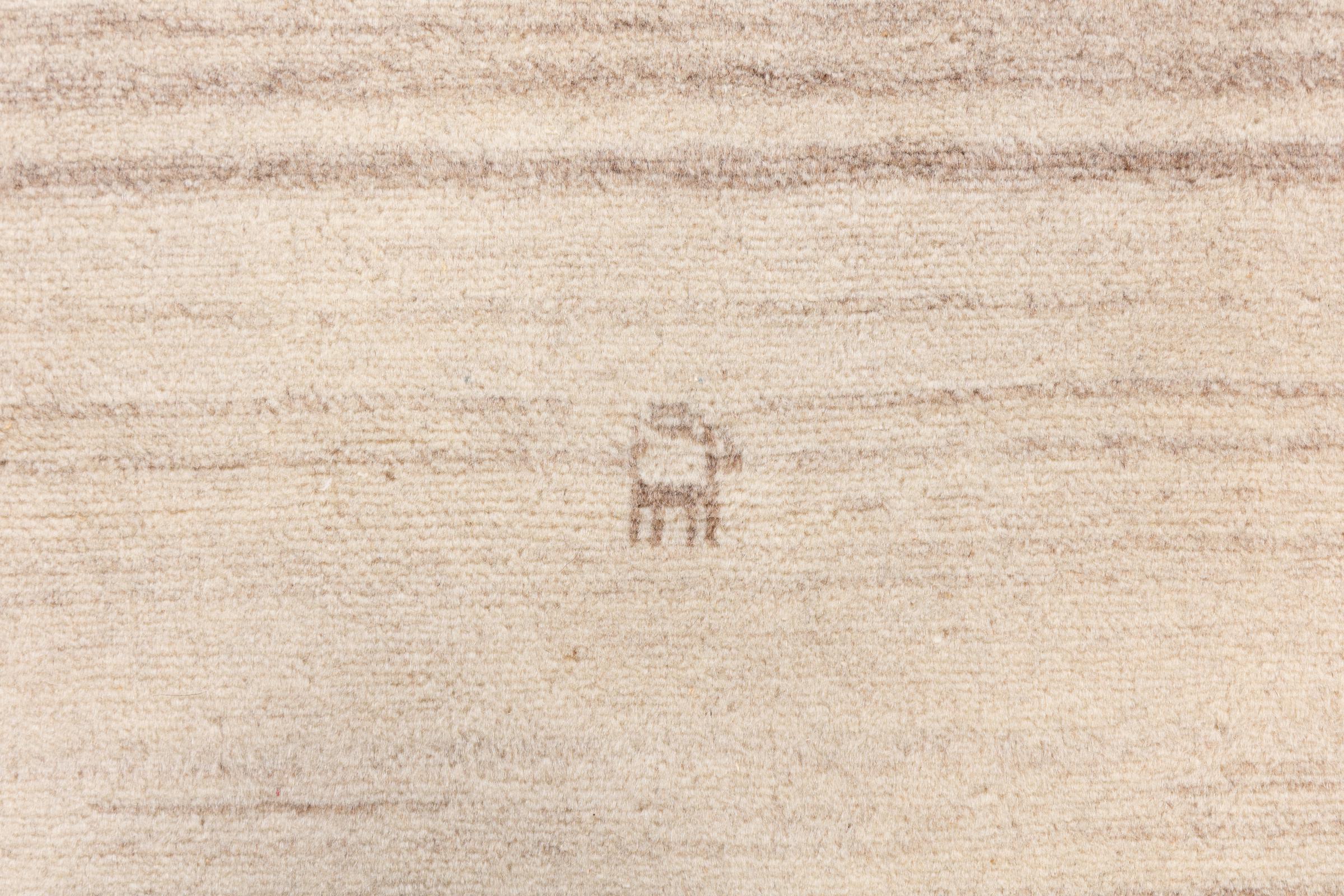 Den här vackra mattan är en persisk Gabbeh och är en av de högsta kvaliteten på Gabbeh-mattor. Mattorna är knutna av nomader eller semi-nomader i Iran med traditionellt hantverk. De enkla motiven och mönstren är mestadels inspirerade av nomaderna. Till exempel kan kameler, träd eller buskar hittas på traditionella mattor. Persiska Gabbeh-mattor är tillverkade av ull från lokala fårbesättningar. Ullen spinns därför mest för hand. Var och en av dessa orientaliska mattor förkroppsligar en unik karaktär av hundraårig kultur.