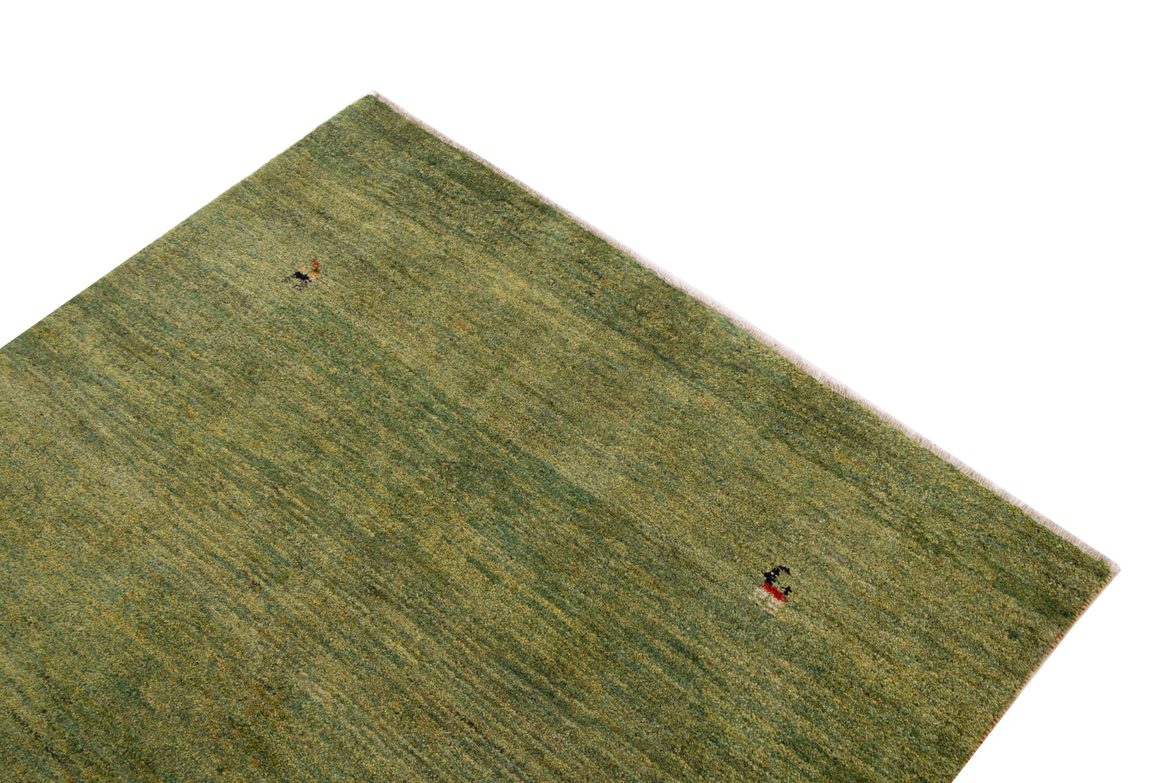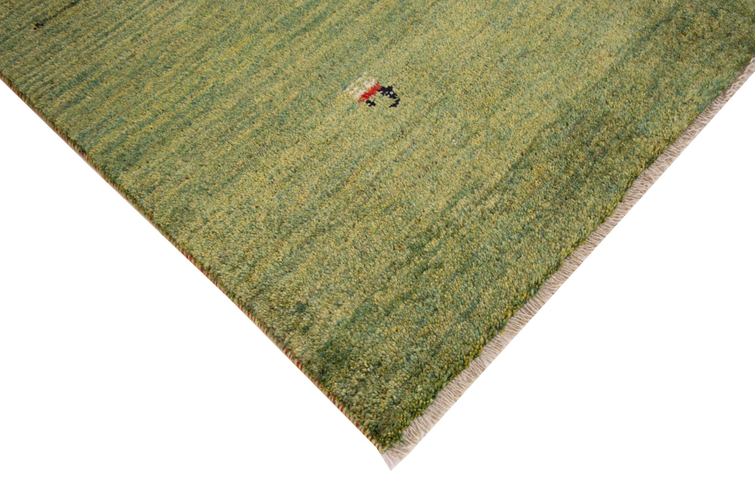 Denna persiska Gabbeh nomadmatta har knutits för hand på traditionellt sätt och består av högkvalitativ nyfleece. De starka färgerna och de enkla mönstren gör varje stycke unikt. Robust, hållbar och särskilt mjuk – idealisk för mysiga bostadsutrymmen.