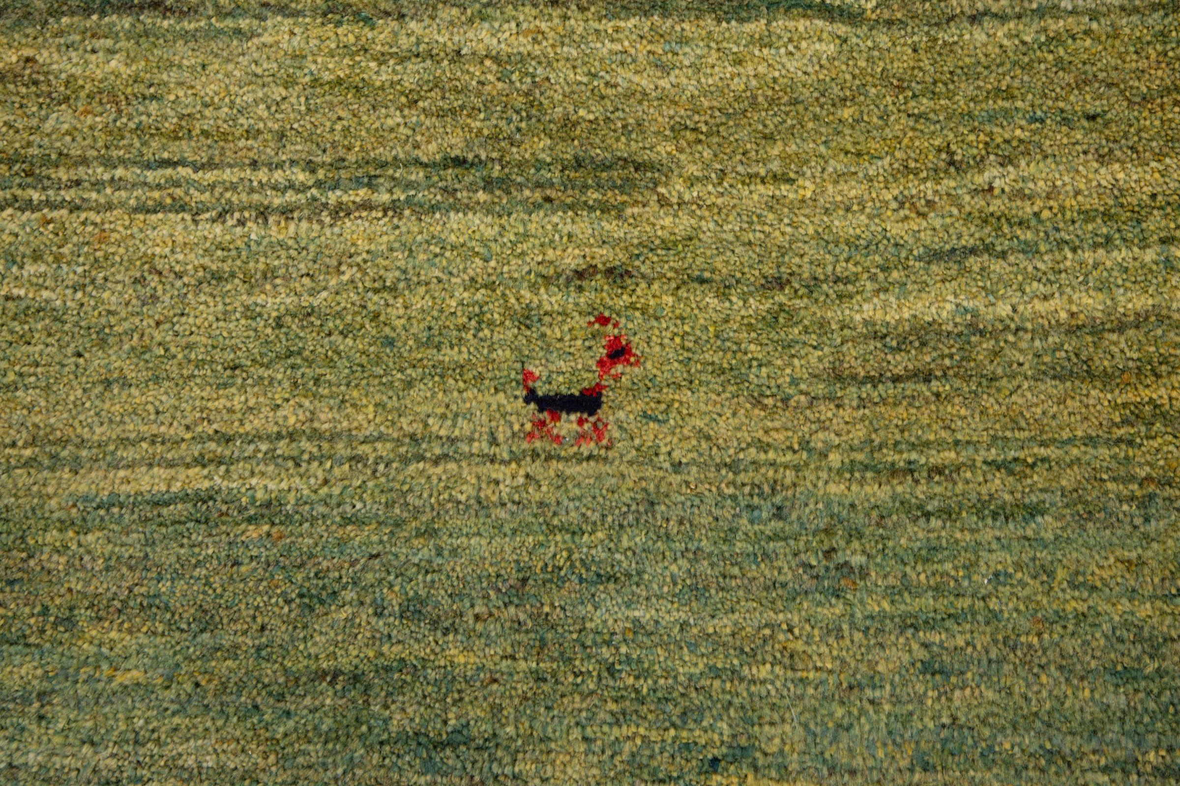 Den här vackra mattan är en persisk Gabbeh och är en av de högsta kvaliteten på Gabbeh-mattor. Mattorna är knutna av nomader eller semi-nomader i Iran med traditionellt hantverk. De enkla motiven och mönstren är mestadels inspirerade av nomaderna. Till exempel kan kameler, träd eller buskar hittas på traditionella mattor. Persiska Gabbeh-mattor är tillverkade av ull från lokala fårbesättningar. Ullen spinns därför mest för hand. Var och en av dessa orientaliska mattor förkroppsligar en unik karaktär av hundraårig kultur.