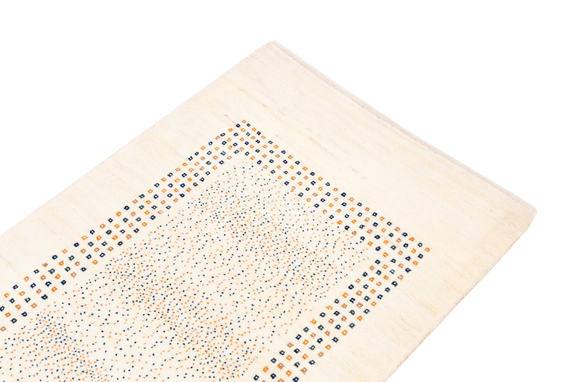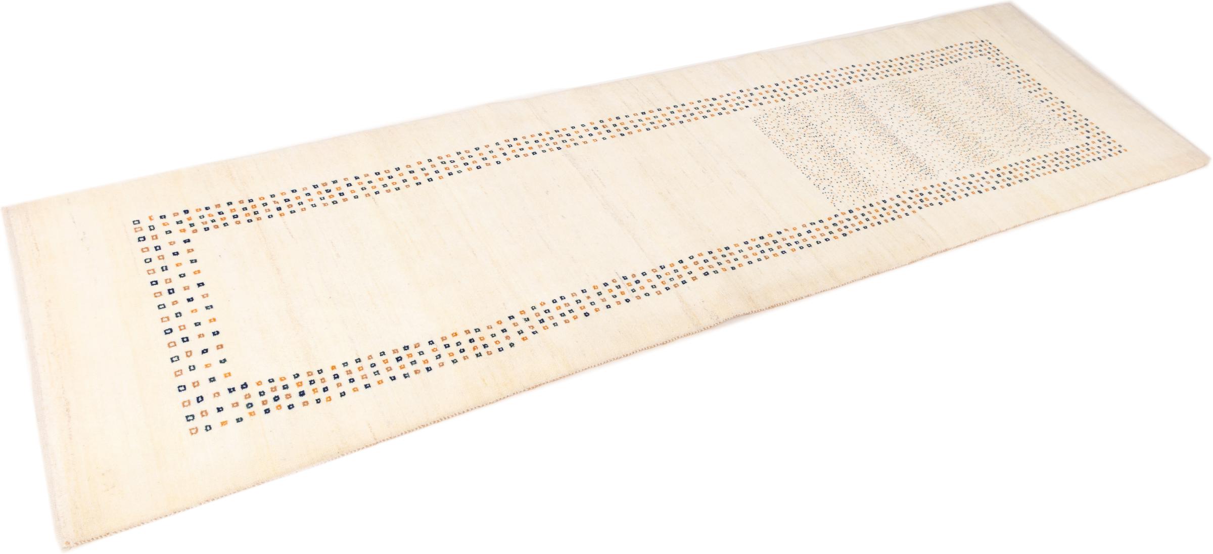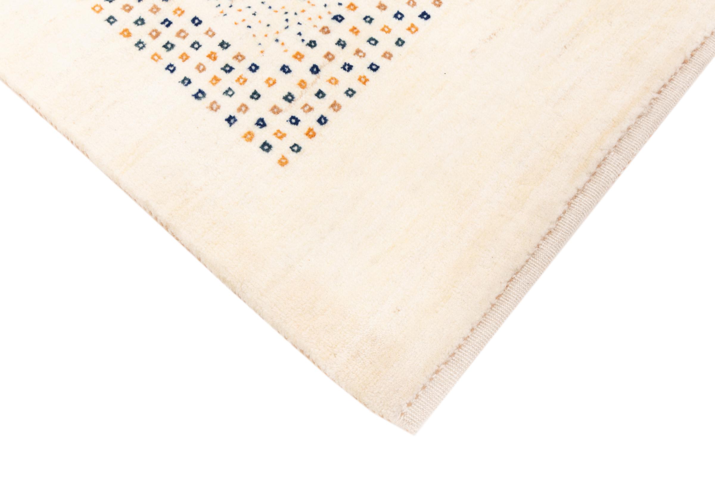 Denna persiska Gabbeh nomadmatta har knutits för hand på traditionellt sätt och består av högkvalitativ nyfleece. De starka färgerna och de enkla mönstren gör varje stycke unikt. Robust, hållbar och särskilt mjuk – idealisk för mysiga bostadsutrymmen.